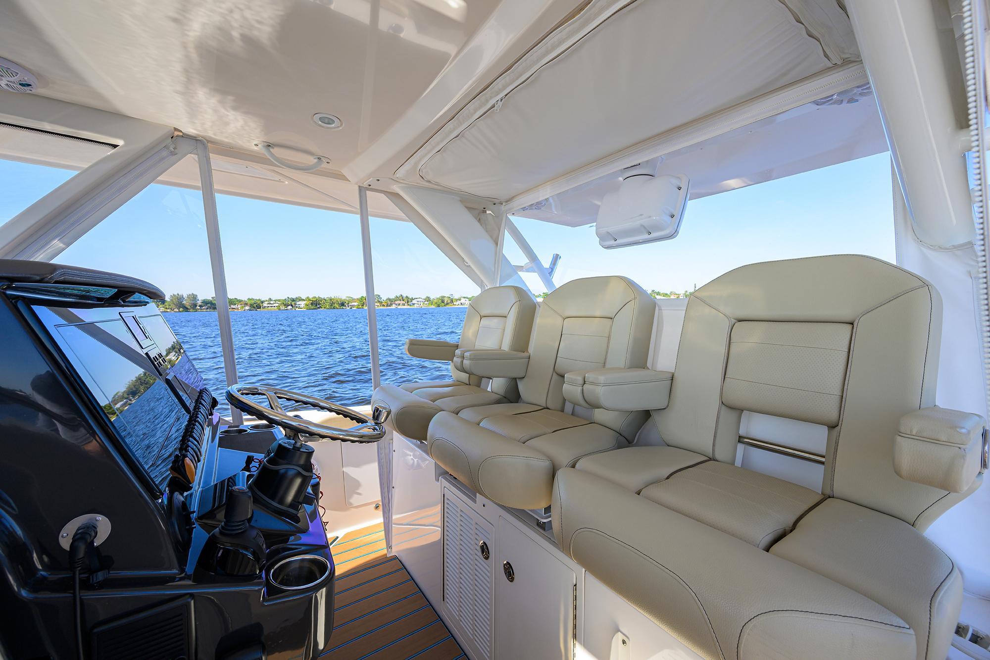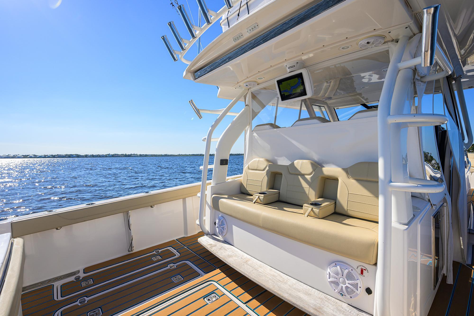This 2017 Pursuit S408 is loaded and ready to go! Custom faux teak transom and toe rail looks great on her white hull. Upgraded decking and electronics with Seakeeper, A/C helm. Lift kept and ready to make a deal.Highlights and optionsTriple Yamaha 350 HP motors with 730 hrs,Full tower with controls, electronics, seating for 3Yamaha Helm Master Joystick ControlPainted motorsPhasor 2021 8kw generator with 52 hoursLewmar bow thrusterHelm AC/HeatGarmin electronics with (2) 7616XSV screens, lower helm, GPS chart plotter, GSD 25 sonar, radar, GHC20 autopilotGarmin 315 VHFFusion/JL Audio Sound SystemFlir night visionAdditional Garmin 7612 screen in cockpitRetractable electric Sun ShadeMezzanine SeatingElectric grillSeakeeper 6Isotherm cockpit refrigeratorStarboard fishbox fridge/freezerTransom fridge/freezerUnderwater lightsTeak helm stepFull SeaDek flooringARC-100 LED spotlight(2) Razor light bars, forward8 Rodholders on aft hardtopTransom mounted rodholders - 5Mediterranean style forward shadeCustom faux teak transom and toe rail
