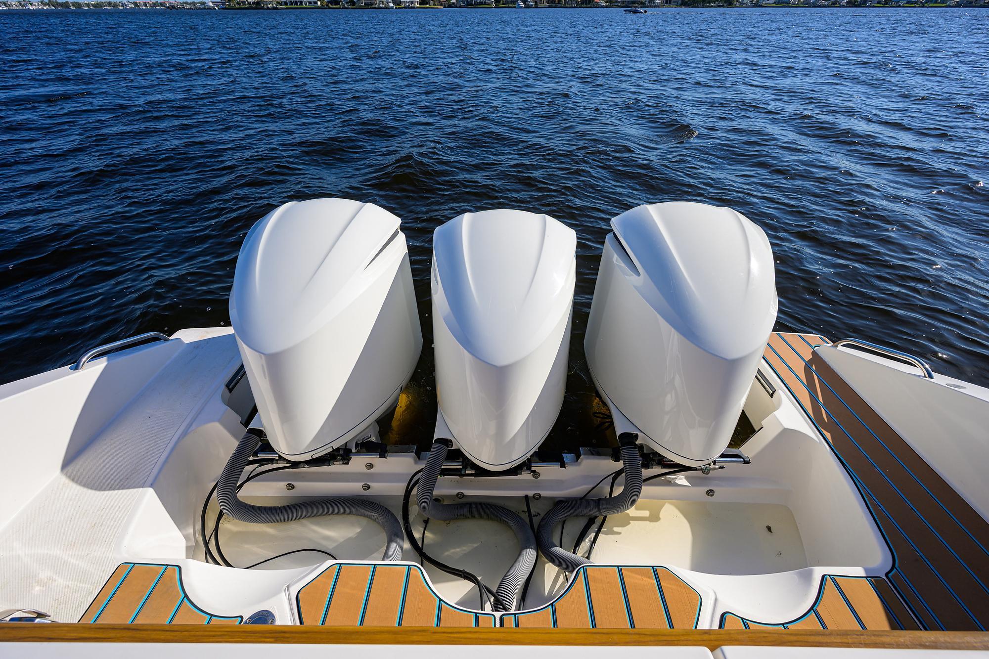 - Seven Battery System: Port Engine (1), Starboard Engine (1), Center Engine/Generator (1), House (2) (AGM), Electronics (1) (AGM) and Bow Thruster (1) (AGM)