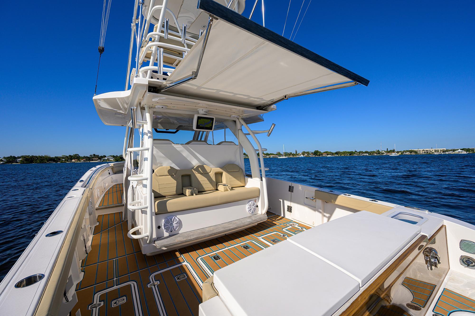 - Garmin Electronics Package: (2) 16” Multi-Touch Wide Screen Chartplotter Displays, Sonar, 48” Open Array Radar, Autopilot with SmartPump, Integrated VHF with Full-Function Handset and Remote Speaker, VHF Antenna