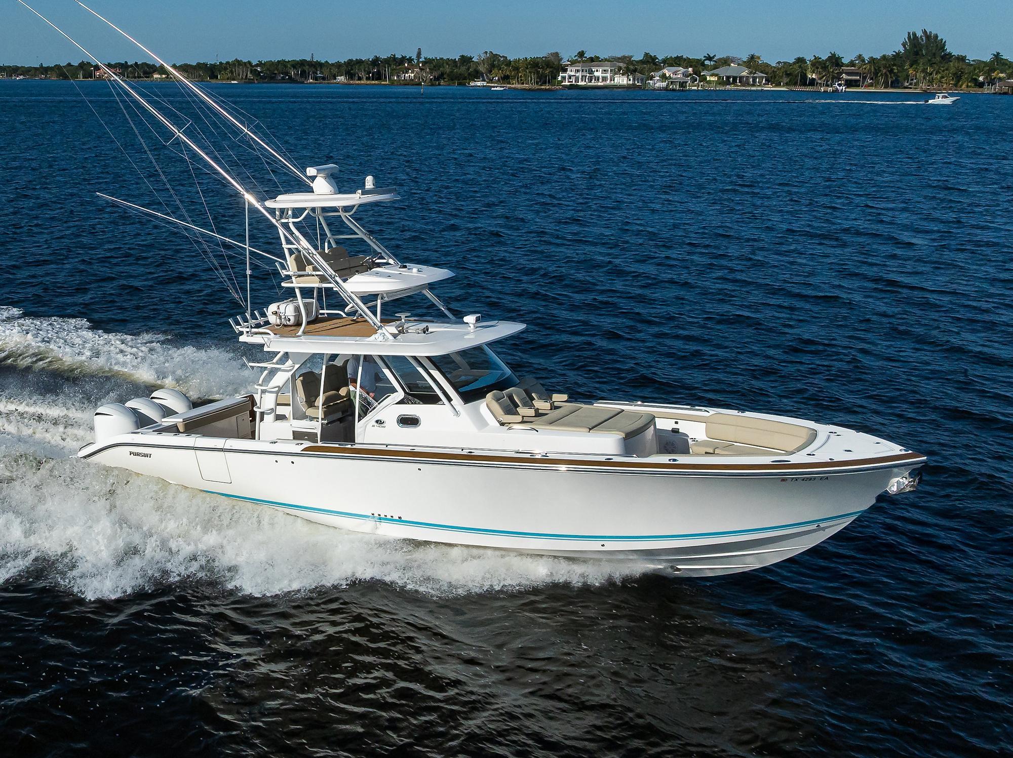 The S408 beckons big-game fishermen and families alike with a true center console footprint and the luxury amenities of Pursuit’s Sport Series. A stout helm, rugged hardtop, large cabin space and tremendous seating choices around the cockpit mark the S 408 a leader in her category.