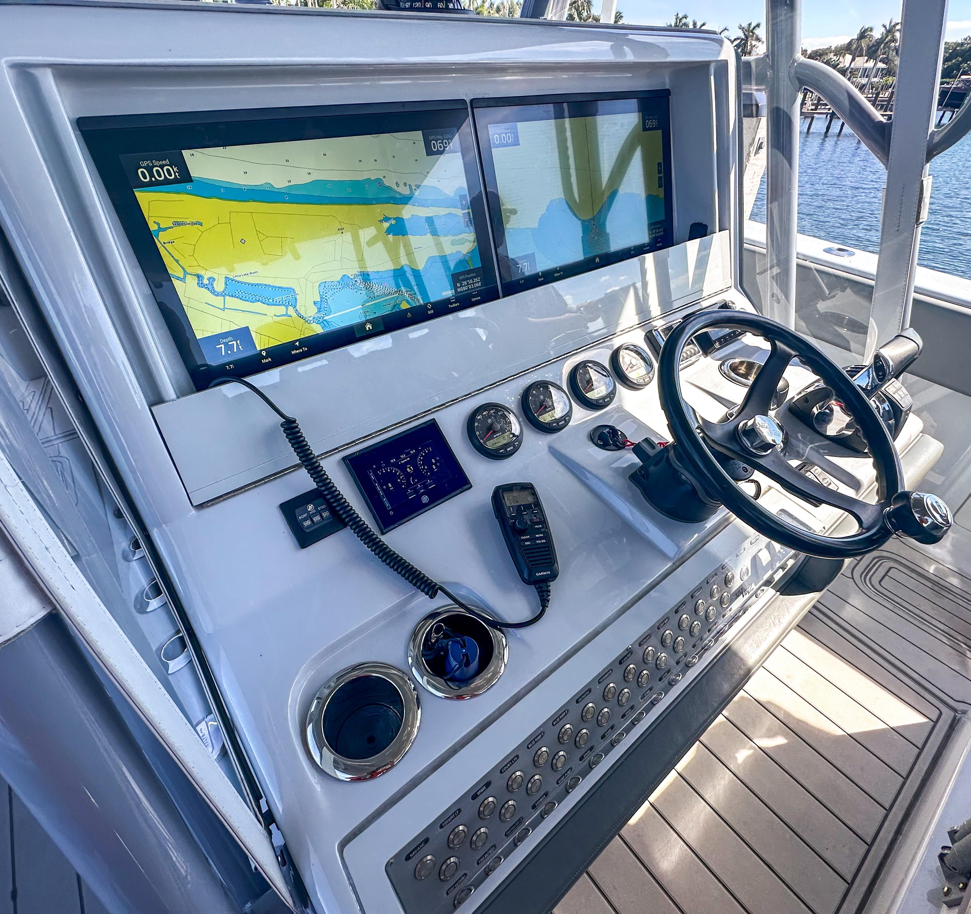 - Radar, Two GPS antennas, sea star antenna, two lumitech razors, live well lids, top of switch panel, bottom door electronics All Same Color