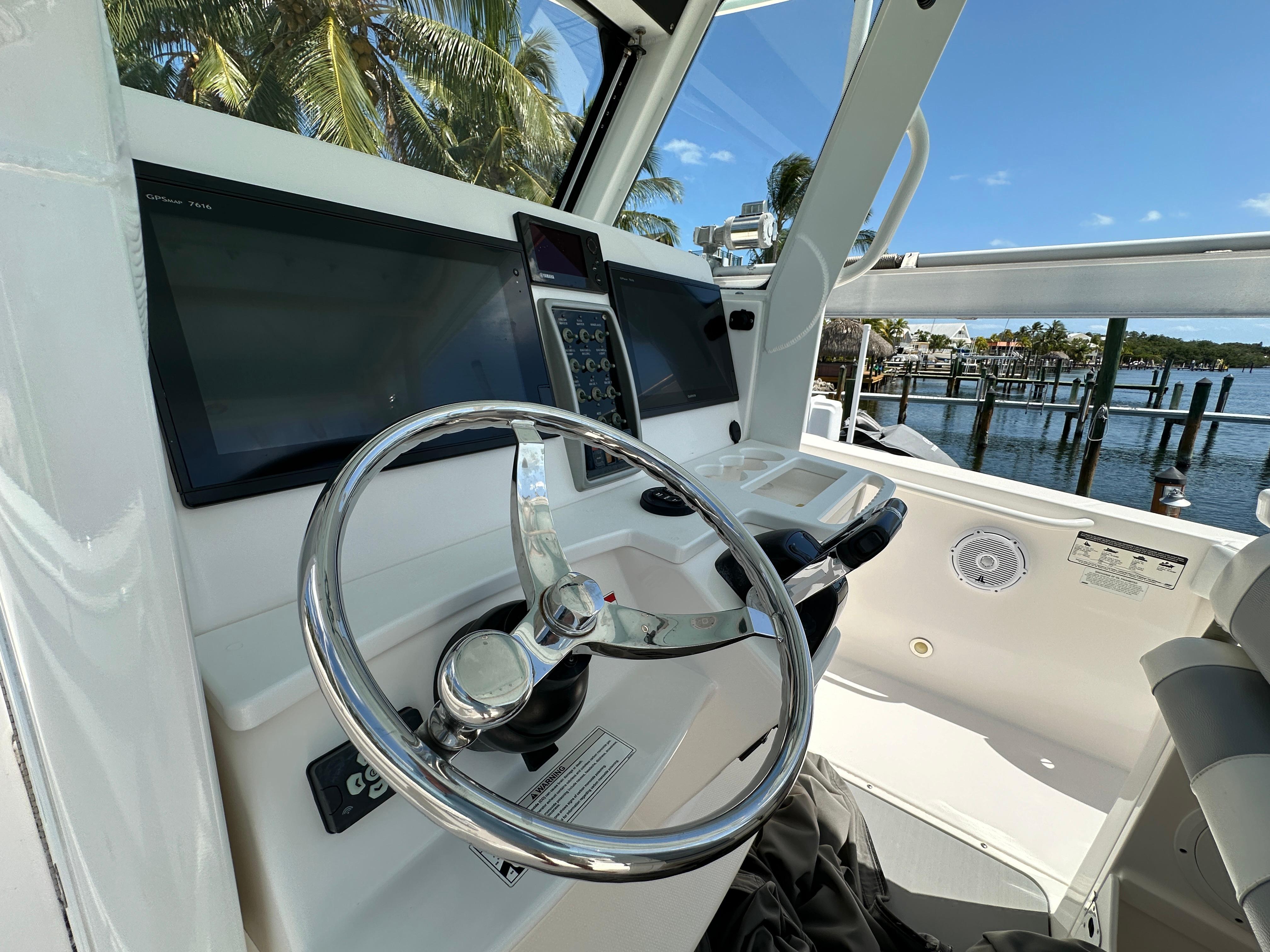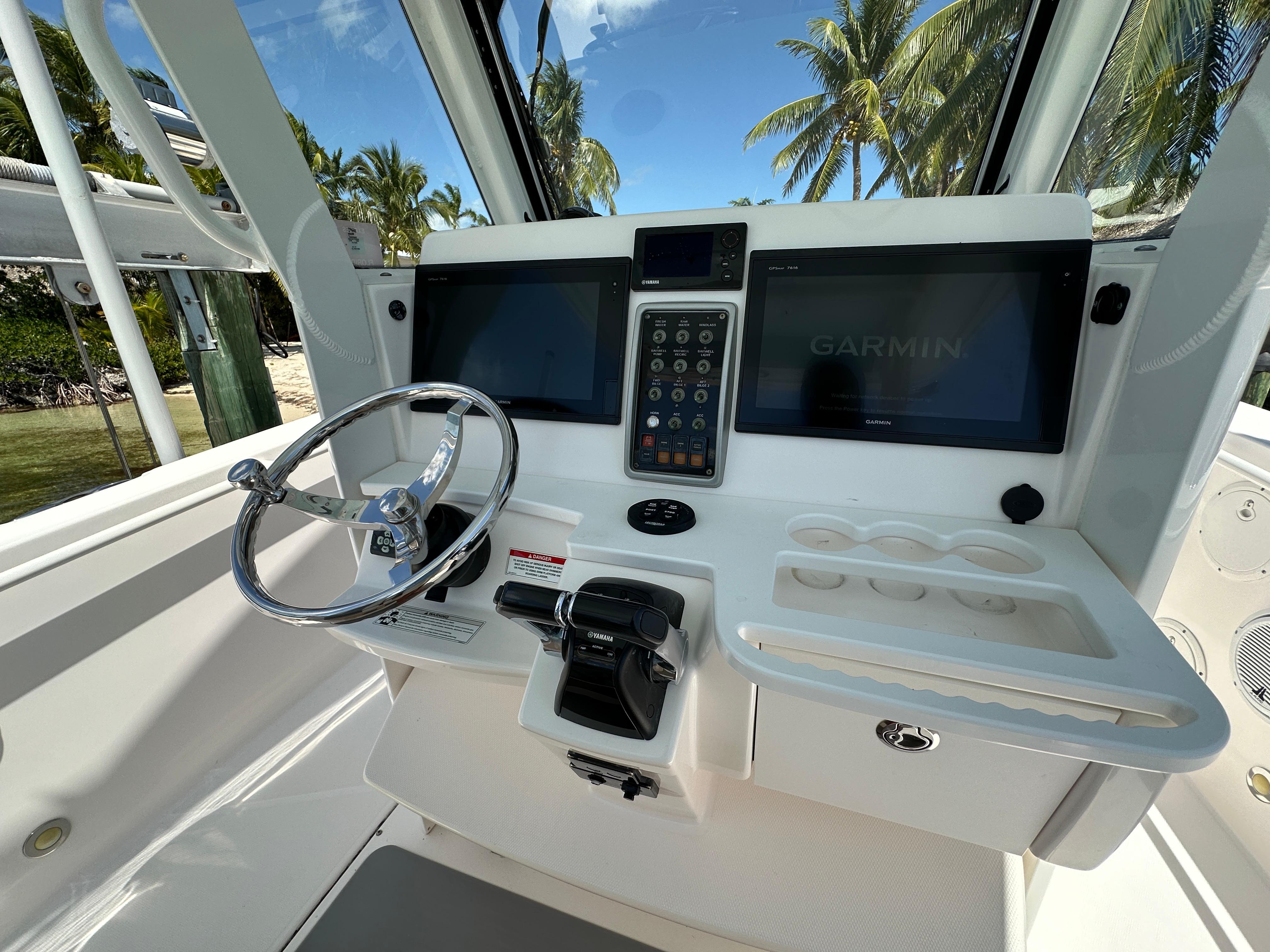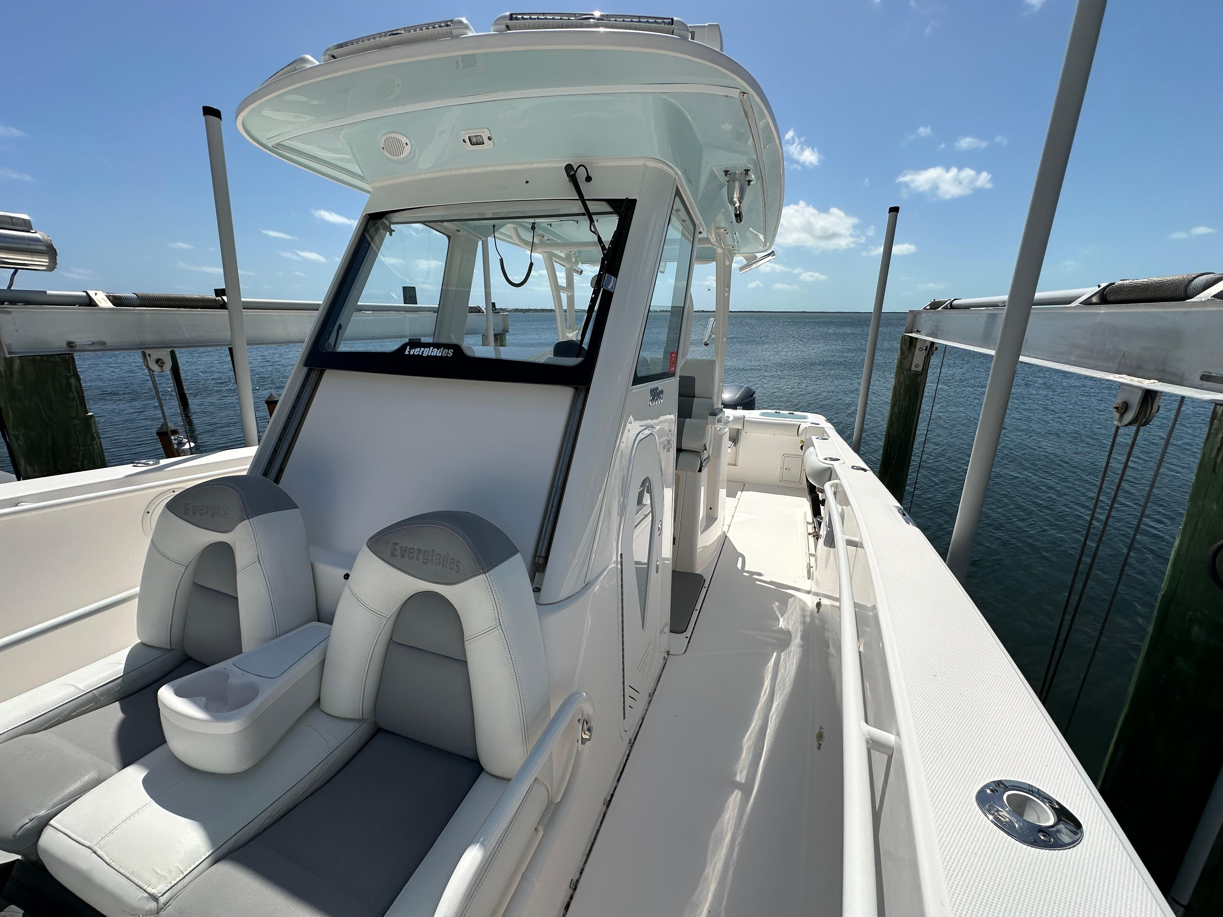 Great Opportunity! 2015 Everglades 325cc powered by twin Yamaha 300's. Approx. 635 hours. This 325cc has been lift-kept since day 1 and waxed annually. The Yamahas have also been serviced annually, regardless of usage. Last service done March 2024.Notable Options - Dual Garmin 7616 GPSMAP- Installed 2024: Garmin Open Array 4' xHD2- Installed 2024: 3 Lumitec Light Bars (Two Flood, One Spot Light Center) - GXM54 Sirius XM Receiver- Taco Telescoping Outriggers - JL Audio Sound System This 2015 Everglades 325cc offers a comprehensive package of standard features suitable for both serious anglers and recreational boaters, providing a balance of performance, comfort, and functionality. Electric Windshield, High/Low Electric Bow Table with Filler Cushion, Electric Marine Head and Holding Tank, Tackle Station with Plano Box holders and a Fresh Water Sink Built-in, Armstrong Dive Ladder with built in bracket, and much more! Located in Key Largo, FL