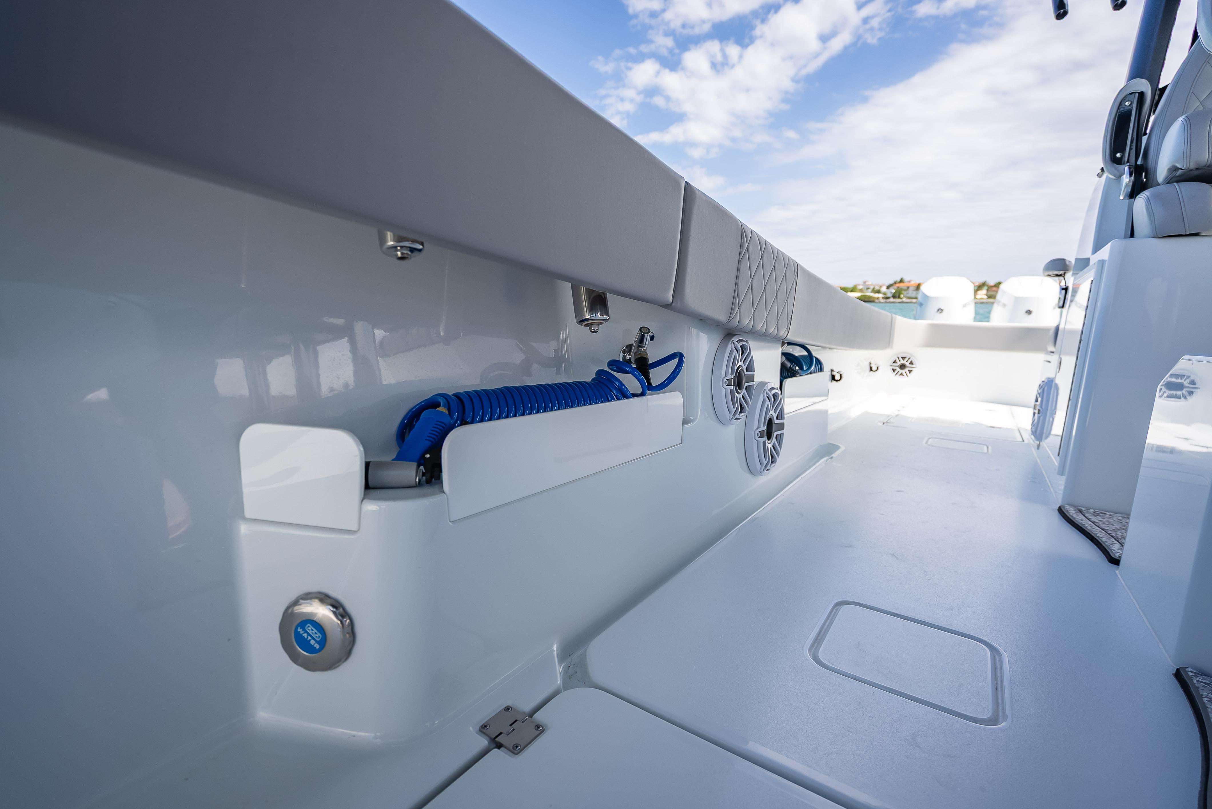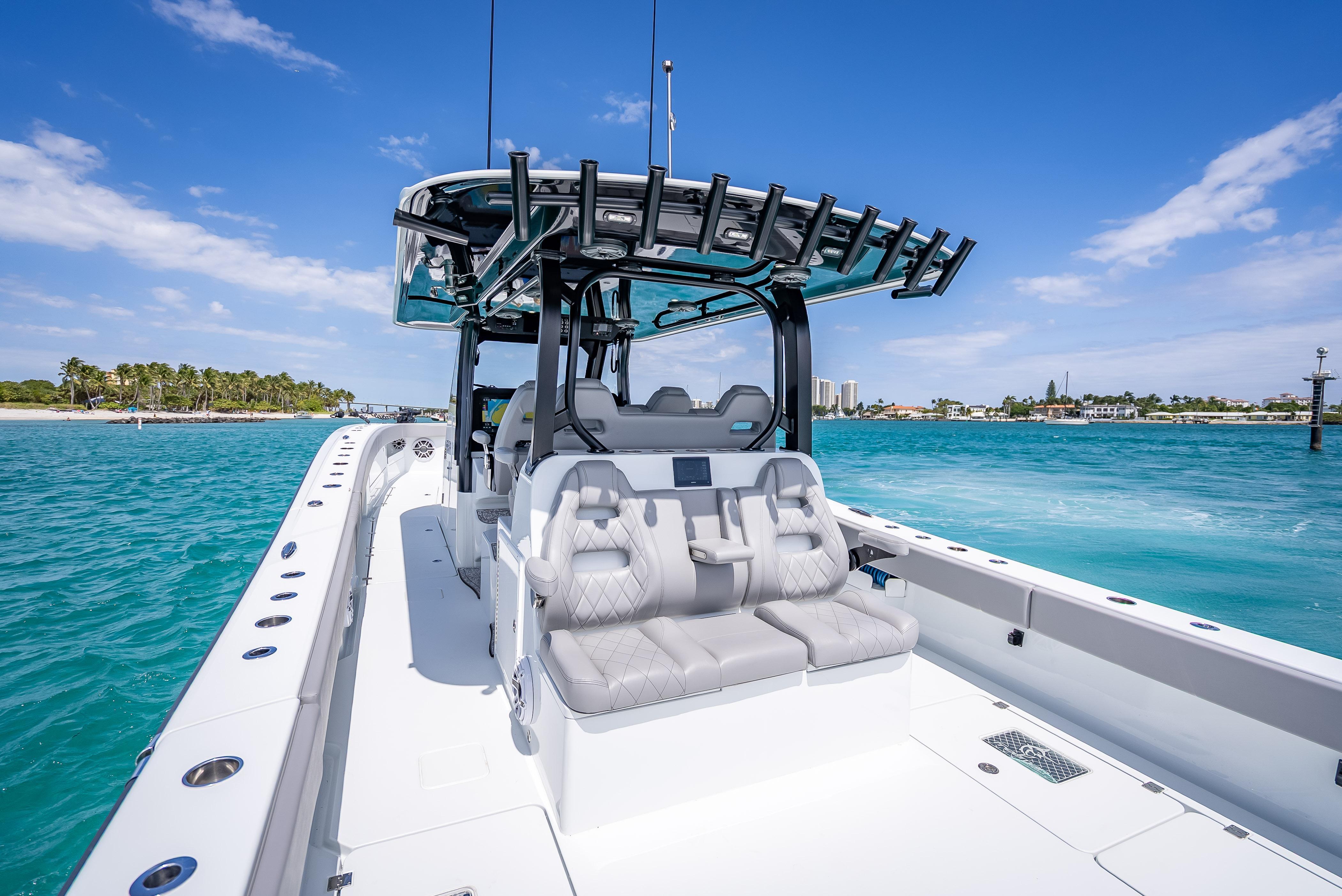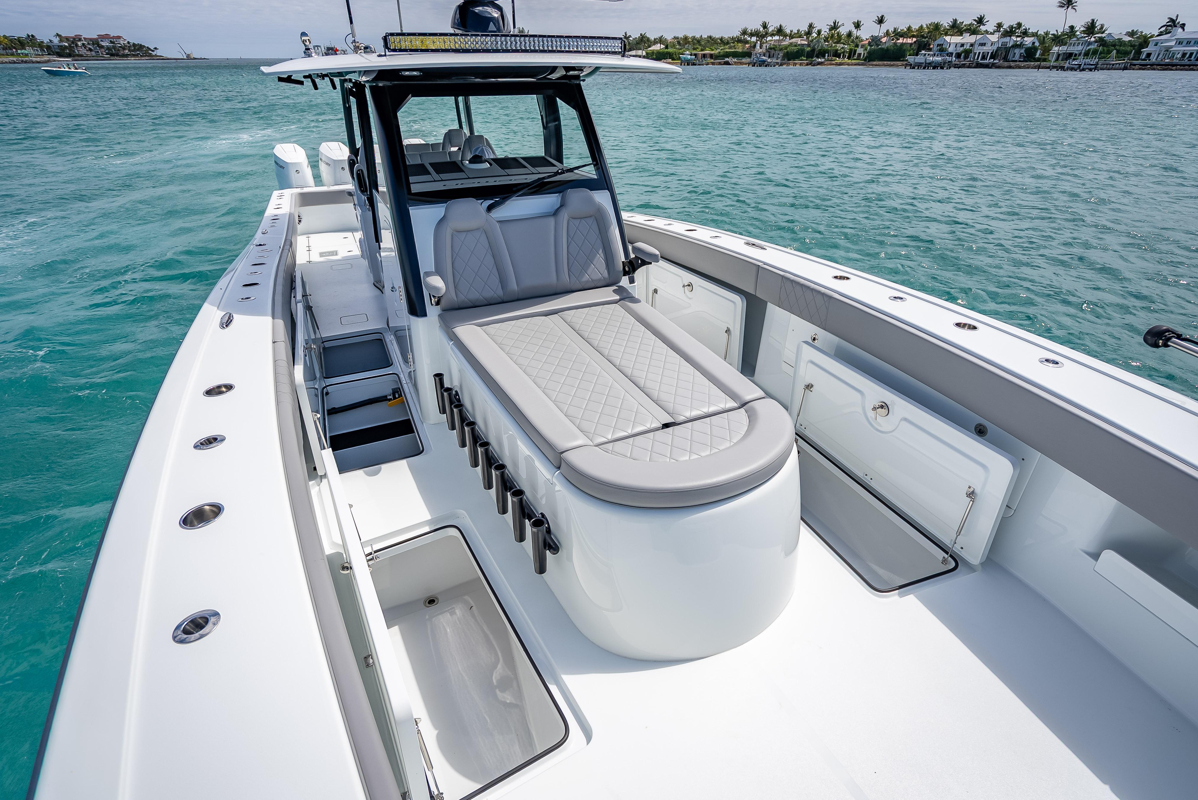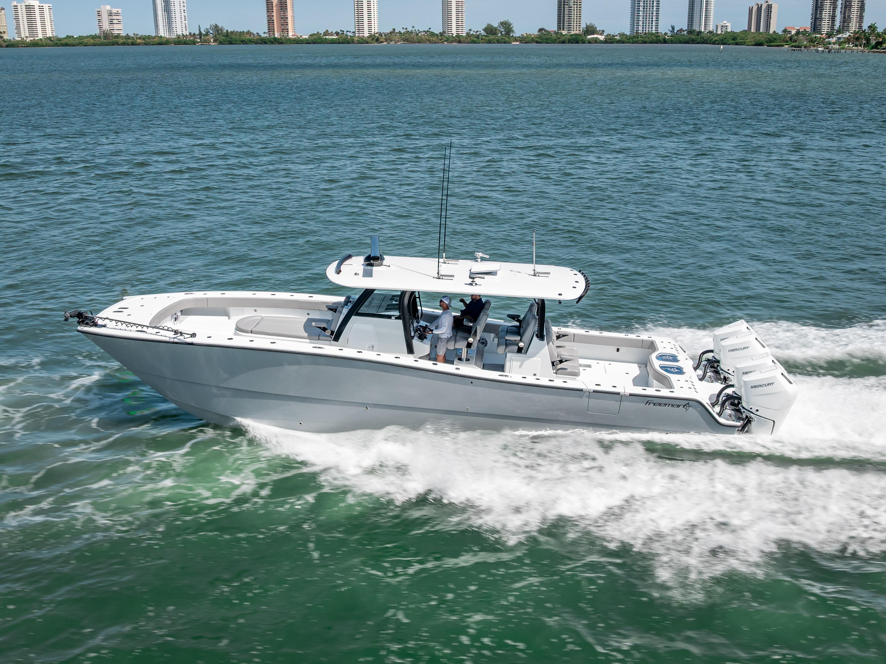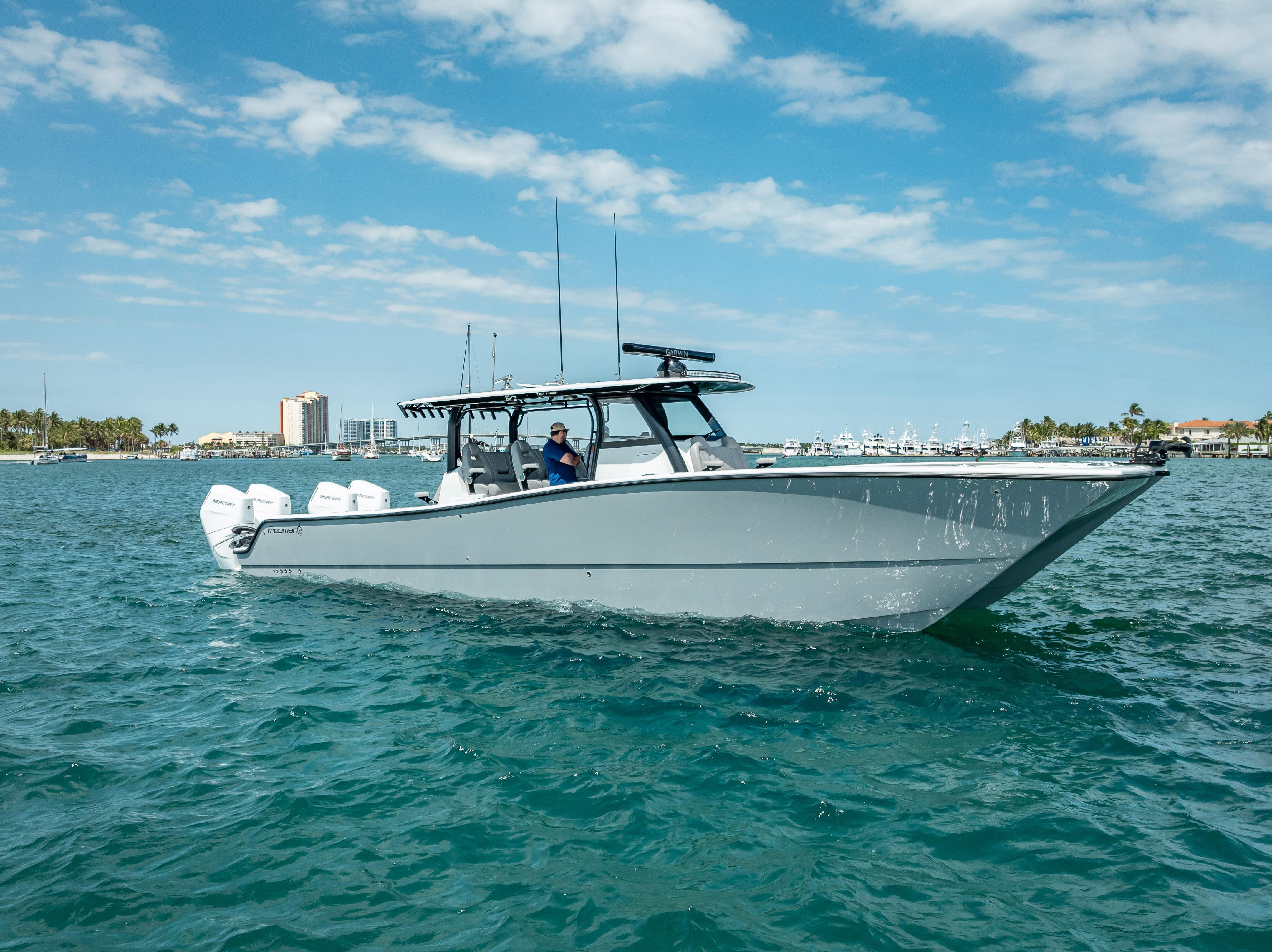 2024 FREEMAN 43TRADE-INS WELCOMEDFor Sale: 2024 Freeman 43 – West Palm Beach, FLHull Color: Haze Gray | Engines: Quad Mercury V10s – 420 Hours | Platinum Warranty Through 2029LOA: 43’ | Beam: 12'3" | Draft: 24" | Fuel: 800 gal | Freshwater: 90 galTurn-key and loaded with every option you'd want in a high-performance center console — this 2024 Freeman 43 is professionally rigged, tournament-capable, and ready for serious offshore action. Located in West Palm Beach, FL, she features top-of-the-line electronics, premium finishes, and a full custom setup for hardcore anglers and family-friendly cruising alike.Power & PerformanceQuad Mercury V10 Outboards (420 hours)Platinum Warranty valid through 2029Smooth, quiet, and powerful ride, paired with long-range capabilities thanks to 800 gallons of fuelHull & LayoutHaze Gray hull with striking black XL molded T-topCustom curved windshield and Rigid light barDual row helm seating + massive forward loungerPort-side dive door for easy access to the waterOver 50 rod holders throughout the boatMassive in-deck storage and tons of insulated compartments and coolersLivewells & Fishability(2) 70-gallon in-floor livewells(2) 110-gallon transom wellsPitch wells on each side of the transomForward pitch well on the bowBuilt to chase live bait and big fish without compromiseT-Top, Rigging & LightingGemlux outrigger bases paired with 21’ Marsh Tacky carbon fiber poles8 flush-mounted spreader lights, 6 multi-color dome lightsMulticolor under-gunnel lighting6 underwater lights (4-color)6 under-gunnel electric reel plugs for deep drop and kite setupsElectronics & Helm(2) Garmin GPSMAP 2624 unitsGSD26 & GSD25 transducers for serious bottom performanceGHP 20 marine autopilotGarmin Phantom 56 6’ open array radar (painted to match)(2) Icom VHF radios with 8' antenna Rear-facing Garmin screen for cockpit visibilityFusion head unit paired with 26 JL Audio speakers and matching JL amps — concert-level sound at the sandbar or on the runAdditional HighlightsDual-row seatingForward lounger with storageRear-facing cockpit seatingZip Wake SystemAmple cooler space, dry storage, and custom touches throughoutReady for fishing, cruising, diving, or sandbar weekendsThis Freeman is an absolute weapon offshore and a head-turner at the dock. Professionally maintained, dialed in, and outfitted with only the best equipment. Skip the wait and step into a build that checks every box.Currently located in West Palm Beach, FLContact for pricing, full build sheet, or to schedule a private showing.