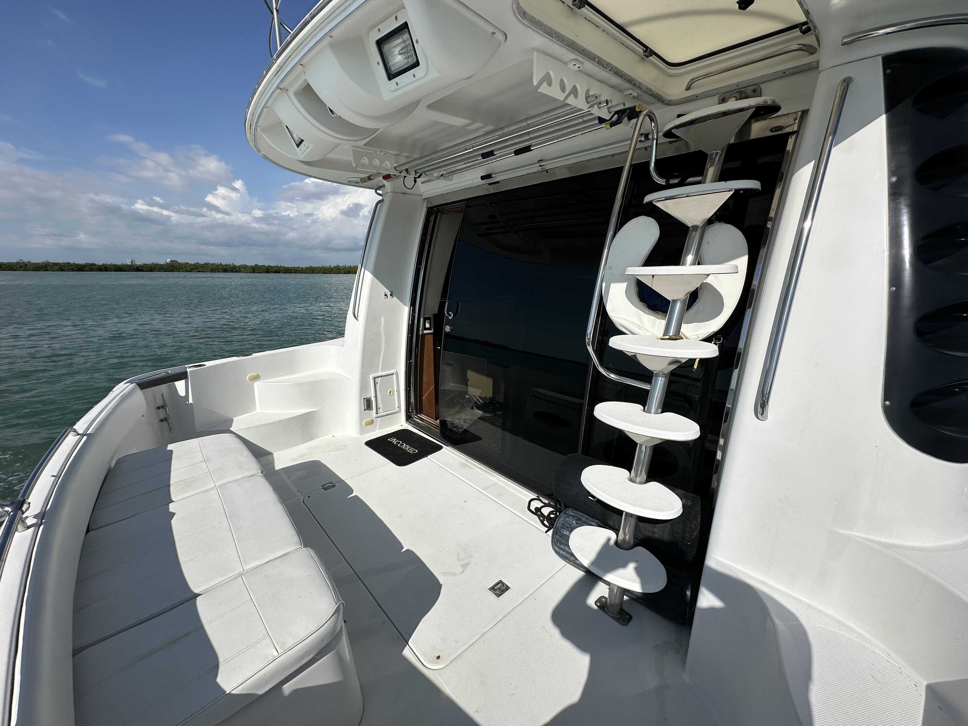 • Aft deck very large with full railing and (2) folding yacht chairs