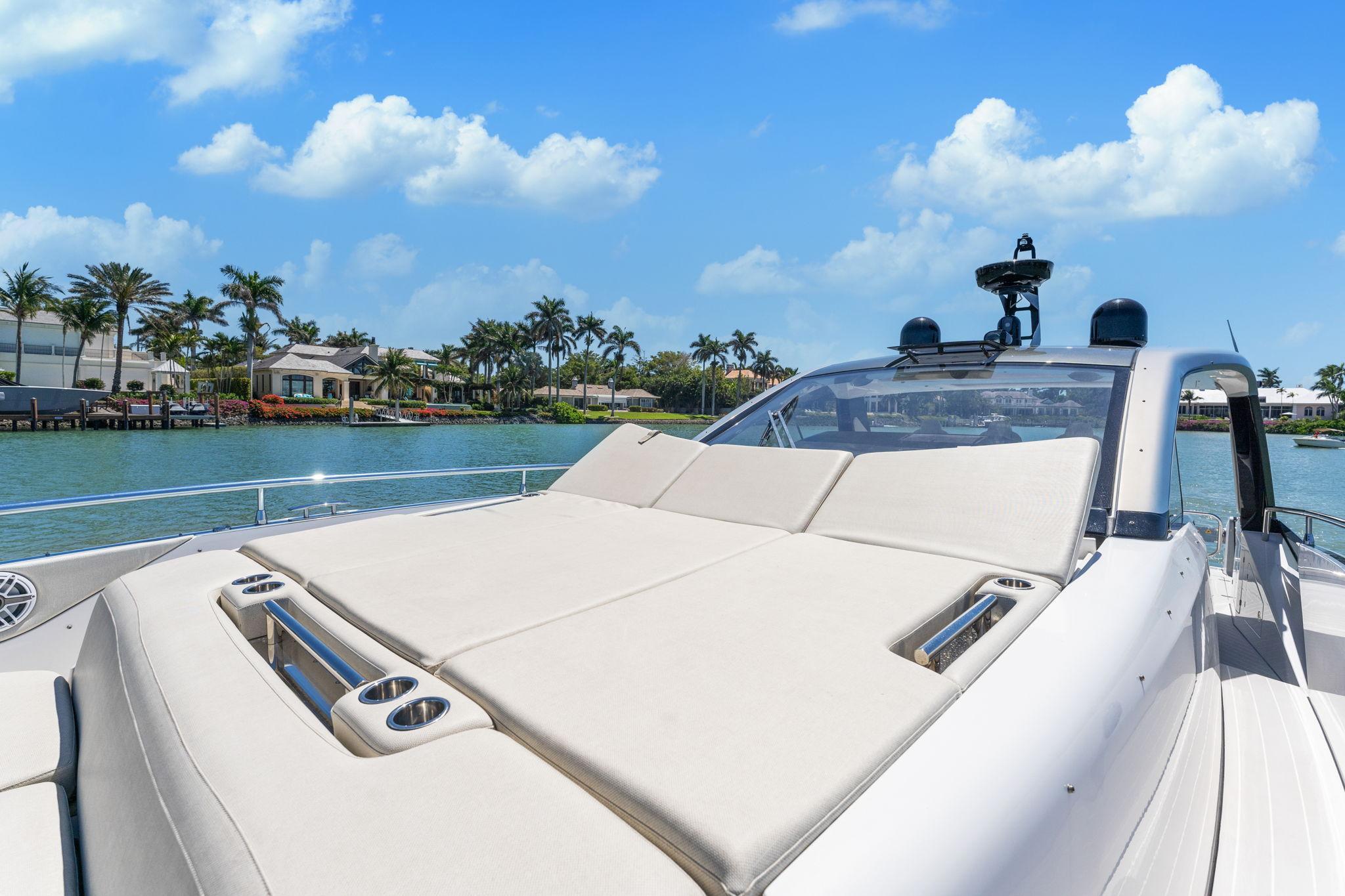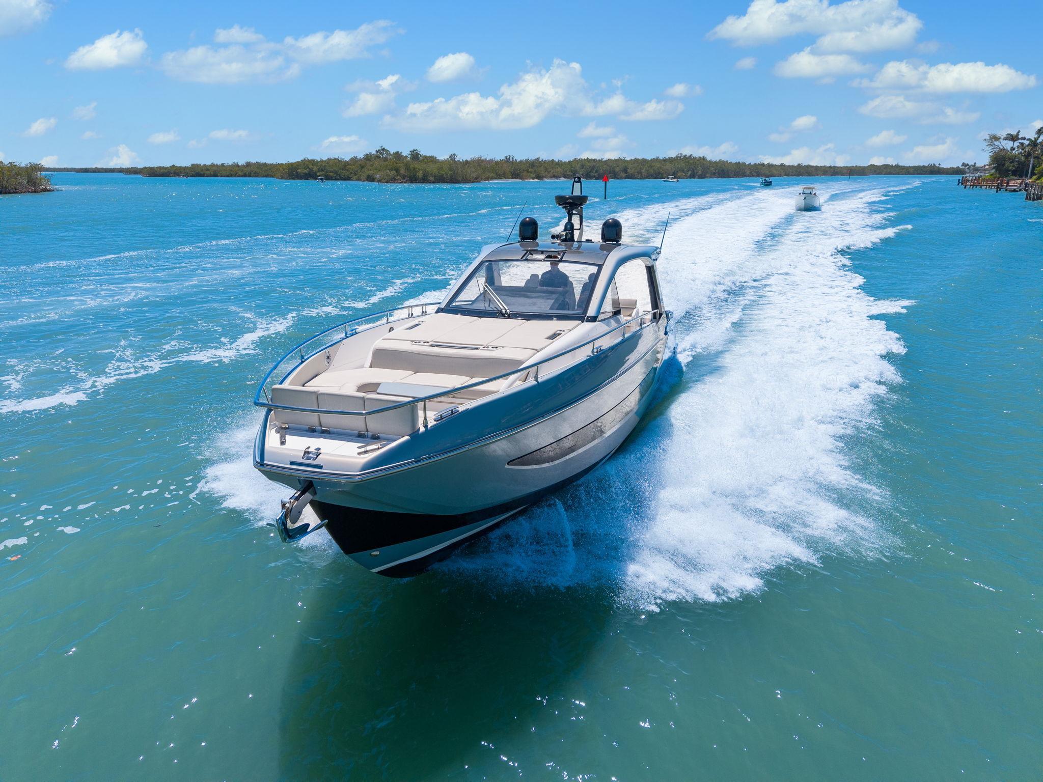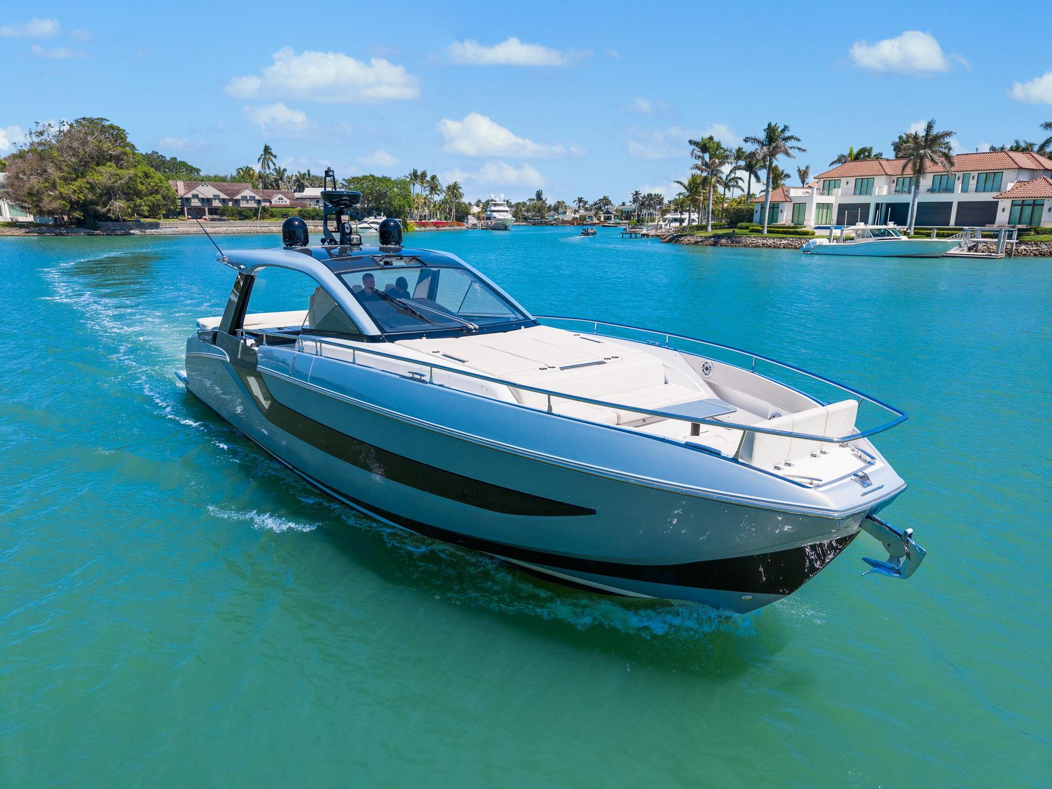 The 2022 Azimut Verve 47 combines Italian styling and American power with quad Mercury 450Rs, luxurious accommodations, and thrilling performance up to 50 knots.The sporty, dynamic external lines of the Verve 47 conceal surprisingly spacious volumes while the ample open-air areas are designed with comfort and versatility in mind. Sit back and prepare to be enthralled and seduced by its timeless modernity as you experience the invigorating, empowering sense of knowing you are free to have whatever your heart desires, wherever and whenever you choose to go.The asymmetrical split-level layout of the bow is designed to maximize space for outdoor living. Up top is an ample cushioned sunbathing area while just below is a versatile al fresco lounge-cum-dining zone with a six-person table surrounded by an inviting C-shaped divan.The concept behind the design of the exterior areas is to enable the owner and guests to fully enjoy the extraordinary privilege of life on the water. Versatility is to the fore, with a high-low table that can be completely removed from sight, a lateral open section and well-equipped cockpit cabinet creating an enticing, glamorous aft area that is simply made for long, convivial afternoons and evenings relaxing with friends and family.The American approach of wholeheartedly embracing the sporty nature of life at sea combines with renowned Italian style and design flair, and of course the unmistakable Azimut personality and attention to detail. The bow reinterprets the typical profile of offshore racing boats, but the innovative integration of the windows into the hull and gunwale creates an extraordinary sense of connection with the sea.