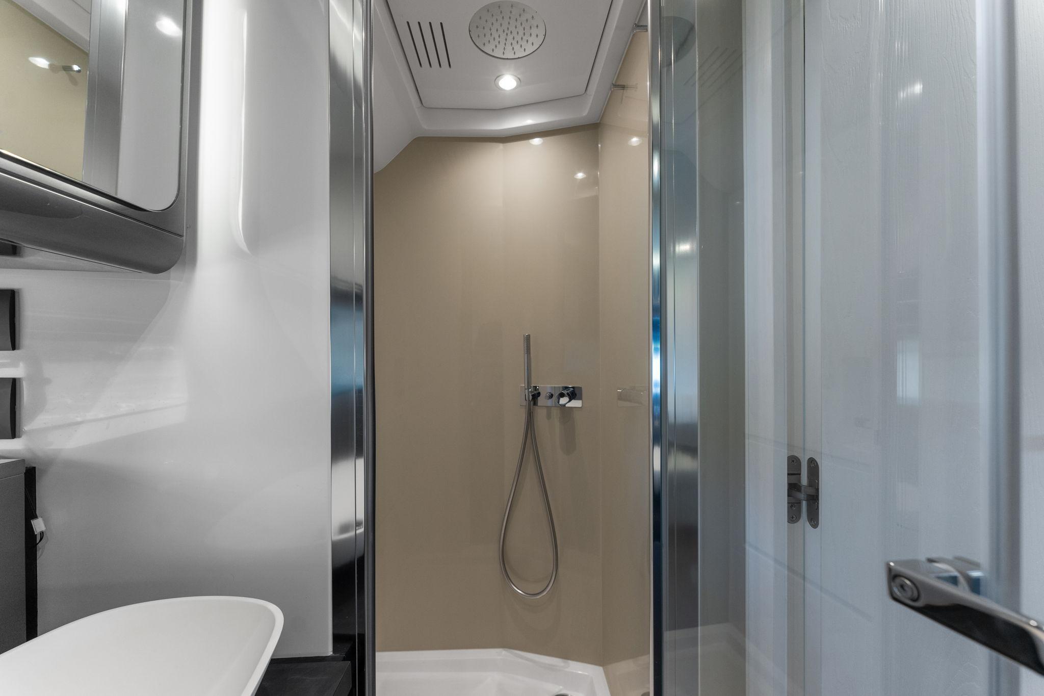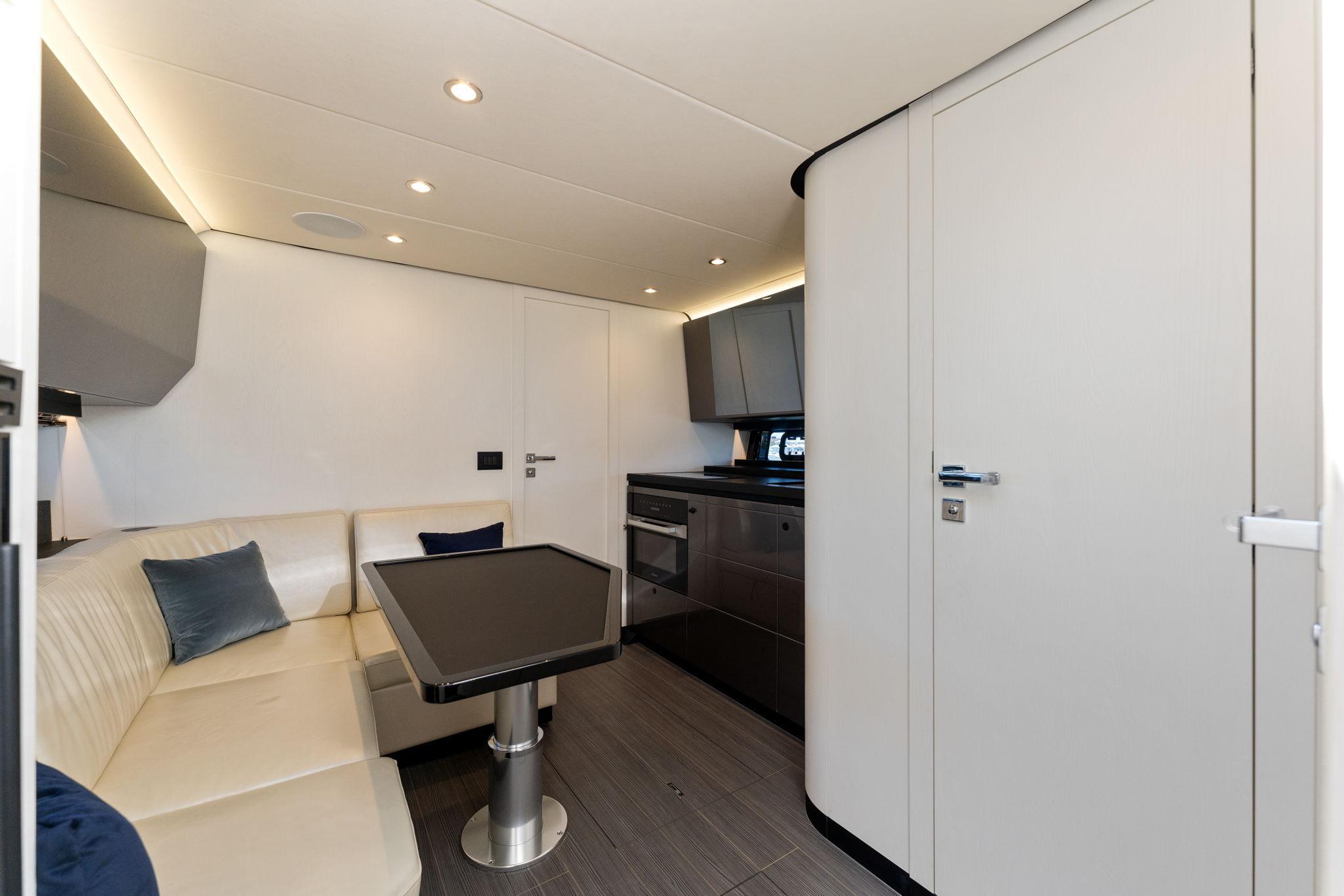Contemporary design with wraparound hull windows, premium sound system, and ample headroom throughout.
