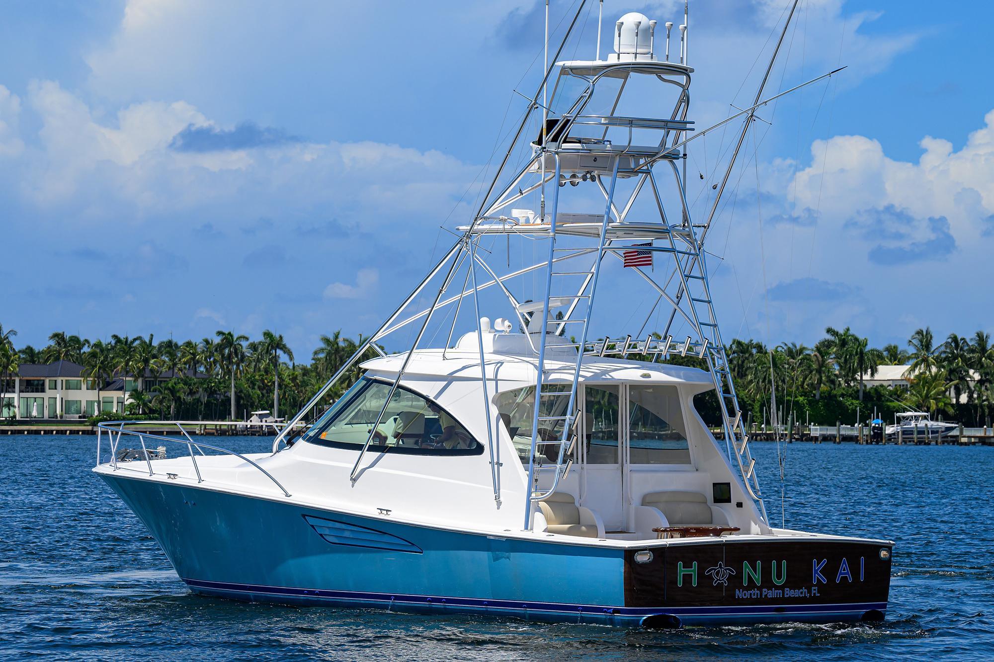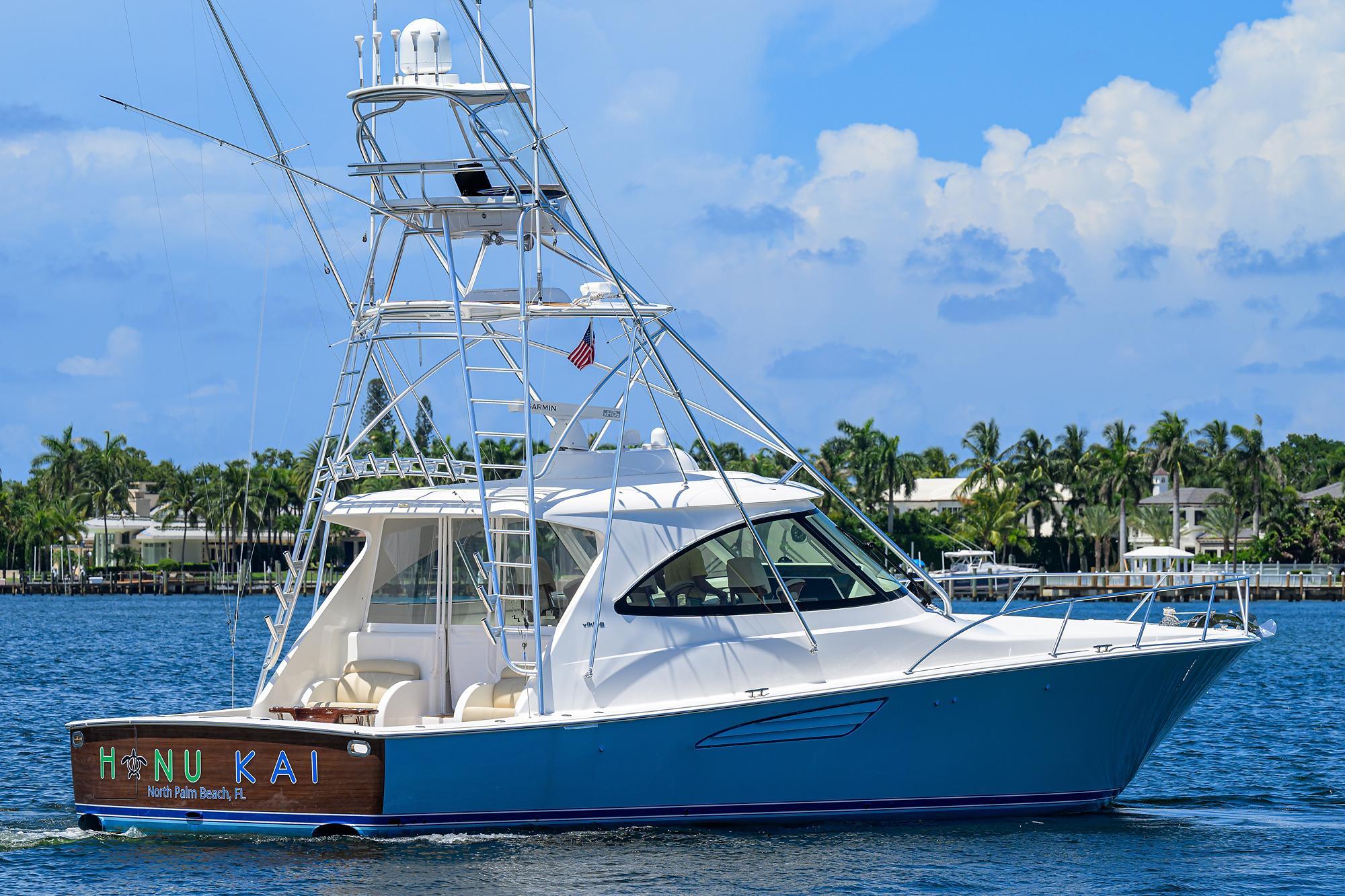 2017 48' Viking Sport Tower Honu Kai has been maintained in excellent condition.She was built like a Viking factory showboat and includes all of the desirable options such as the upgraded 1,200 MAN CRMs, SeaKeeper 9 Gyro, ZF Joystick Maneuvering System with Station Keeping, Upgraded Hydraulic Bow Thruster, Release Marine Teak Battle Saddle, Stunning Custom High Gloss Walnut Interior, Upgraded Cockpit Refrigeration/Freezers, ElectroSea System, Teak Cockpit and Mezzanine, Eskimo Ice Chipper, Custom Rod Storage Overhead, Helm-deck air conditioning, Custom Palm Beach Tower and full array Garmin electronics from Atlantic Marine Electronics upgraded to 8616's.