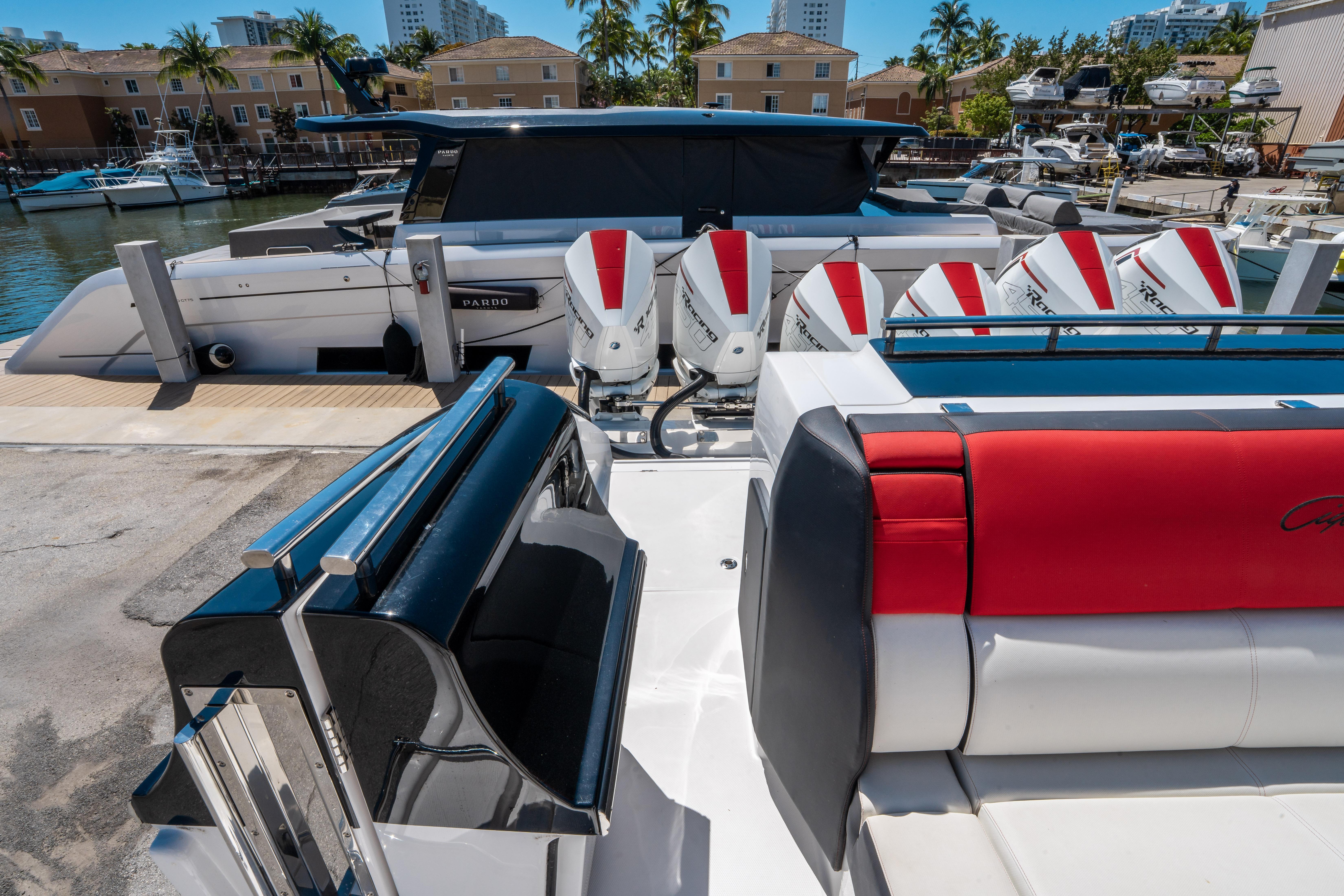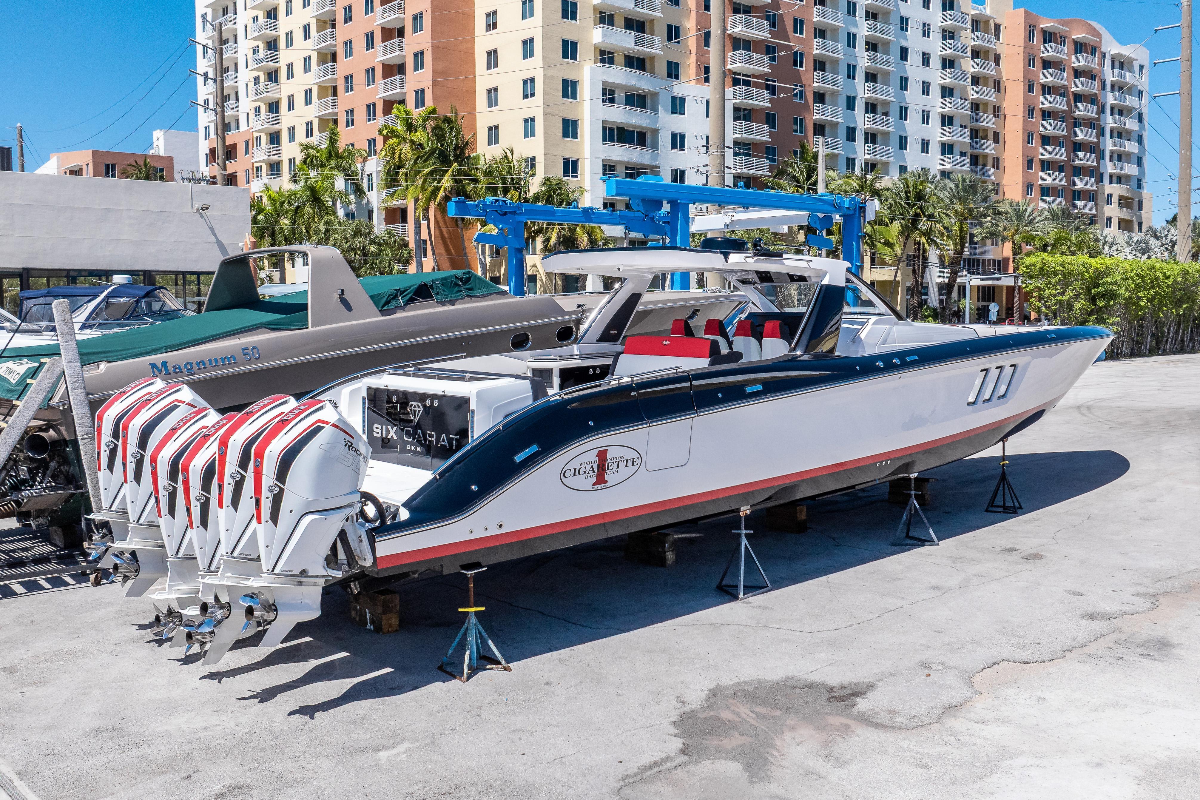 2021 Cigarette Tirranna 59 – A Masterpiece of Performance and LuxuryStep aboard the 2021 Cigarette Tirranna 59, a stunning blend of cutting-edge performance and luxury design. Developed from the ground up by Cigarette Racing and styled by the legendary superyacht designer Giorgio Cassetta, the Tirranna 59 is a boat unlike any other. Whether you're cruising at 80 mph or enjoying a tranquil moment in the cabin, every aspect of this vessel exudes sophistication and power.Unrivaled PerformanceAt the heart of the Tirranna 59 lies an impressive powertrain – 6 x Mercury Racing 450R Outboard Engines, delivering an exhilarating performance with just 370 hours of use. Whether you're cruising the crystal-clear waters of the Bahamas or speeding towards the Caribbean, the balance and agility of the Tirranna will leave you in awe. It's not just a boat; it's a thrilling experience that allows you to enjoy unmatched speed and stability without sacrificing comfort.Luxury Interior by Poltrona FrauInside, you'll find a cabin meticulously crafted with Poltrona Frau upholstery, offering a level of luxury and craftsmanship that's rare in the world of high-performance boats. Every detail has been designed for ultimate comfort, with elegant furnishings that are both beautiful and functional. The attention to detail extends to every corner, from the sleek, modern helm to the luxurious seating areas – ensuring you can enjoy both high-speed adventures and serene getaways in absolute comfort.Exterior ExcellenceThe exterior of the Tirranna 59 is equally impressive, featuring Cool-Touch upholstery made by Skai, a leading brand known for its durability and comfort, with assembly by Poltrona Frau. This exclusive collaboration brings you an exterior that not only looks stunning but also offers practical benefits – it stays cooler in the sun, resists wear and tear, and offers a superior level of comfort for long trips under the sun.Designed for Comfort at SpeedThis boat is built to balance speed and relaxation effortlessly. Whether you're zipping across open waters at 80 mph or enjoying a leisurely cruise, the Tirranna 59 offers a level of stability and comfort that is second to none. It’s a vessel that lets you live the dream – light a cigar, lounge in the cabin, and still arrive in style and on time.The Ultimate Boating ExperienceThe 2021 Cigarette Tirranna 59 isn’t just a boat; it’s an experience designed for those who demand the best in both performance and luxury. If you're ready to elevate your boating adventures, the Tirranna 59 is ready to exceed your expectations.Key Features:6 x Mercury Racing 450R Outboard Engines (370 hours)Designed by Giorgio Cassetta, the world-renowned superyacht designerPoltrona Frau-crafted interior upholstery for unmatched luxuryExterior Cool-Touch upholstery by Skai of Continental Tires, assembled by Poltrona FrauAchieve speeds of 80mph with smooth handling and stabilityA perfect combination of cutting-edge performance and timeless designThis is your chance to own a piece of true boating excellence. Reach out today to schedule a private viewing or for more information. The 2021 Cigarette Tirranna 59 awaits its next adventure.