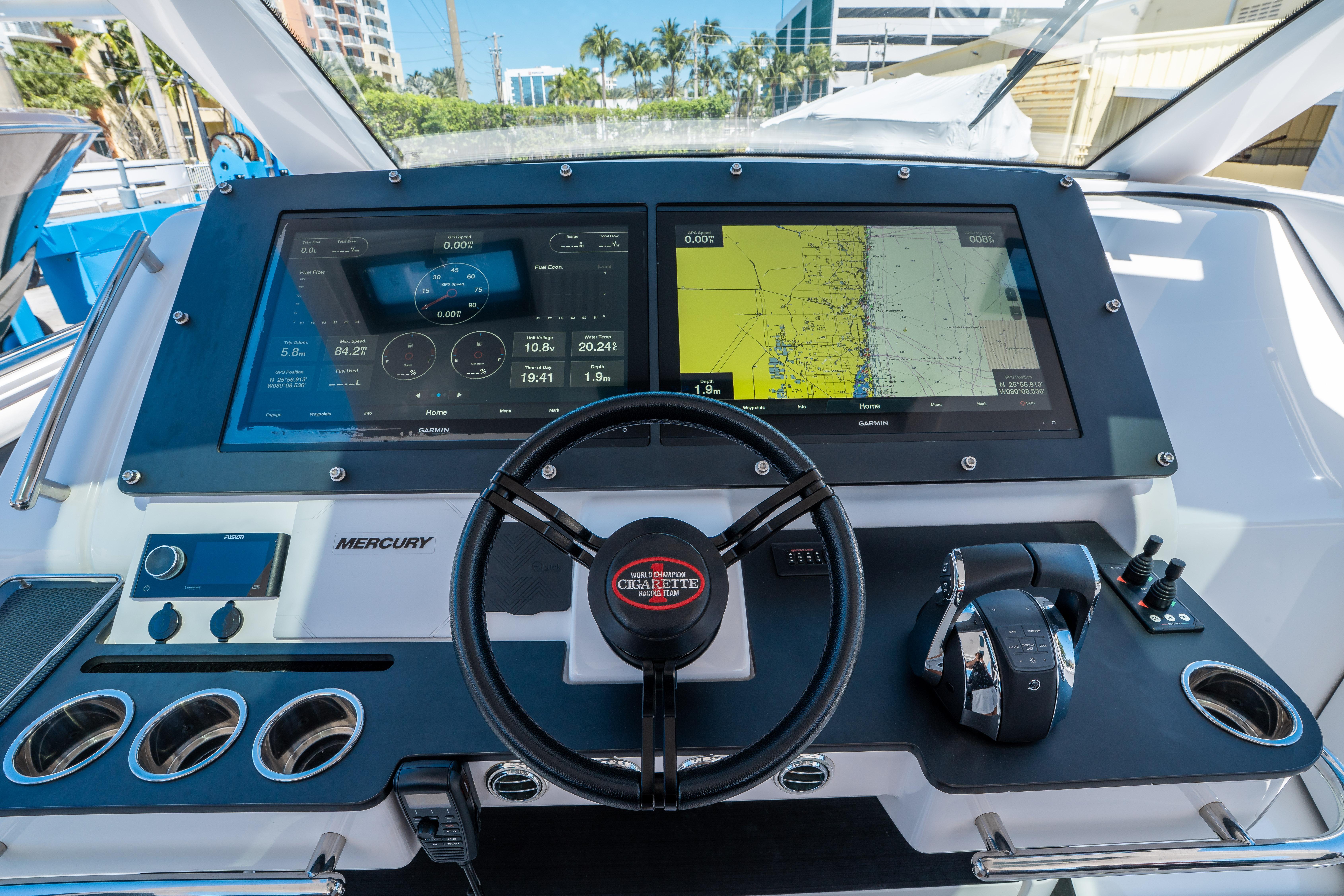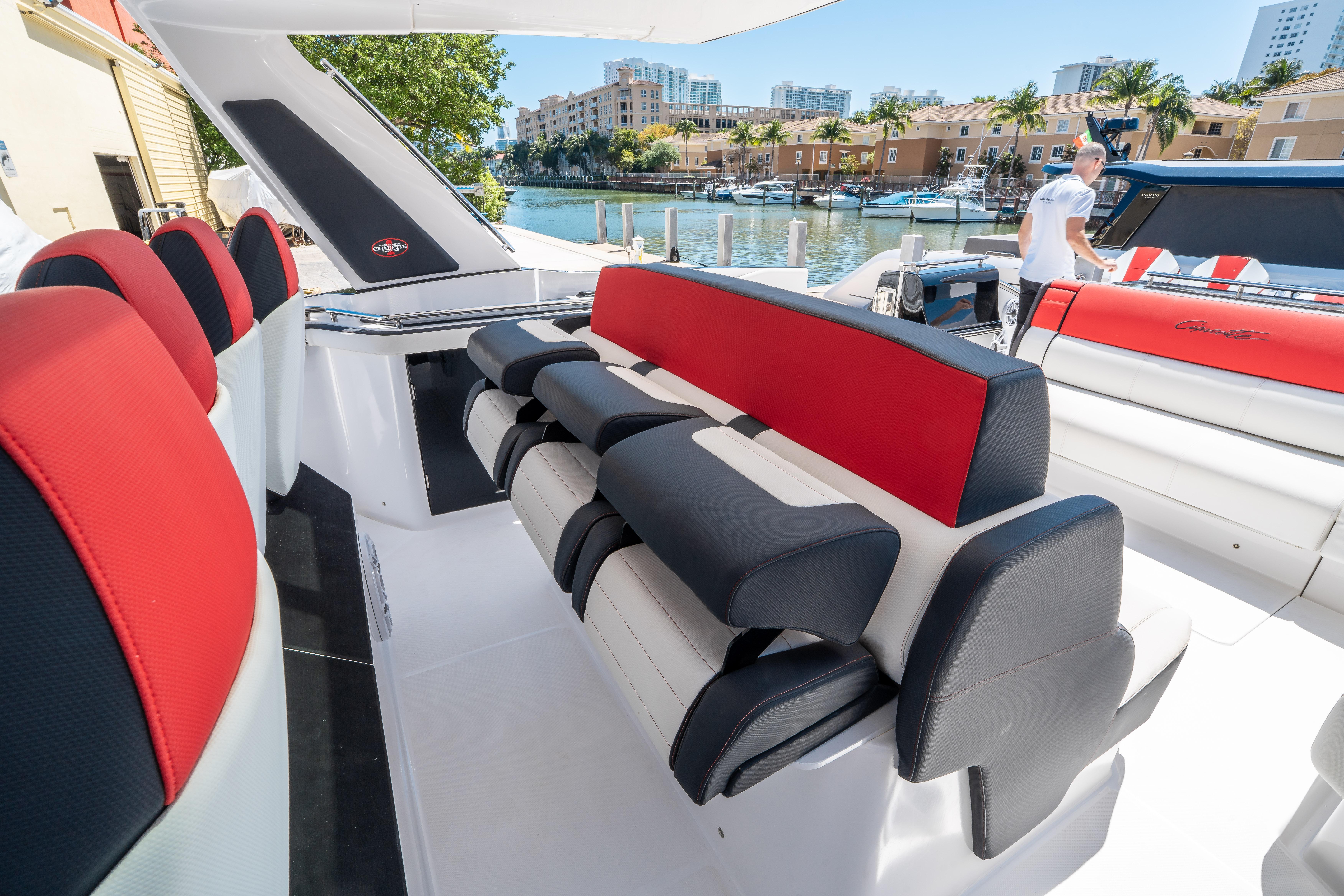 2021 Cigarette Tirranna 59 – A Masterpiece of Performance and LuxuryStep aboard the 2021 Cigarette Tirranna 59, a stunning blend of cutting-edge performance and luxury design. Developed from the ground up by Cigarette Racing and styled by the legendary superyacht designer Giorgio Cassetta, the Tirranna 59 is a boat unlike any other. Whether you're cruising at 80 mph or enjoying a tranquil moment in the cabin, every aspect of this vessel exudes sophistication and power.Unrivaled PerformanceAt the heart of the Tirranna 59 lies an impressive powertrain – 6 x Mercury Racing 450R Outboard Engines, delivering an exhilarating performance with just 370 hours of use. Whether you're cruising the crystal-clear waters of the Bahamas or speeding towards the Caribbean, the balance and agility of the Tirranna will leave you in awe. It's not just a boat; it's a thrilling experience that allows you to enjoy unmatched speed and stability without sacrificing comfort.Luxury Interior by Poltrona FrauInside, you'll find a cabin meticulously crafted with Poltrona Frau upholstery, offering a level of luxury and craftsmanship that's rare in the world of high-performance boats. Every detail has been designed for ultimate comfort, with elegant furnishings that are both beautiful and functional. The attention to detail extends to every corner, from the sleek, modern helm to the luxurious seating areas – ensuring you can enjoy both high-speed adventures and serene getaways in absolute comfort.Exterior ExcellenceThe exterior of the Tirranna 59 is equally impressive, featuring Cool-Touch upholstery made by Skai, a leading brand known for its durability and comfort, with assembly by Poltrona Frau. This exclusive collaboration brings you an exterior that not only looks stunning but also offers practical benefits – it stays cooler in the sun, resists wear and tear, and offers a superior level of comfort for long trips under the sun.Designed for Comfort at SpeedThis boat is built to balance speed and relaxation effortlessly. Whether you're zipping across open waters at 80 mph or enjoying a leisurely cruise, the Tirranna 59 offers a level of stability and comfort that is second to none. It’s a vessel that lets you live the dream – light a cigar, lounge in the cabin, and still arrive in style and on time.The Ultimate Boating ExperienceThe 2021 Cigarette Tirranna 59 isn’t just a boat; it’s an experience designed for those who demand the best in both performance and luxury. If you're ready to elevate your boating adventures, the Tirranna 59 is ready to exceed your expectations.Key Features:6 x Mercury Racing 450R Outboard Engines (370 hours)Designed by Giorgio Cassetta, the world-renowned superyacht designerPoltrona Frau-crafted interior upholstery for unmatched luxuryExterior Cool-Touch upholstery by Skai of Continental Tires, assembled by Poltrona FrauAchieve speeds of 80mph with smooth handling and stabilityA perfect combination of cutting-edge performance and timeless designThis is your chance to own a piece of true boating excellence. Reach out today to schedule a private viewing or for more information. The 2021 Cigarette Tirranna 59 awaits its next adventure.