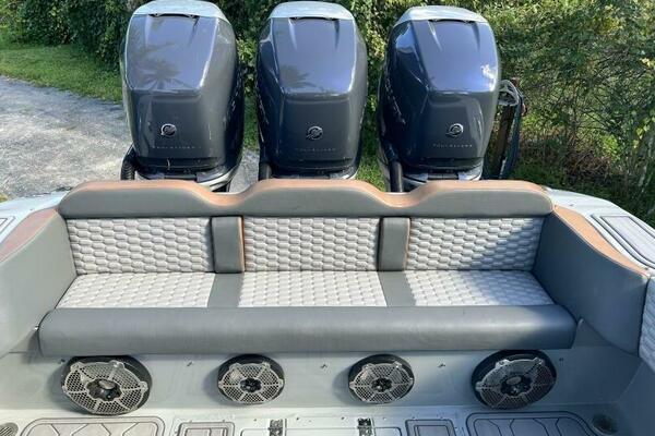 Exquisite 1996 Formula 382 SR-1 Center Console Refit in 2023! Indulge in a blend of classic design and modern sophistication with this one-of-a-kind, fully renovated 1996 Formula 382 SR-1, masterfully converted in 2023 from a high performance cuddy cabin cruiser into a luxurious center console. This exclusive vessel is a testament to unparalleled craftsmanship, offering a bespoke boating experience for the discerning buyer. Distinguishing Features: Triple 2018 Mercury 350 Verado Outboards:Revel in the power and smooth performance of these reliable engines, ensuring an exhilarating yet refined journey on the water.A custom-manufactured aluminum transom bracket converted this twin-inboard/outboard go-fast boat into a triple outboard powerhouse. Complete Professional Overhaul:Every detail has been meticulously attended to, with all wiring, plumbing, upholstery, and electronics newly installed to the highest standards. Custom Decks and Foam Flooring:The cockpit decking was completely replaced with foam-cored fiberglass.The custom-installed closed cell foam flooring covers all floors, gunwales, and bow deck providing an unparalleled blend of comfort and style, while ensuring maximum safety and comfort. Exclusive Two-Tone Grey Gelcoat Hull:The bespoke two-tone grey gel coat finish offers a sophisticated and modern aesthetic, ensuring you make a statement wherever you go. Advanced Marine Electronics:Outfitted with cutting-edge Garmin navigation, Mercury SmartCraft engine management, and a Fusion entertainment system with 12 DS-18 speakers powered by two amplifiers, this boat promises a seamless, luxurious, on-water experience. Premium Upholstery:Luxurious, custom upholstery adds to the comfort and elegance, making this the perfect vessel for entertaining in style. This Formula 382 SR-1 center console is more than just a boat; it’s a work of art. Crafted for those who appreciate the finer things in life and value exclusivity, this unique vessel is perfect for elegant cruising, refined fishing, or sophisticated entertaining. Experience the epitome of nautical luxury and individuality with this extraordinary yacht. The custom triple-axle aluminum trailer is included with the vessel. All offers will be considered. Seize the opportunity to own this one-of-a-kind masterpiece. Contact us today to arrange a private viewing and experience the epitome of luxury boating.