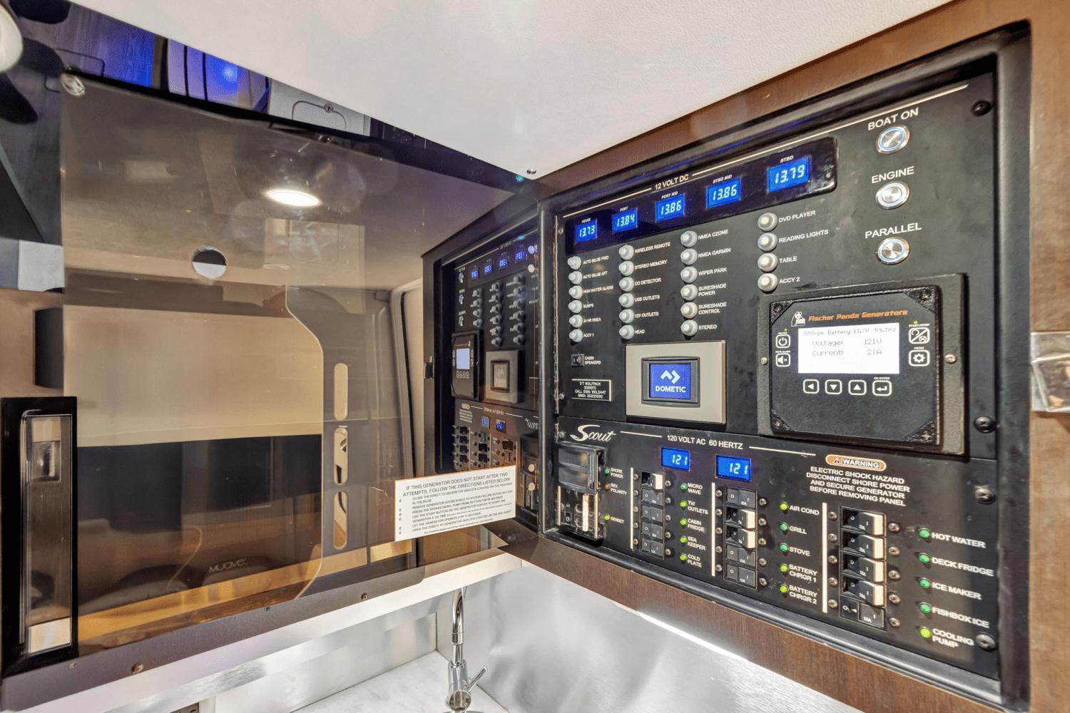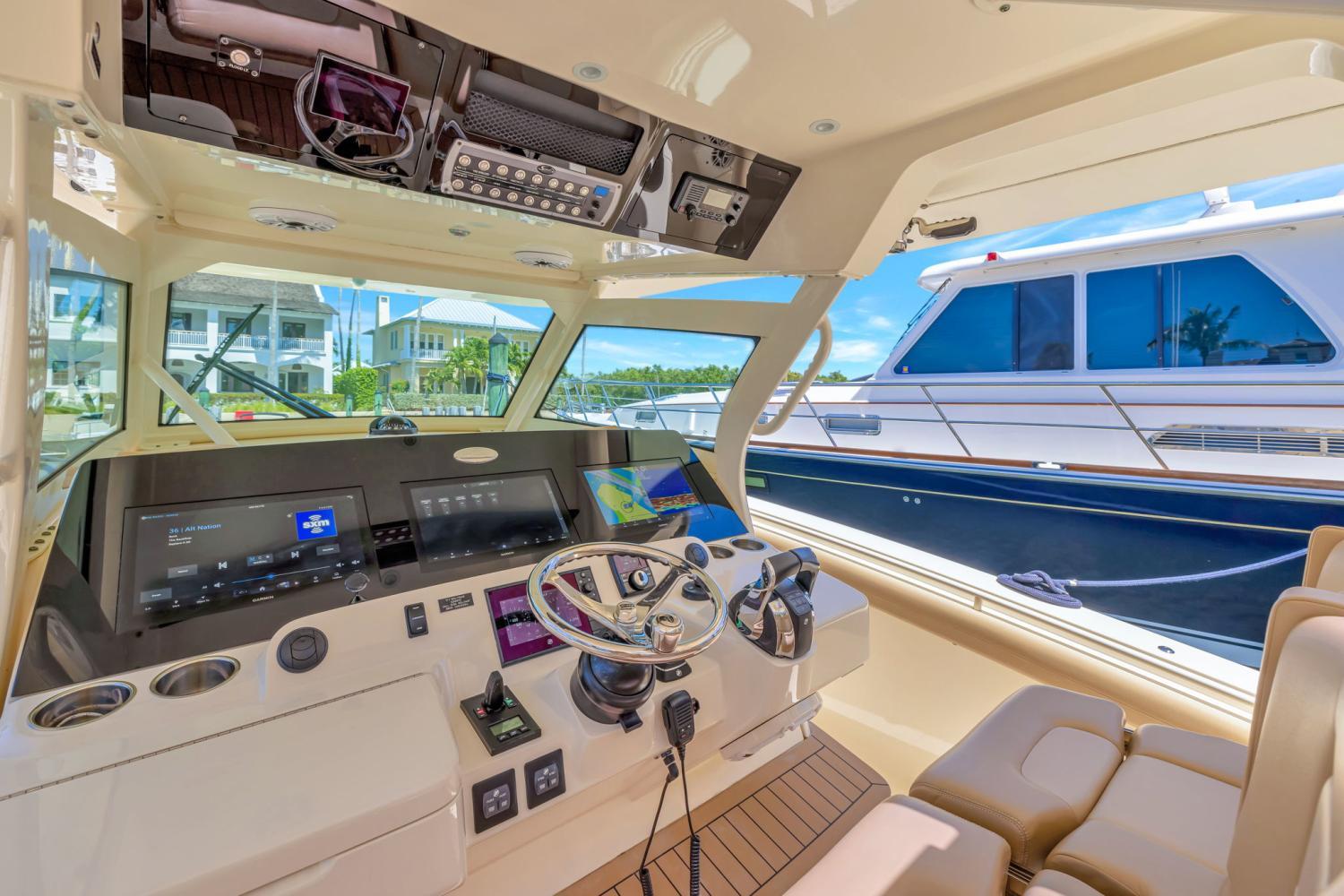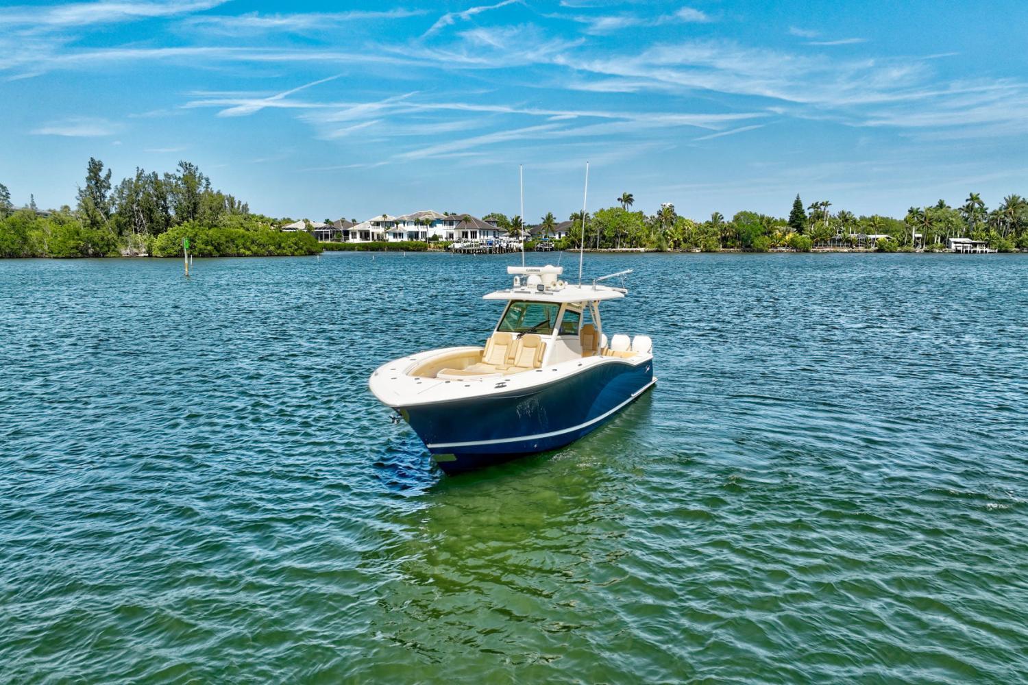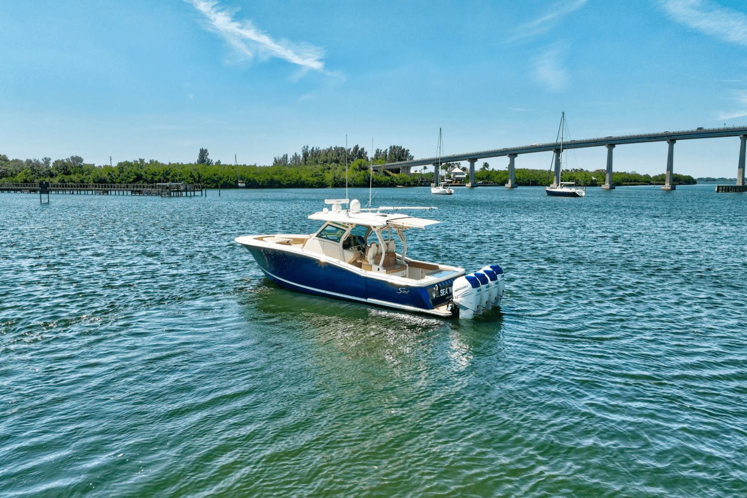 Introducing Sea Wolfe, the cleanest 380 LXF Scout in the market, equipped to the highest possible level. This vessel is sitting around 415 hours and is easy to see in Vero Beach FL. Please call Bryan McGlynn at 561-635-6811 for more information.Service & warranty history:Engines serviced in December 2024New upholestry September 2025 *** Bottom paint fall 2024Mercury platinum engine warranty until 10/2027 !!Brunswick extended warranty and navigation and accessory equipment until 6/2030 !!Some of her top features include:Quad 400 L6 Mercury’s with joystickSeakeeper 6 Gyro8Kw generator – new generator in 2022!!Custom engine accent painted panelsFull hull midnight blue gelcoatUpgraded 8616’s Garmin display’s (3)Garmin B175L / B175H transducerGMS Fantom 54 Radar- custom painted Scout whiteSpotlight – custom painted Scout whiteFlir M232 – custom painted Scout whiteXM stereo / weatherGOST Security systemDirecTV and Apple TV installedHeritage cushion packagePull out transom beach seatConvertible leaning post (includes Kenyon grill, sink & cutting board)Leaning post drawer refrigeratorLeaning post ice maker6 LED Lumishore underwater lightsCabin mounted cameraThru hull bow mounted cameraElectric sun shade integrated retractable aft awningHartop mounted spotlightSS bow hookGlendenning 50’ shore power cordProportional bow thrusterEngine flush kitHot water shower on deckPhendor pro clipsAdditional set of rod / cup holdersBow table & lounge filler cushionHydraulic Beach platform