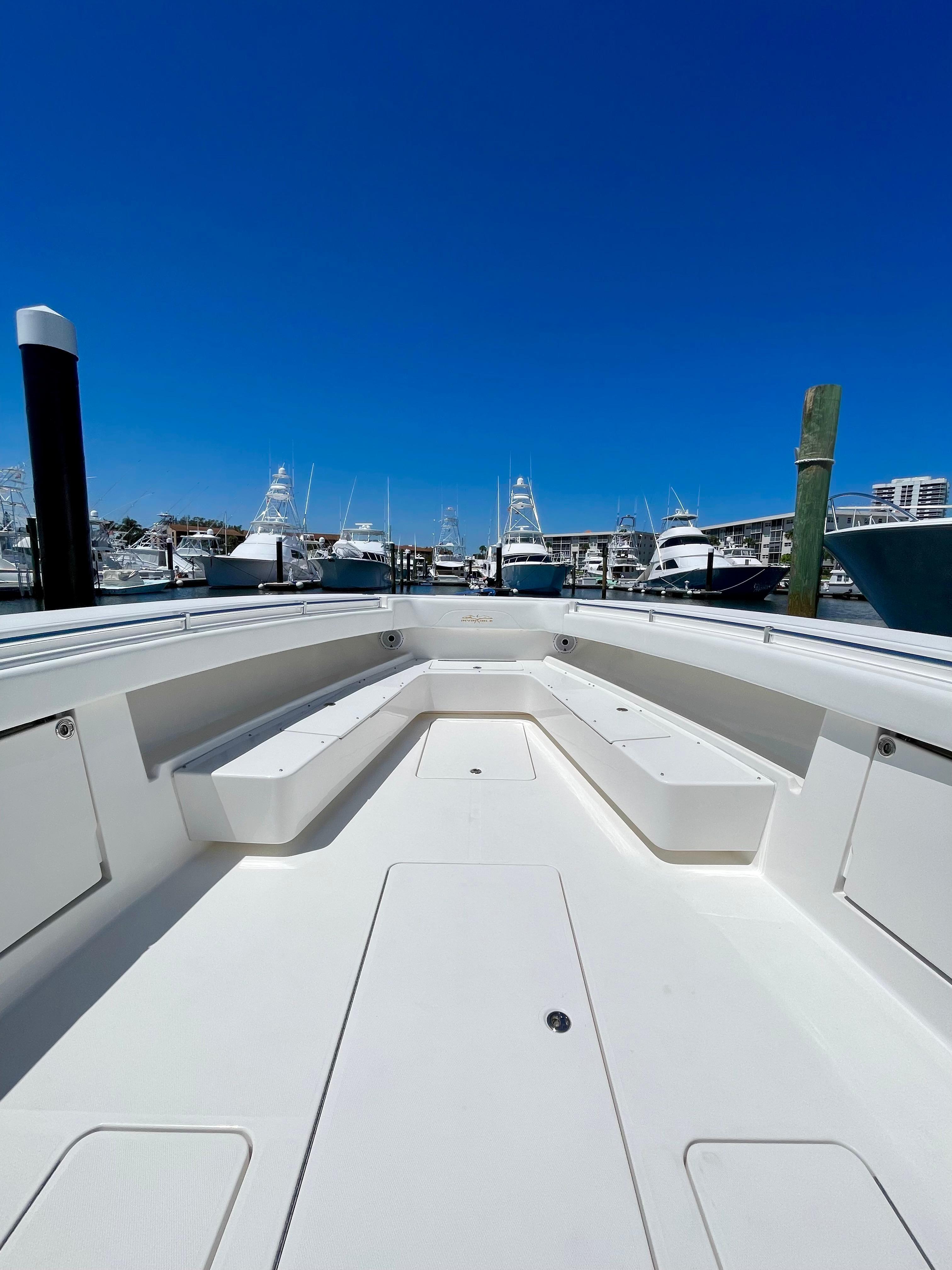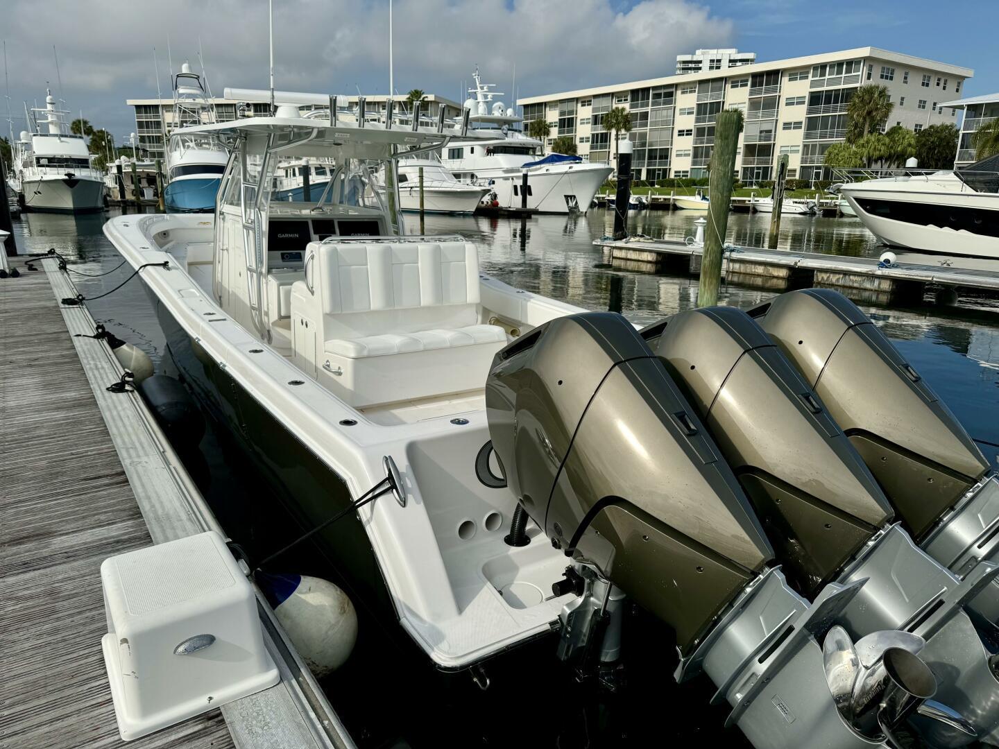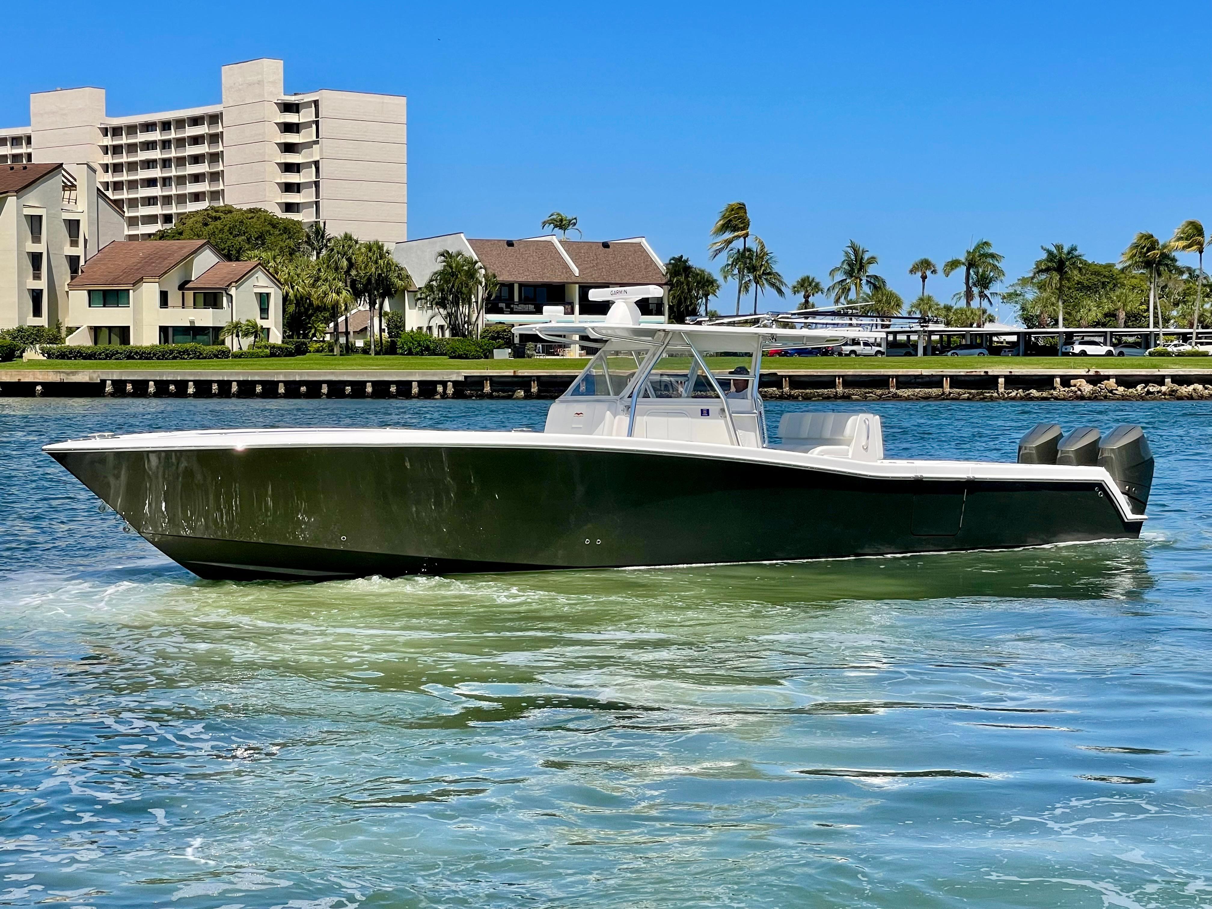 This 42' Invincible Open Fisherman is a one-owner vessel built with efficient and easy towing capabilities in mind. She received a complete update in 2024. Her purpose as a tender provides extra comfortable forward seating for the whole crew. She was custom painted with Awlgrip including matching engines. She boasts custom console storage and a full array of custom covers. 2024 updates include three V-10 400 Mercurys new softgoods throughout, and all new batteries, electronics, pumps, breaker panel and switch panel.