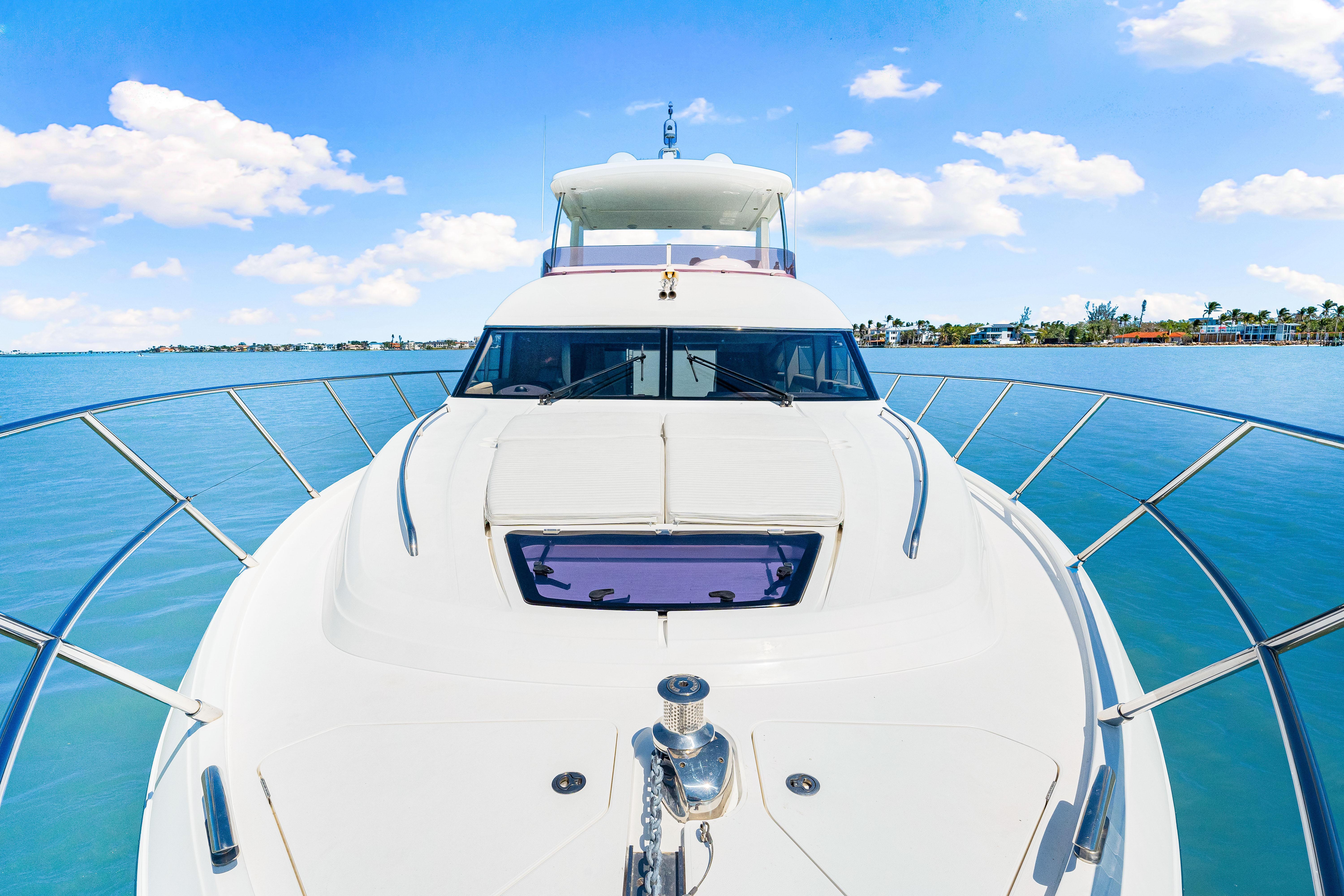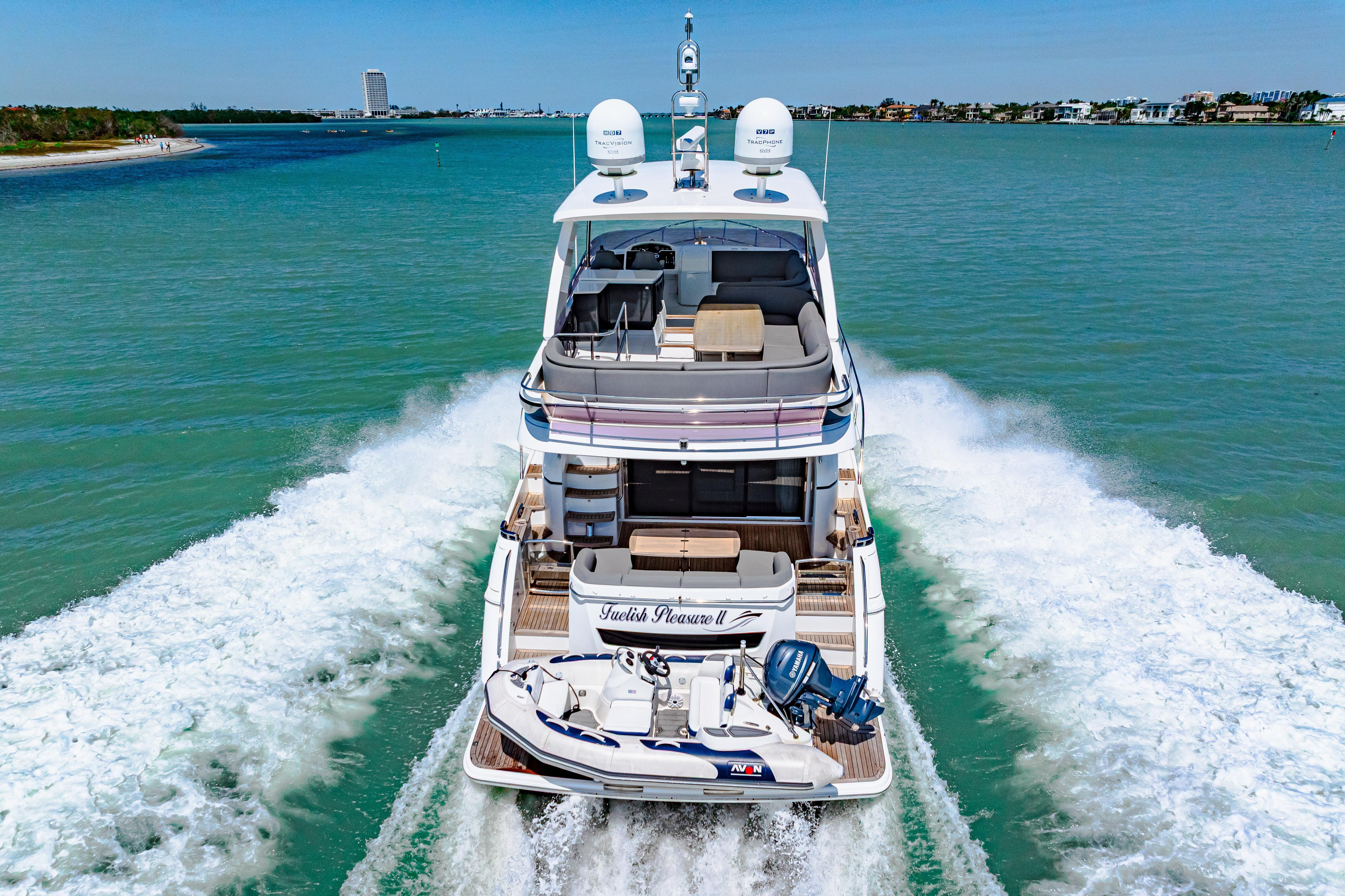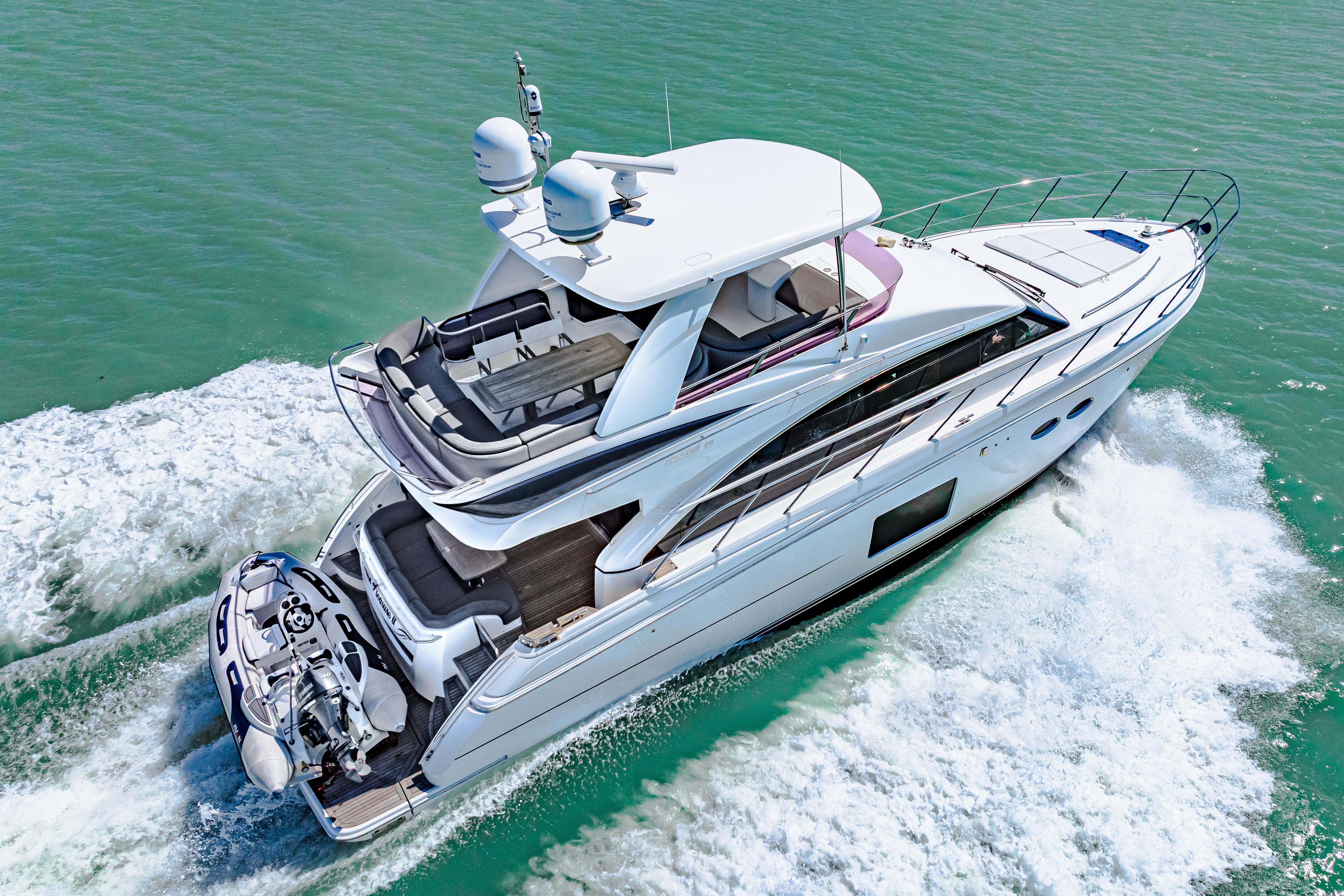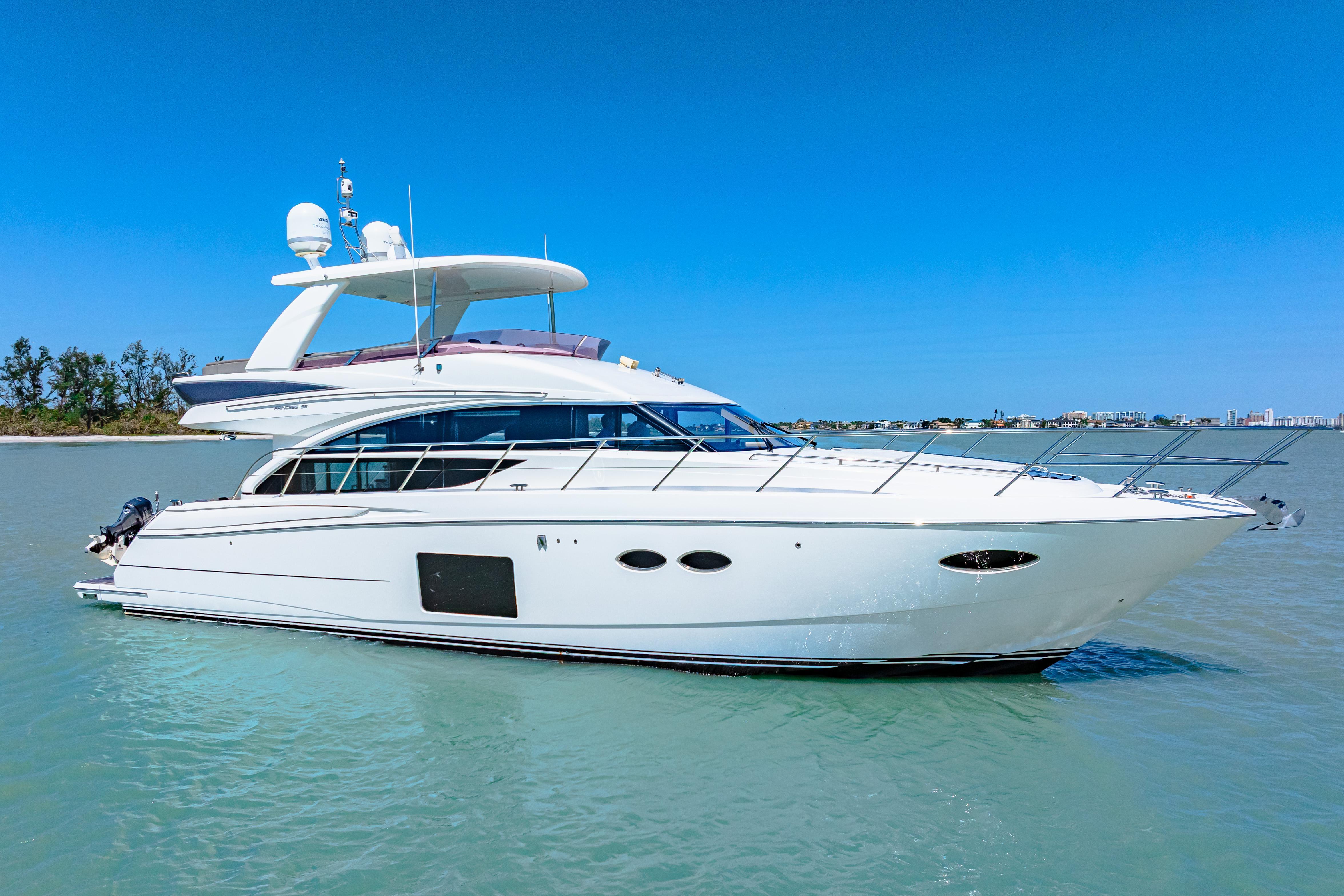 Fuelish Pleasure II is an excellent example of the Princess 56 Flybridge combining stellar performance and seakeeping with refined elegance one would expect from her English pedigree. She comes very well equipped and highly optioned with Seakeeper, Xenta Joystick integrated with bow and stern thrusters, upgraded MAN 800 HP engines, and much more. Please see full description for additional features and options. From the moment you step aboard her teak decking, luxurious space is a constant companion. The vast flybridge enjoys a convertible sunbed, twin helm seats, a wetbar, barbecue and ergonomic dining areas. This oasis of calm can then be propelled up to a top speed of 34 knots, and all with nimble composure. Magnificent refinement and performance in equal measure.The main deck helm position provides exceptionally comfortable cruising. The well-equipped galley is located just aft of the helm with a sociable dining area adjacent. Below deck, full-standing headroom adds to the spacious ambience throughout the three cabins and full beam master stateroom, affording your guests with the luxury of space for their time on board.1000 hour MAN service completed December 2024. Yacht Controller, Electrosea Clear Line System, water maker and many more custom features added.
