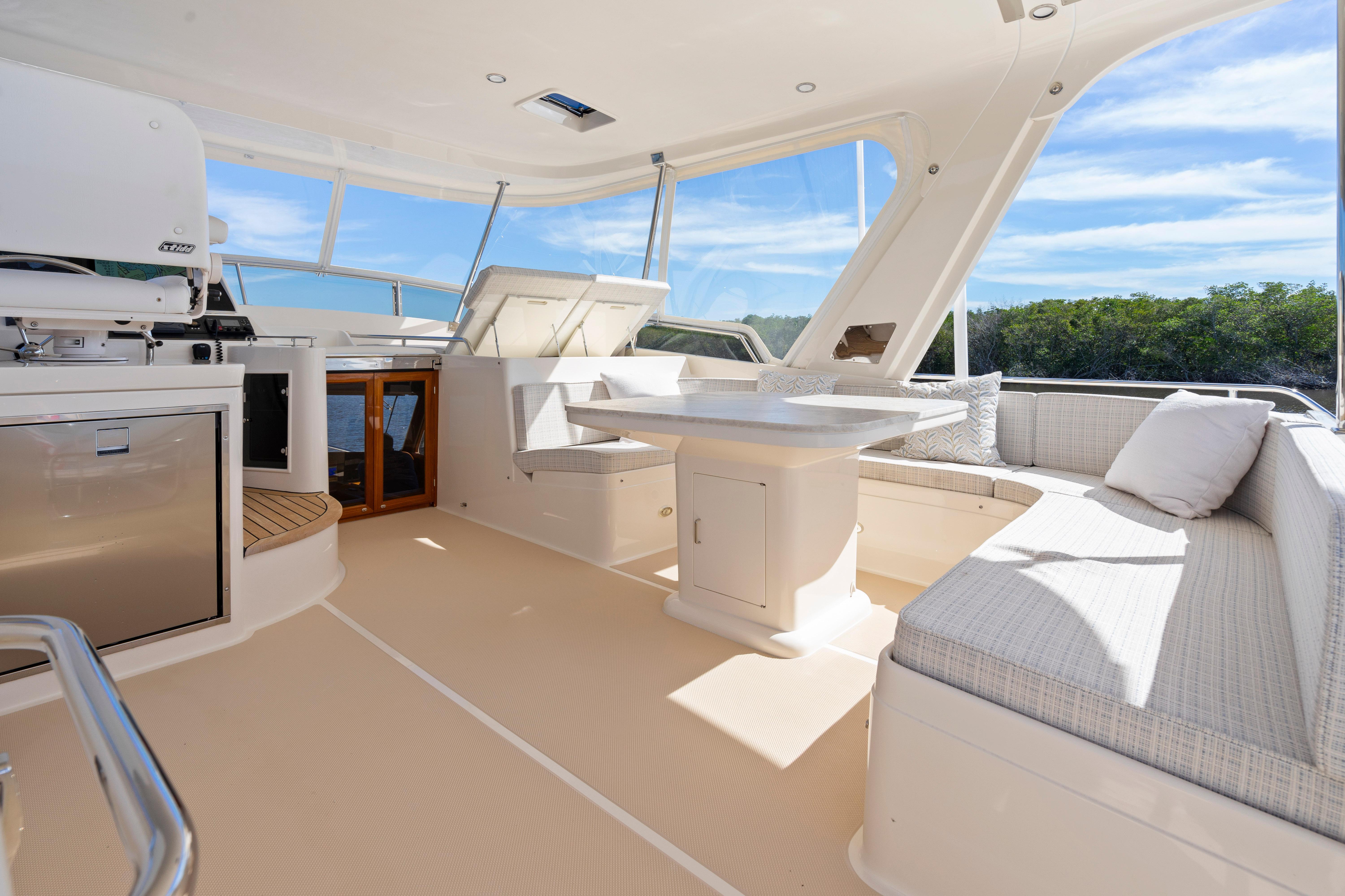 - Flybridge partial enclosure—forward of arch
