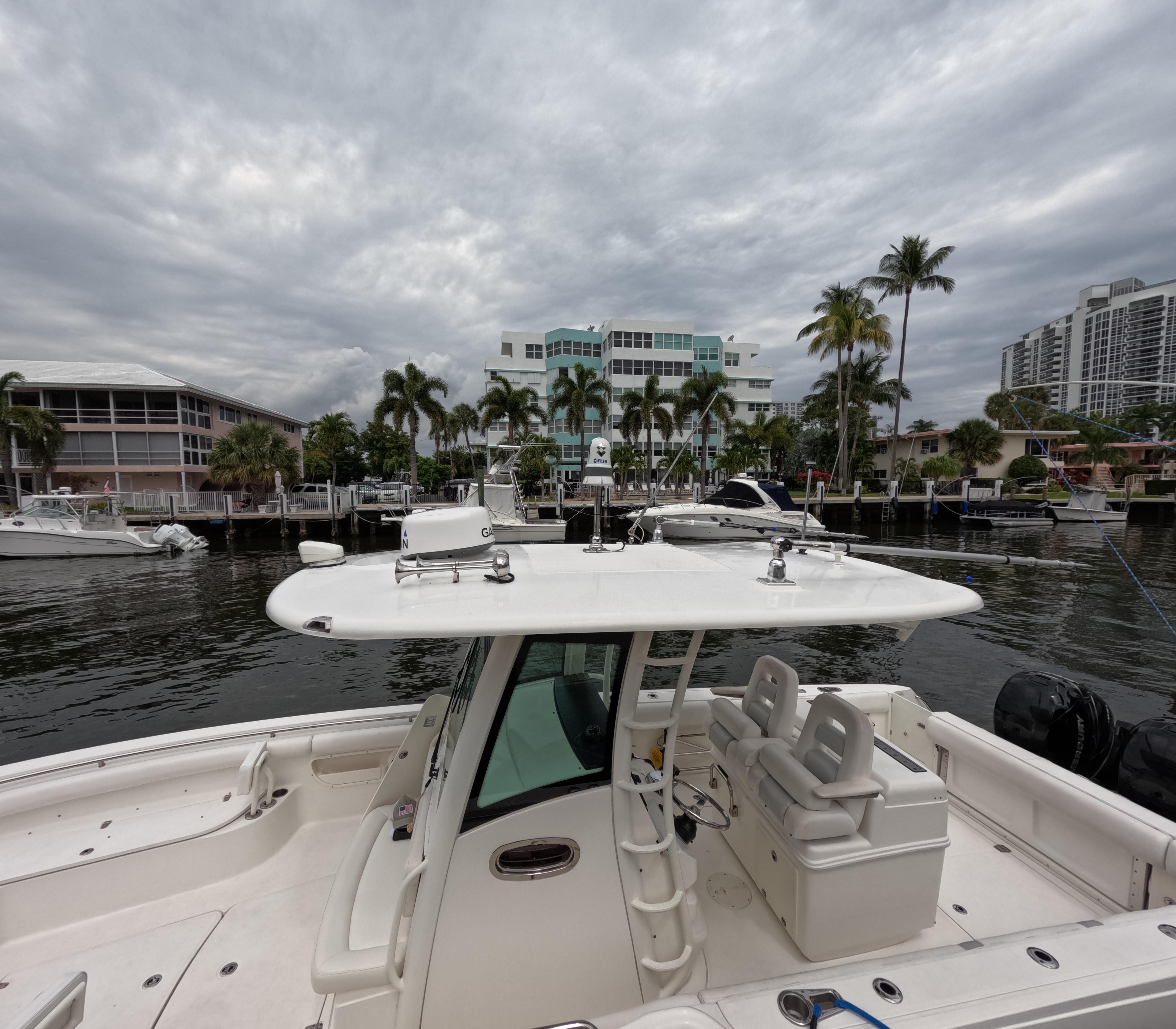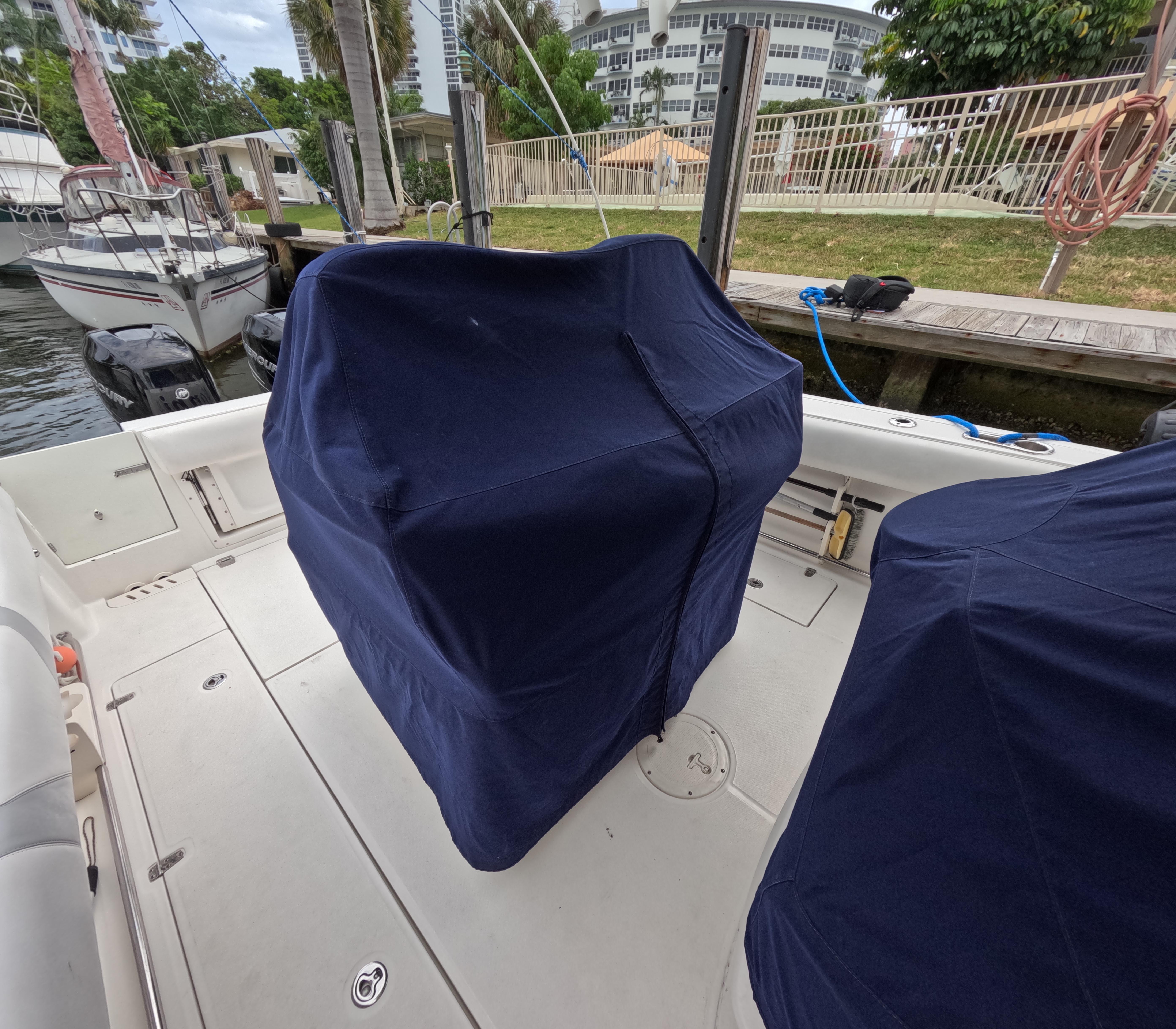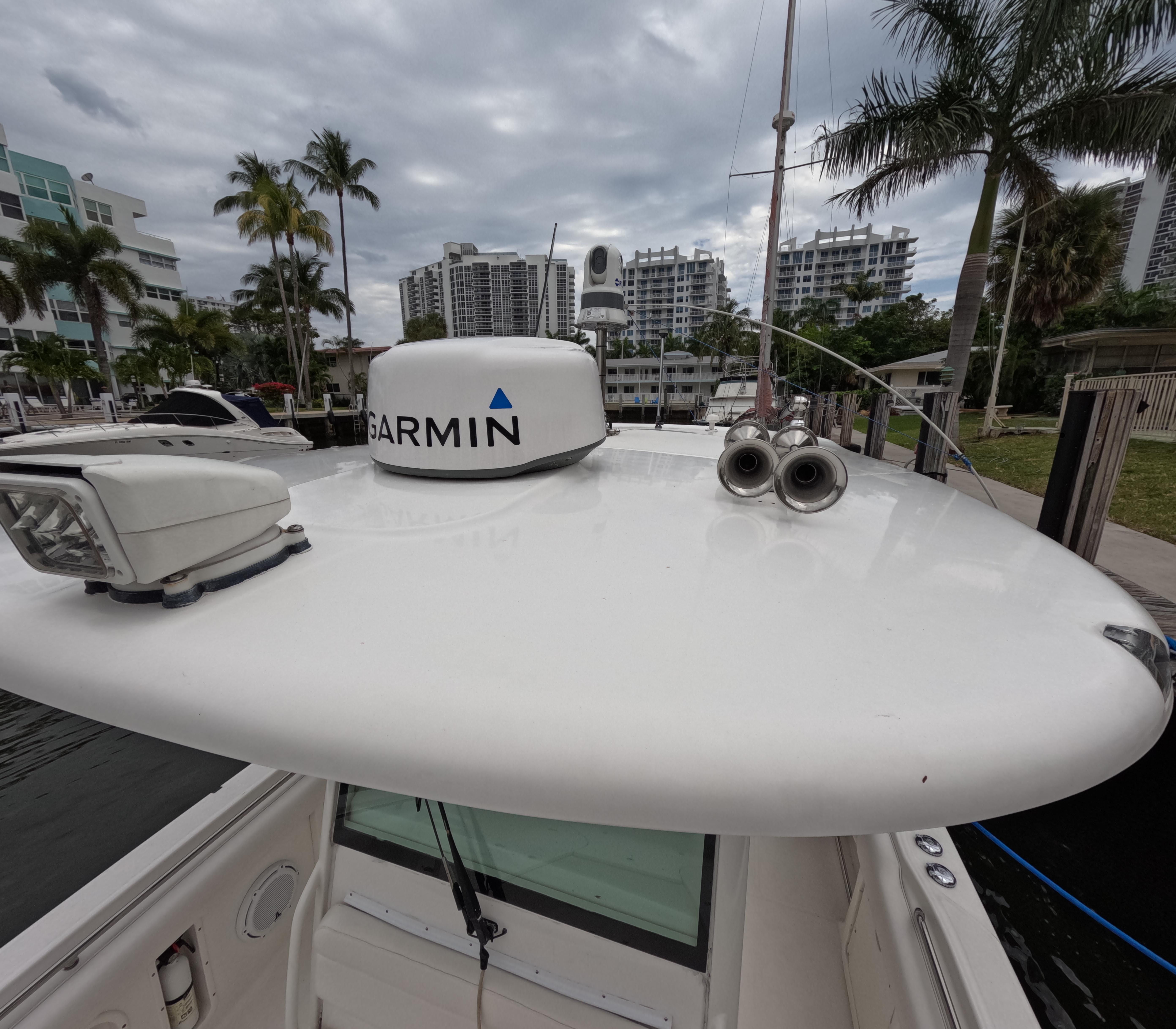 The roomy 320 Outrage, with wide walkways and an expansive cockpit, is both an admirable fish-fighting boat and provides generous entertainment. Premium fishing features include the deluxe leaning post with livewell, three in-floor fishboxes, and under-gunnel rod racks. The 320 Outrage boasts a design with bountiful storage, including lockable rod storage and a forward 80-gallon in-deck cooler for staying hydrated during longer offshore cruising. For maximum on-board pleasure, the optional Summer Kitchen provides an electric grill, freshwater sink, cutting board, additional drawers and storage, and a pull-out refrigerator and freezer. Fish, cruise or do both; the 320 Outrage is up to the task.A Snowbird boat which comes south for the winter and returns home to her New Hampshire lake from May to October. Her meticulous owner wants it perfect and abides to a strict maintenance schedule from the engines to the smallest hinge. Recently installed a new Garmin Electronics package and FLIR Nighttime Camera System. She is being sold with her Rock & Roll Trio Axle Trailer which has never been in saltwater. All of the options including electro-hydraulic brakes system, Diamond Plate Stainless Steel fenders, her own dedicated battery and "E" rated tires. Nothing but the best for this entire package. Owner is not interested in splitting the package.