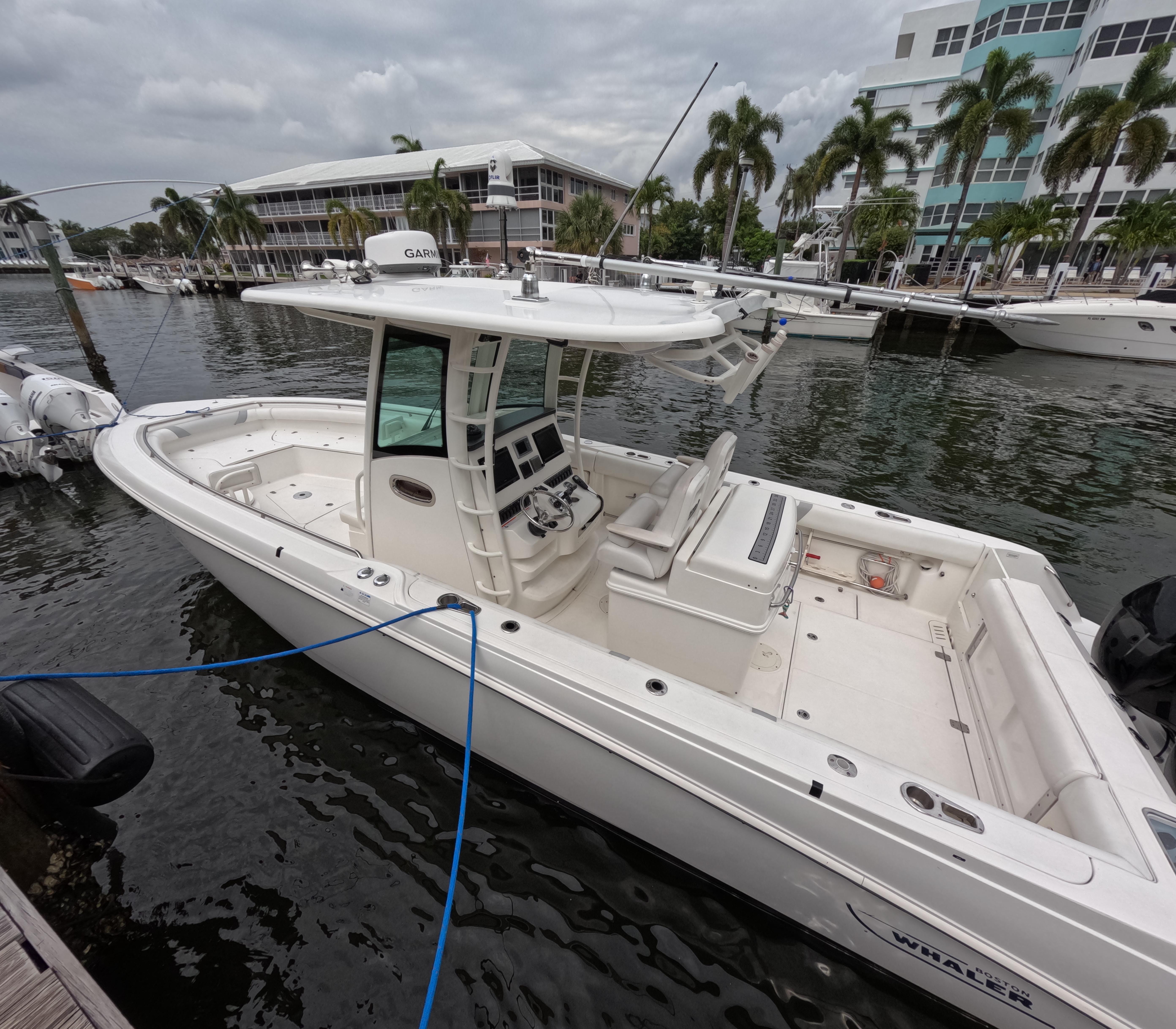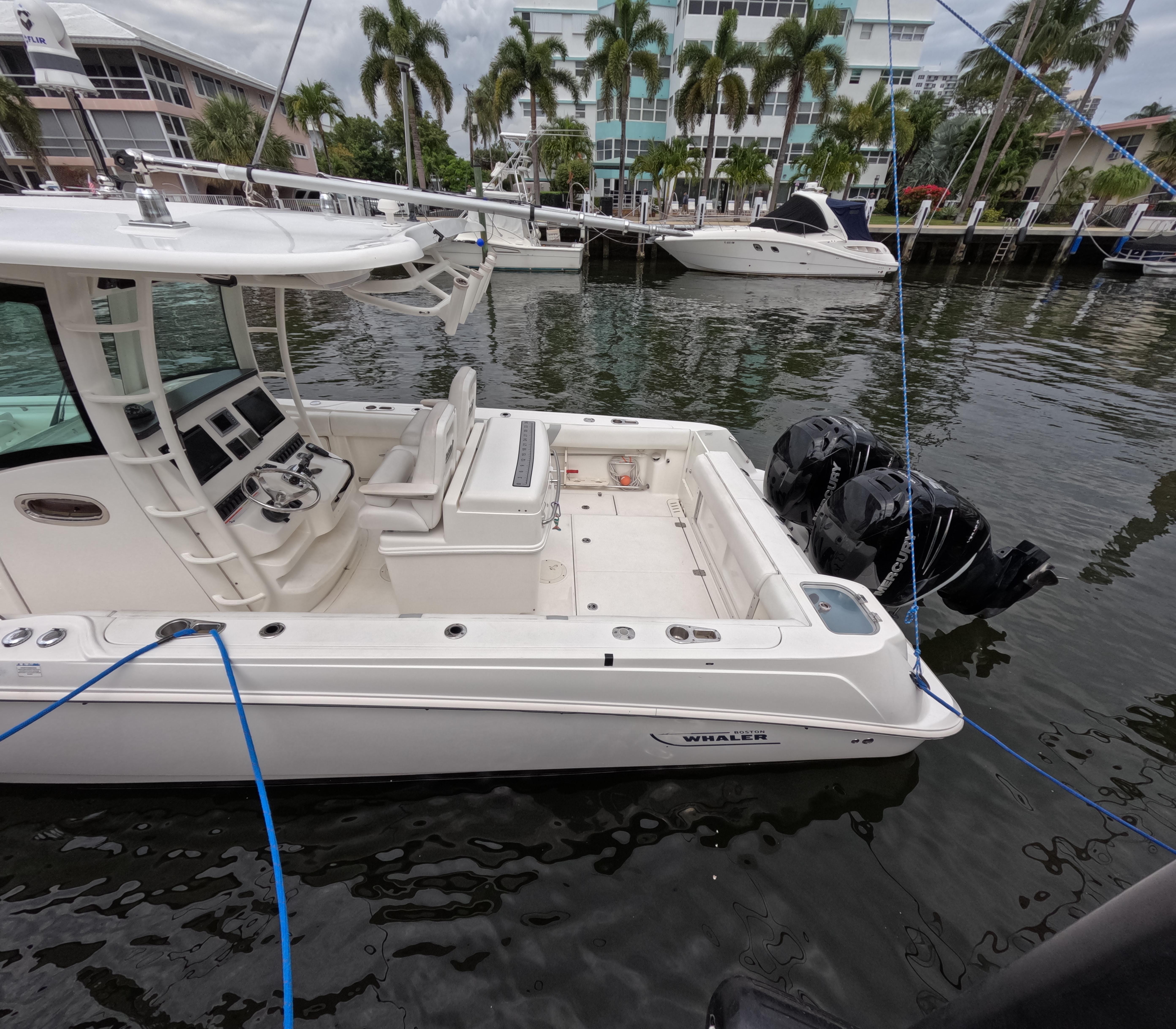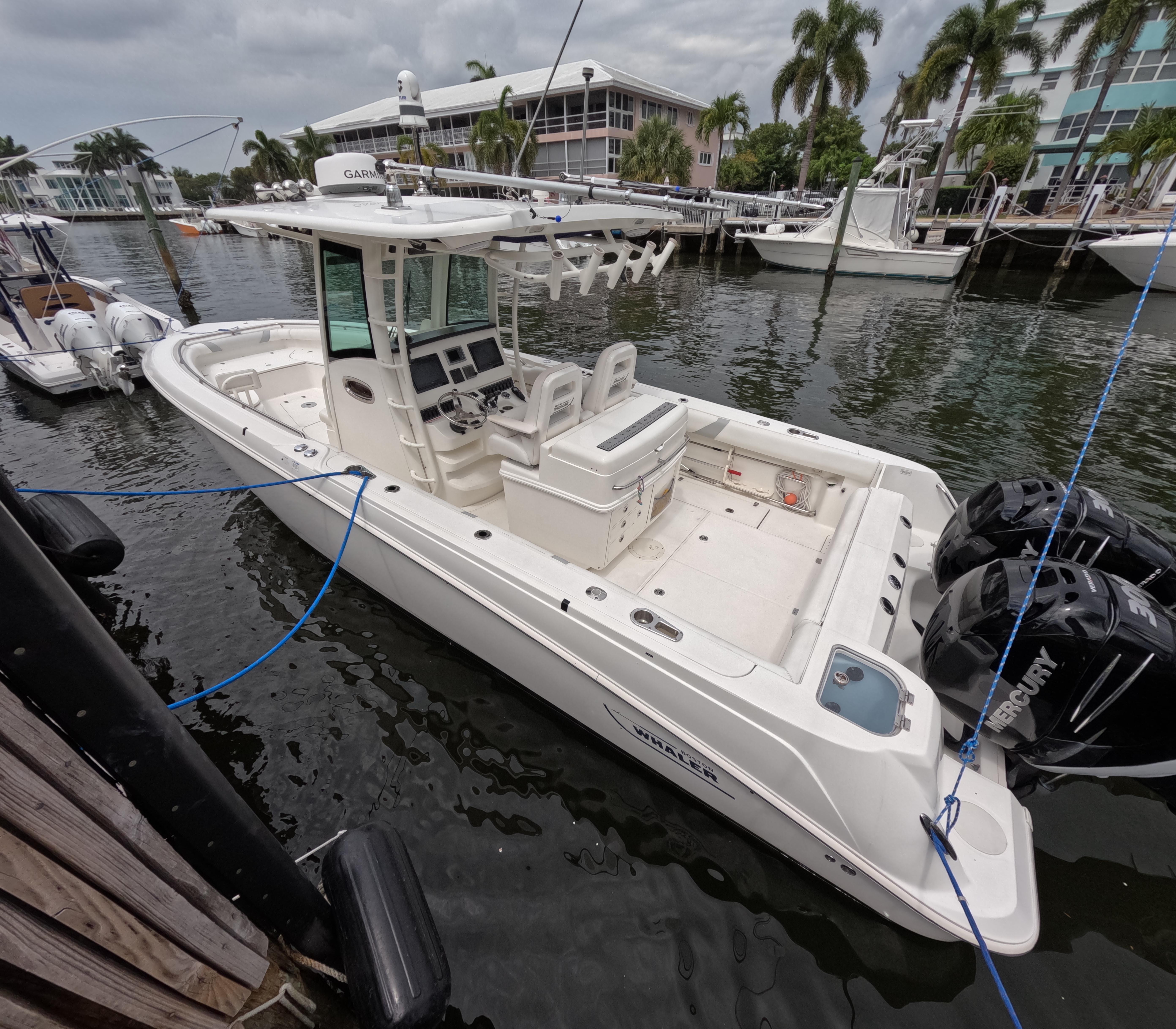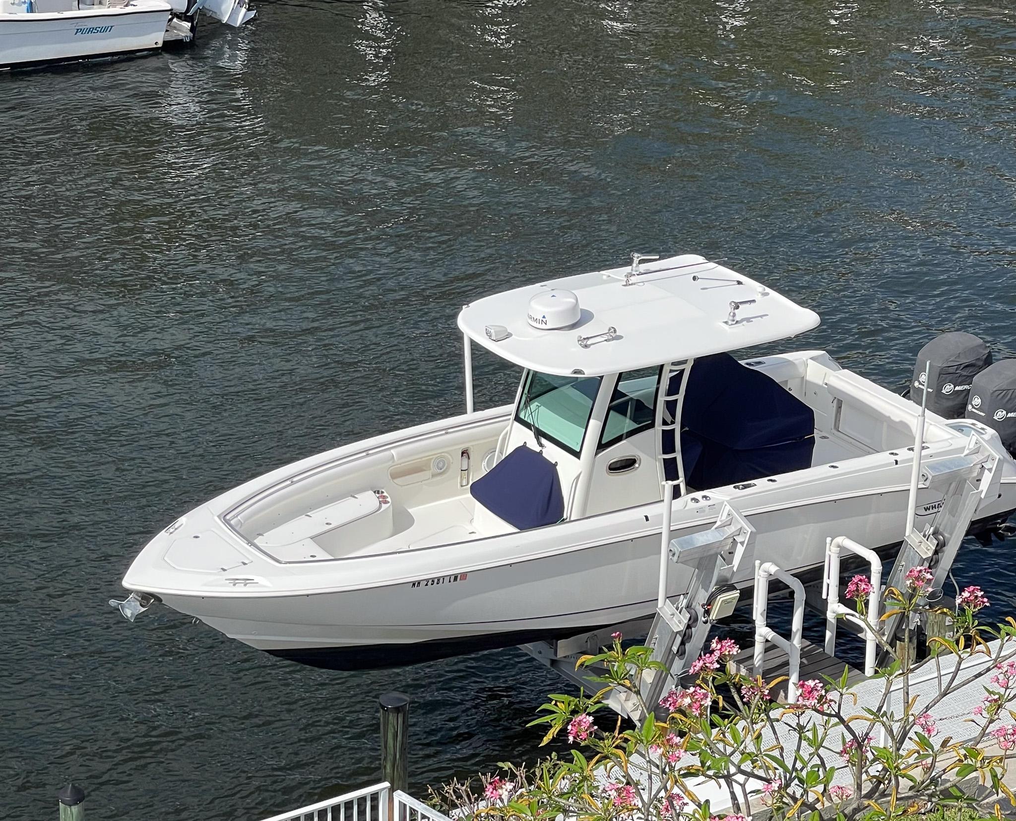 The roomy 320 Outrage, with wide walkways and an expansive cockpit, is both an admirable fish-fighting boat and provides generous entertainment. Premium fishing features include the deluxe leaning post with livewell, three in-floor fishboxes, and under-gunnel rod racks. The 320 Outrage boasts a design with bountiful storage, including lockable rod storage and a forward 80-gallon in-deck cooler for staying hydrated during longer offshore cruising. For maximum on-board pleasure, the optional Summer Kitchen provides an electric grill, freshwater sink, cutting board, additional drawers and storage, and a pull-out refrigerator and freezer. Fish, cruise or do both; the 320 Outrage is up to the task.A Snowbird boat which comes south for the winter and returns home to her New Hampshire lake from May to October. Her meticulous owner wants it perfect and abides to a strict maintenance schedule from the engines to the smallest hinge. Recently installed a new Garmin Electronics package and FLIR Nighttime Camera System. She is being sold with her Rock & Roll Trio Axle Trailer which has never been in saltwater. All of the options including electro-hydraulic brakes system, Diamond Plate Stainless Steel fenders, her own dedicated battery and "E" rated tires. Nothing but the best for this entire package. Owner is not interested in splitting the package.