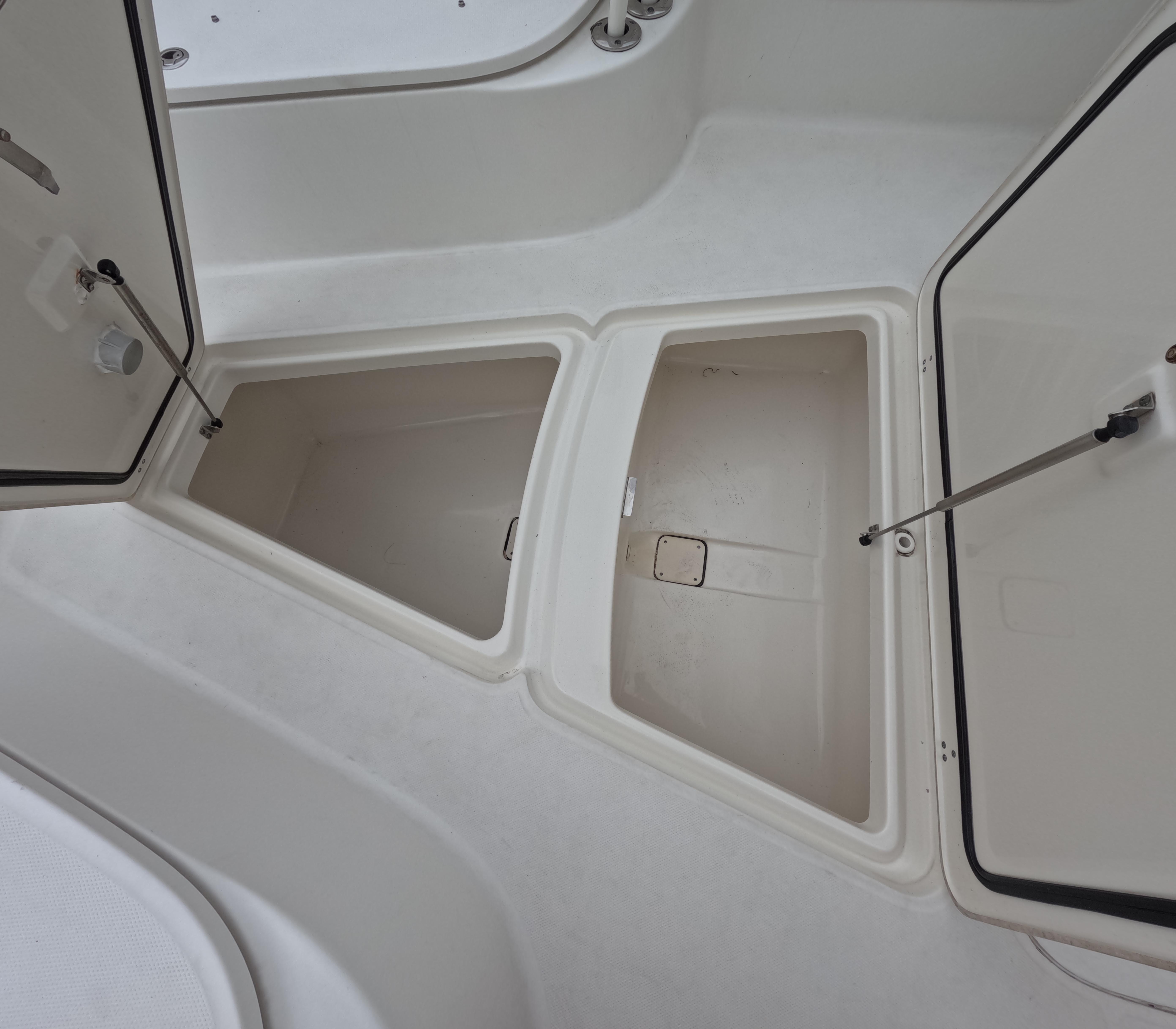 - Insulated in-floor fishboxes with pump-out - (2) aft at 80 gal each, (1) forward at 108 gal