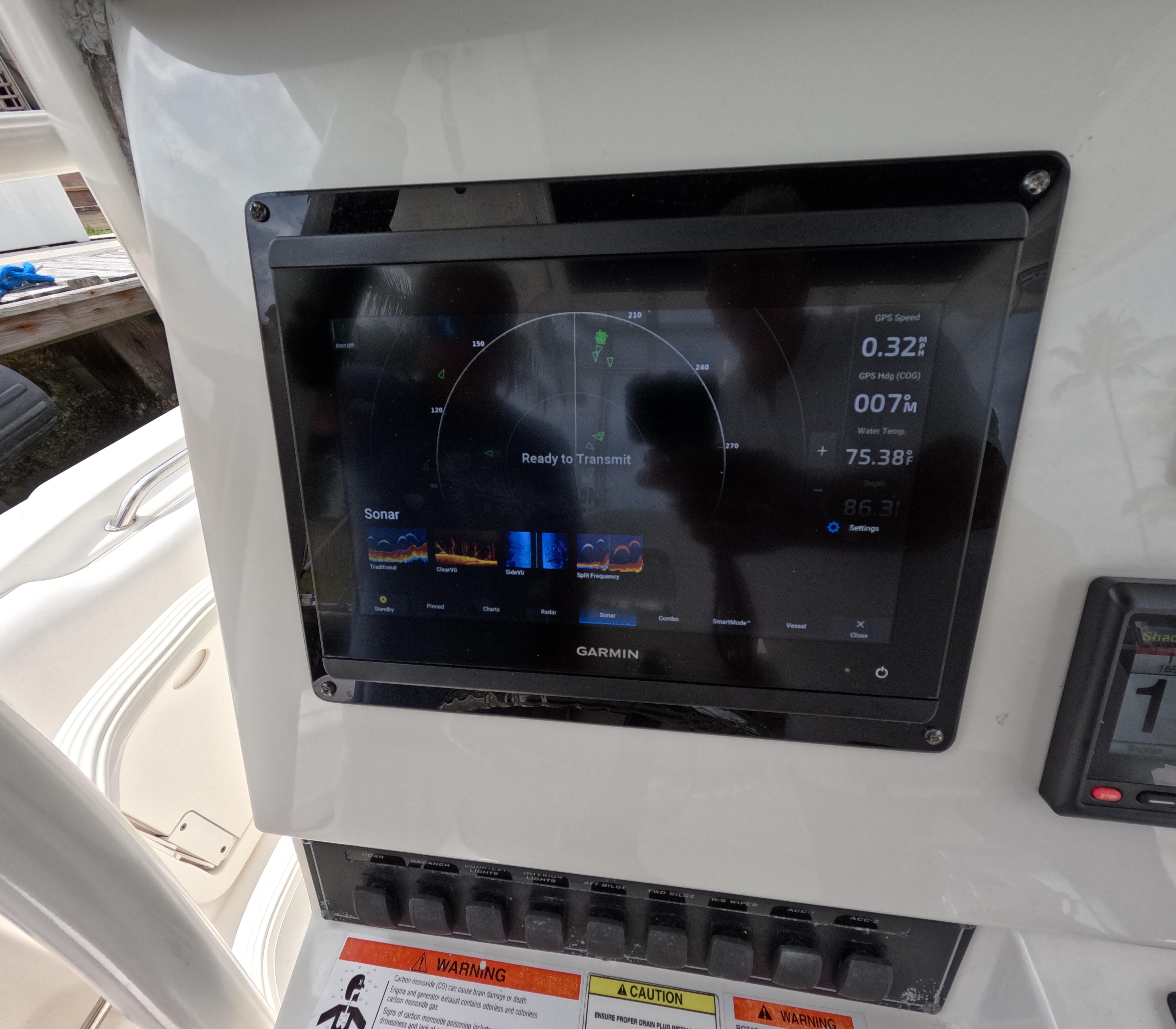 - Freshwater system with 40 gal tank, sink in console, transom shower, prep station and anchor washdown