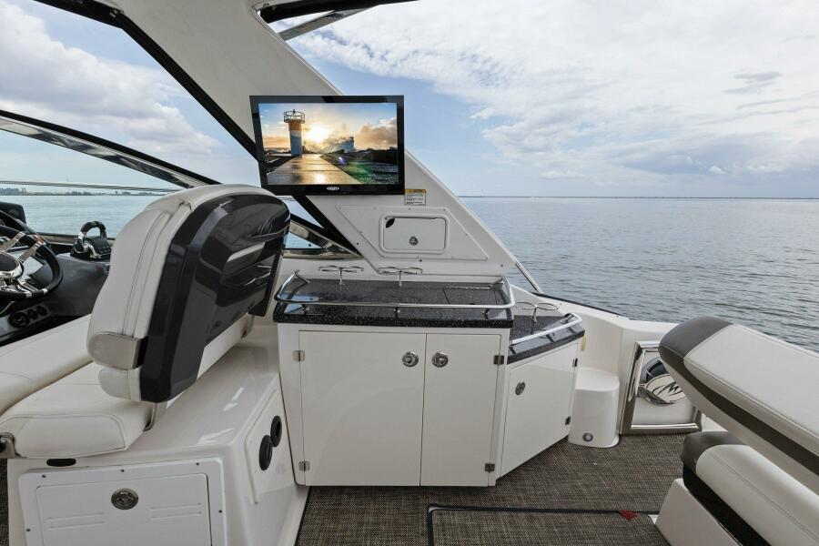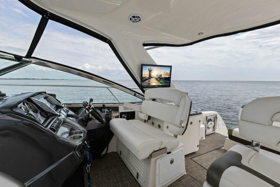 2013 40 Monterey 400 Sport Yacht "Favorite Mistake" for sale. Pods fully serviced, brand new pod seals March 2025. This 2013 400 Monterey Sport Yacht is priced to sell and is in great shape! She just had a full detail and is ready for the next owner. Her twin Volvo IPS500 are running perfectly and holding 185deg at WOT. We also have recent oil samples showing no issues with the pods! The Layout on the 400 Sport Yacht is the perfect Express Cruisers! Abundant seating and a great convertible sunlounge in the cockpit! It also has a full enclosure and Cockpit AC! The Salon head room is 6’8” making a live large cabin comfortable for extended stays. The forward berth is very wide and comfortable for 2!The aft stateroom is comfortable as well and has its own head! This Monterey features a Black Hull with Silver accents on the hard top to give it a very nice look! Matched with its great performance, this is a fantastic boat for the money! Call to schedule your private showing today! The boat is easily seen at our St Petersburg location.Full engine service and bottom job completed June 2024.