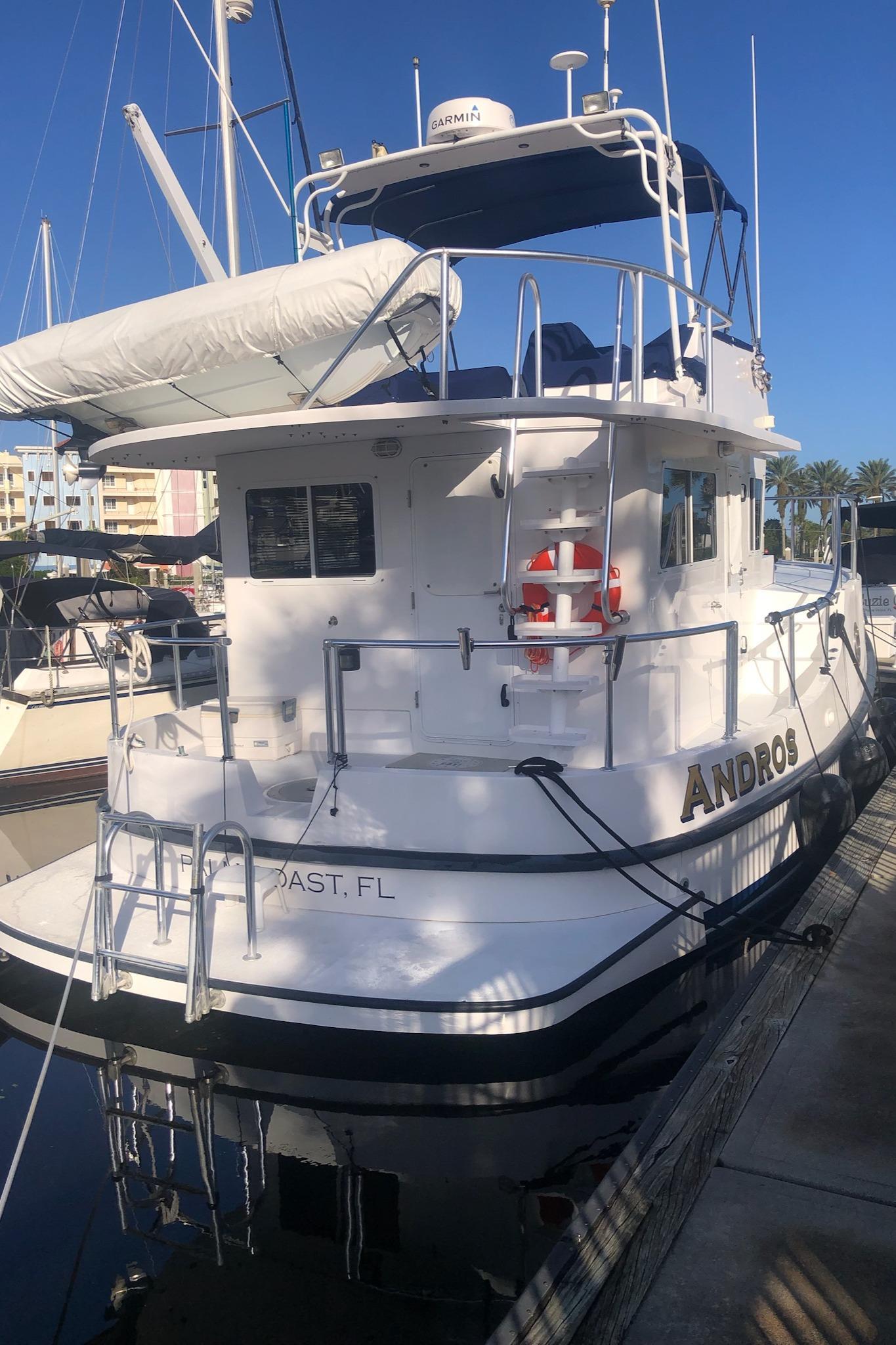 Lone Star (named such as of November of 2024 but still showing decals of "Andros") is available for purchase now, currently located in Jacksonville, Florida, and can be seen by appointment; she is ready to cruise immediately!!A walk through video of this vessel, courtesy of Garnock Reviews, can be found on YouTube (direct links cannot be made from this platform so you will have to use your web browser to view the video on YouTube if you search Garnock Reviews Great Harbour Trawlers)Lone Star is an N37 built by Mirage Manufacturing in Gainesville Florida. She Is Hull #17 of the N37 series (Hull #54 overall) and has been very well cared for. The Great Harbour N37 is one of the most versatile and most sought after trawlers on the market today. It is known as a “do anything” vessel with a cult following for the ruggedness and extreme ease of maintenance the N37 exhibits.The engine room on the N37 is recognized as the best on any vessel of its size. It provides standing headroom at a workbench and facilitates complete 360-degree access around each engine. Lone Star is equipped with TWIN Yanmar 54 hp engines that typically have a service life of over 10,000 hours. The boat is equipped with a fuel polishing system and oil changing system that handles both propulsion engines and the 8 kw genset.Lone Star has recently updated electronics, a bowthruster, a Fireboy engine room fire suppression system, and twin Victron 3kW inverters.Lone Star is fitted with a flybridge that incorporates full controls and navigational equipment including bow thruster controls, Garmin Auto-Pilot, and a Garmin Chartplotter. The flybridge can comfortably seat nine and has been recently re-upholstered to make this a beautiful social area.The galley in Lone Star has a full-size refrigerator, four burner electric cooktop, and a new microwave/convection oven.Moving forward from the galley is head with spacious shower and separate electric flush toilet, vanity sink and medicine chest with mirror. The head also incorporates a stainless steel opening port, which is one of six on the boat.Forward of the head is the master suite. A full 60" by 80" Island queen berth is set on centerline, flanked by large storage areas that are a combination of hanging lockers and drawers. At the foot of the queen there are also four huge drawers for clothing storage.Across from the Galley to port is the guest stateroom. This cabin has convertible day, bench settee, that converts to a comfortable full-size berth for two with plenty of storage space.The Master, Guest Stateroom, Galley, and head are all on the same level with no steps. A short five steps up from the lower living area is the saloon with the helm station, navigator's bench and large wrap-around settee with folding table, set opposing a starboard-side settee.The outside areas of the N37 are famous for their protected walkways and super-secure on-deck areas. Access to the dual anchor pulpit in the worst of conditions is confidence-inspiring and safe, thanks to the waist-height rails that wrap around the entire deck. The deck is designed to take any amount of water and quickly drain with no constraints.Lone Star is ready to head out today on any adventure you can imagine!“Lone Star”Formerly “Andros” 2008 N37(now referred to as N40FB by the manufacturer), hull #54, flybridge model with distinctive cherry wood interior. Air Draft: 20’ with antennas down, reduced to 14' with the bimini and radar arch loweredFuel: 500 gallons DieselWater: 300 gallons (150 X 2)Blackwater: 100 gallons • Factory guest cabin cabinetry and shelving added throughout• Lazarette sealed and partitioned for safe storage• Shelves and bin storage system installed in the bosun’s locker• Raritan Elegance sanitation line partially replaced with hard PVC• Built-in Craftsman tool chest below workbench in engine room• Tool chest mounted on workbench in engine room• Exhaust temperature alarms added• Removeable filet/grill table fits atop swim ladder10/2021 haul out with bottom paint, zincs, and cutlass bearings. New zincs 8/24. PSS Dripless Shaft Seals (New 4/23) Engines: Yanmar 4JH4E 54 hp Stbd – 3,297.5 hrs Port -3298.5 hrsGenset: MP8M MasPower 8kW 740 hrs New backend rebuilt 2024 Electronics:Garmin GPS Map 8616xsv multifunction w/built in Chirp Sonar (New 2/23)Garmin GPS Map 8612xsv multifunction (New 2/23)Garmin 24” Fantom Radar (New 2/23)Garmin P79 Shoot thru the Hull Transducer 600 watt (New 2/23)Garmin 215 VHF w/AIS Receiver Lower Helm (New 2/23)New Custom Dash Panel for main helm (New 2/23)Garmin Reactor Auto Pilot w/Remote Hand Held Controller (New 5/24)iCom IC-422 VHF (upper helm)Cobra HH600 hand-held VHF w/DSC GPSVictron BMV 712 smart battery Bluetooth monitor (house battery and gen-set battery)Victron Smart Battery Sense Bluetooth battery monitor (windlass/bow thruster battery) Entertainment:Sony DSX-M80 Bluetooth Stereo lower helm (New 2/23)Boston Acoustics speakers (4) in saloonToshiba smart TV with Bose sound bar in saloonToshiba TV in master stateroomGlomex digital TV antennaSony DSX-M80 bluetooth stereo upper helmPoly-Planar marine speakers (4) upper helm Electrical:House / Start battery – (8) Northstar NSB210FT-Blue+ (2021) 1700 amp-hoursGenerator battery – (1) 12v AGM (New 2/24)Victron Energy Blue Power Multi-Plus 3000W Inverters/Chargers (2) (2020)Sterling Power Pro Charge Ultra 12V/60 ampBalmar 6-Series (60-100-SR-IG) 100-amp chargersBalmar MC-614 external regulators w/centerfielder II twin engine charge balancerBow thruster/windlass battery – (4) 6v US AGM 200 GCs (2022)Promariner 12v/20amp dual charger (bow thruster/windlass) (2022)Engine Room:5 Racor filters – engines (2 each), gen-set (1)FBO-10 fuel polishing system (Filter replaced 11/23)Oil Change systemSS Water heaterSea Chest for all through-hulls in addition Raw Water Strainers were added for both ME’s, Genset and A/C pump on (3/24) Vacuflush System was replaced with a Raritan Elegance Electric Head (