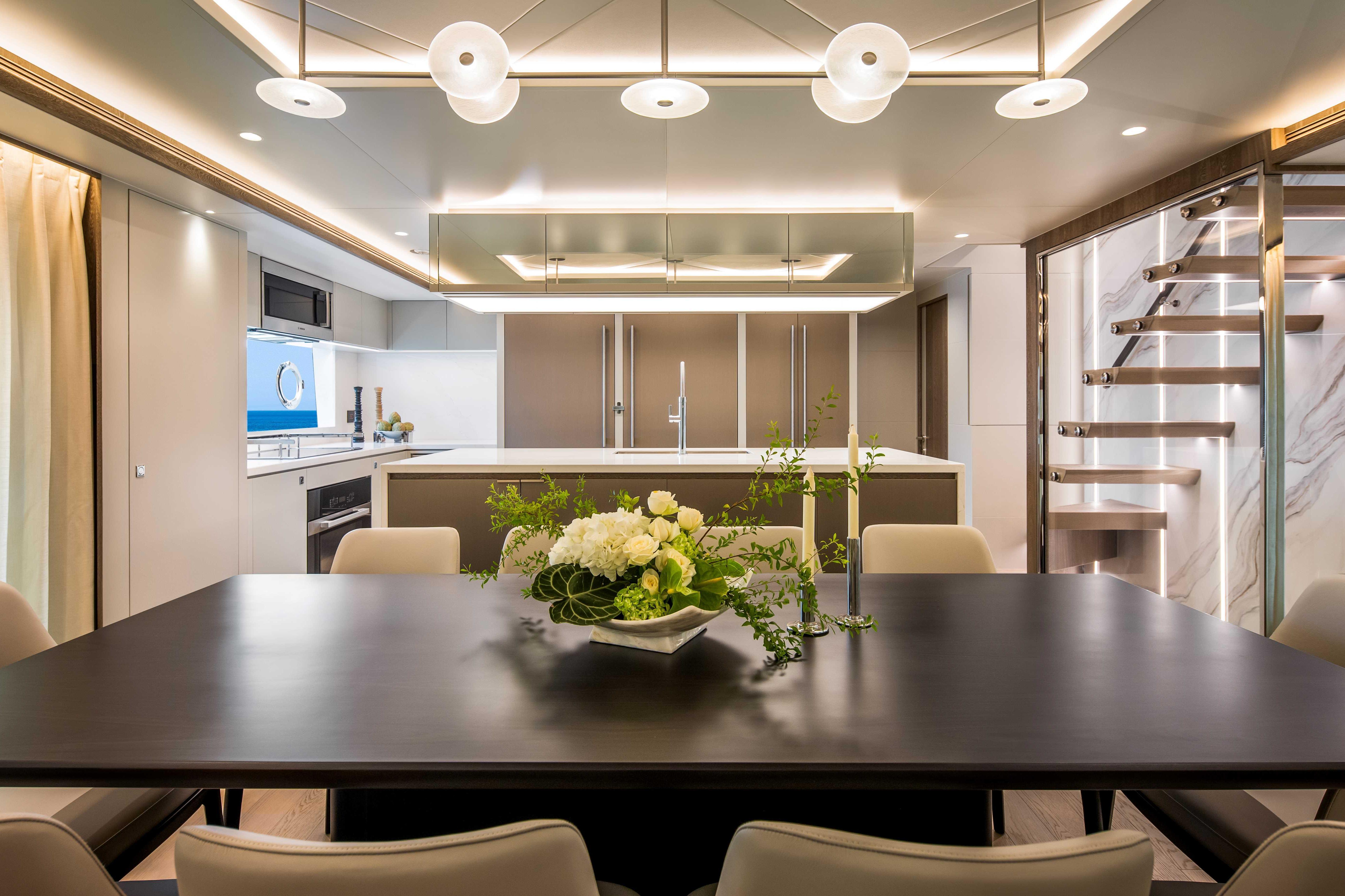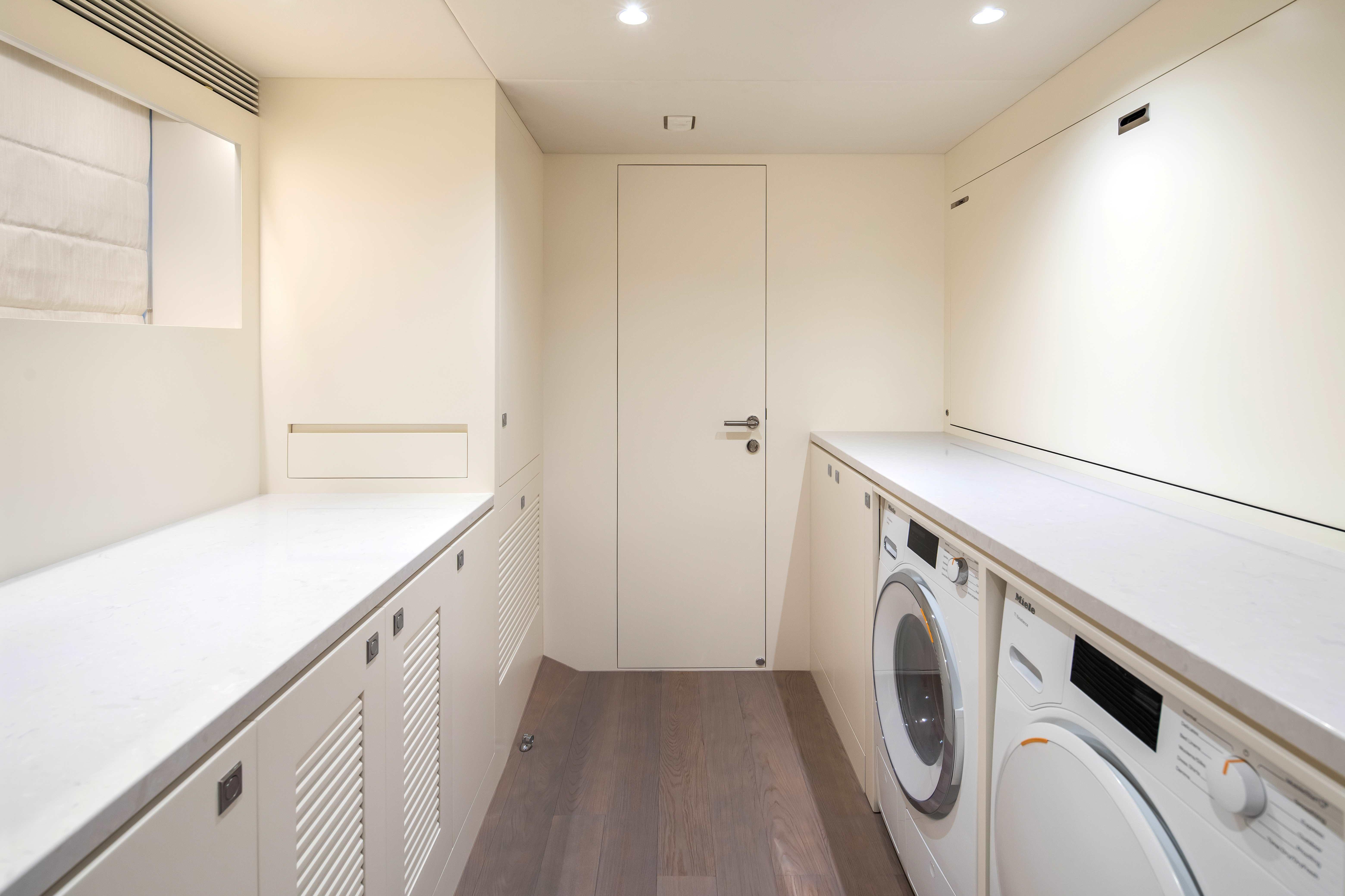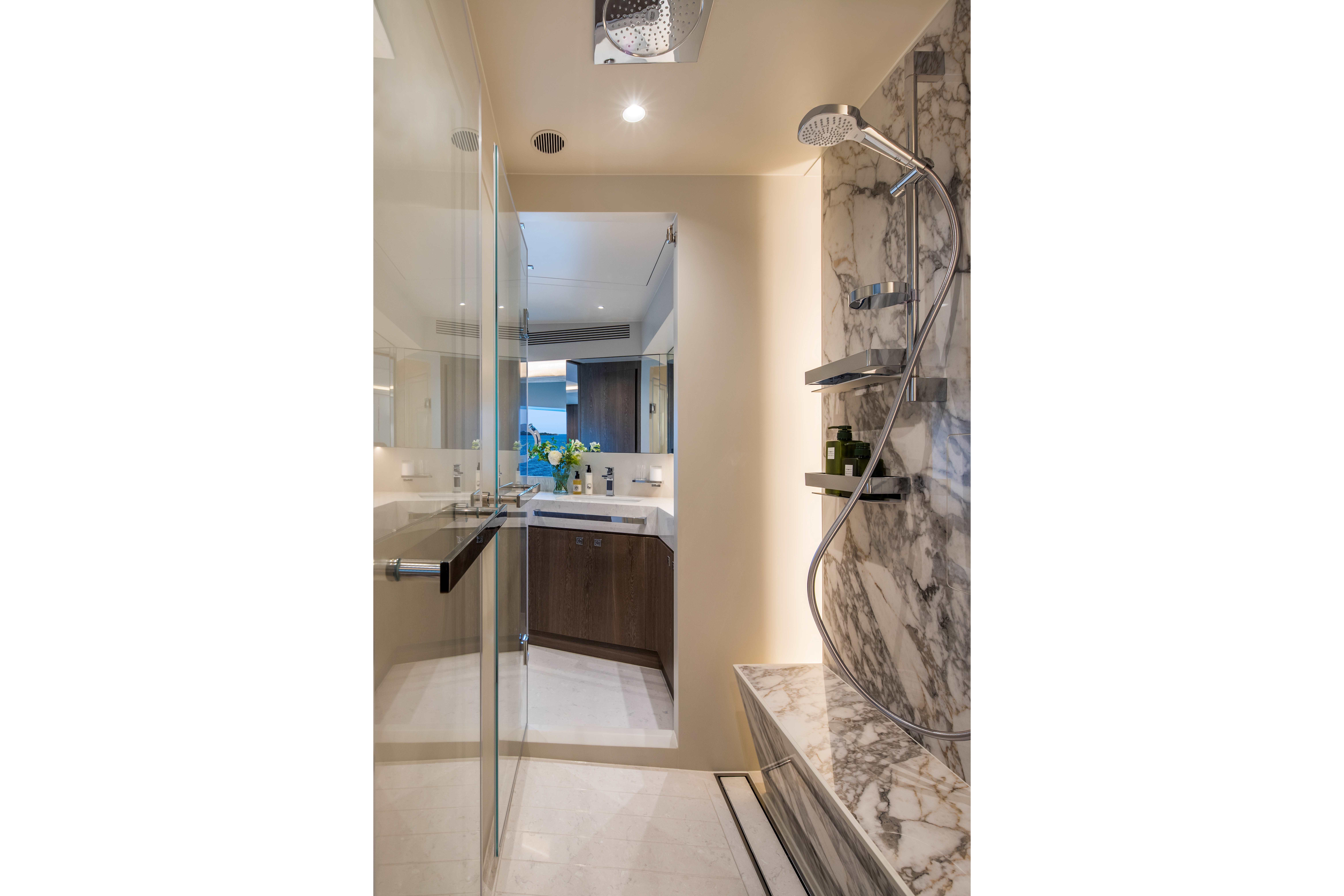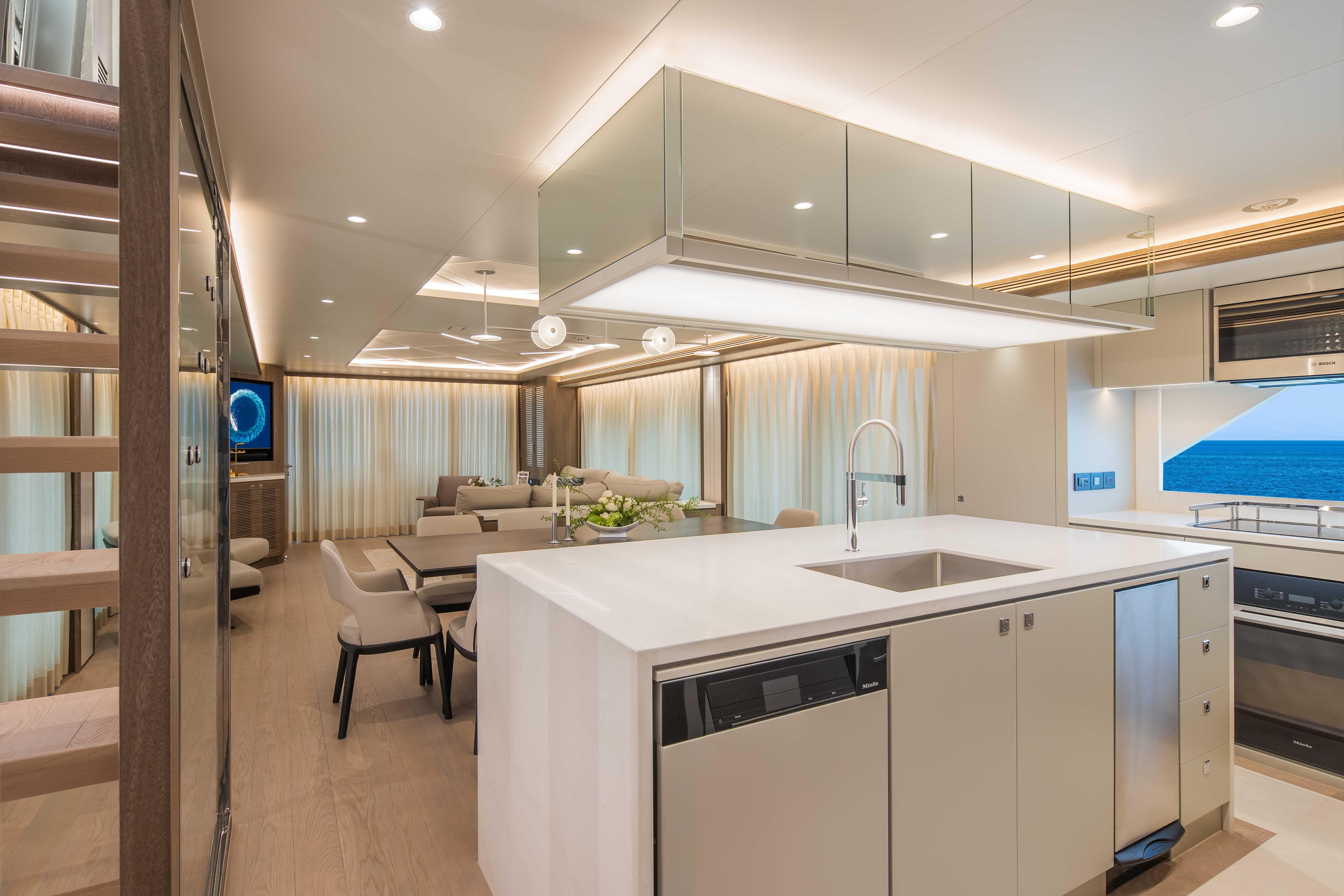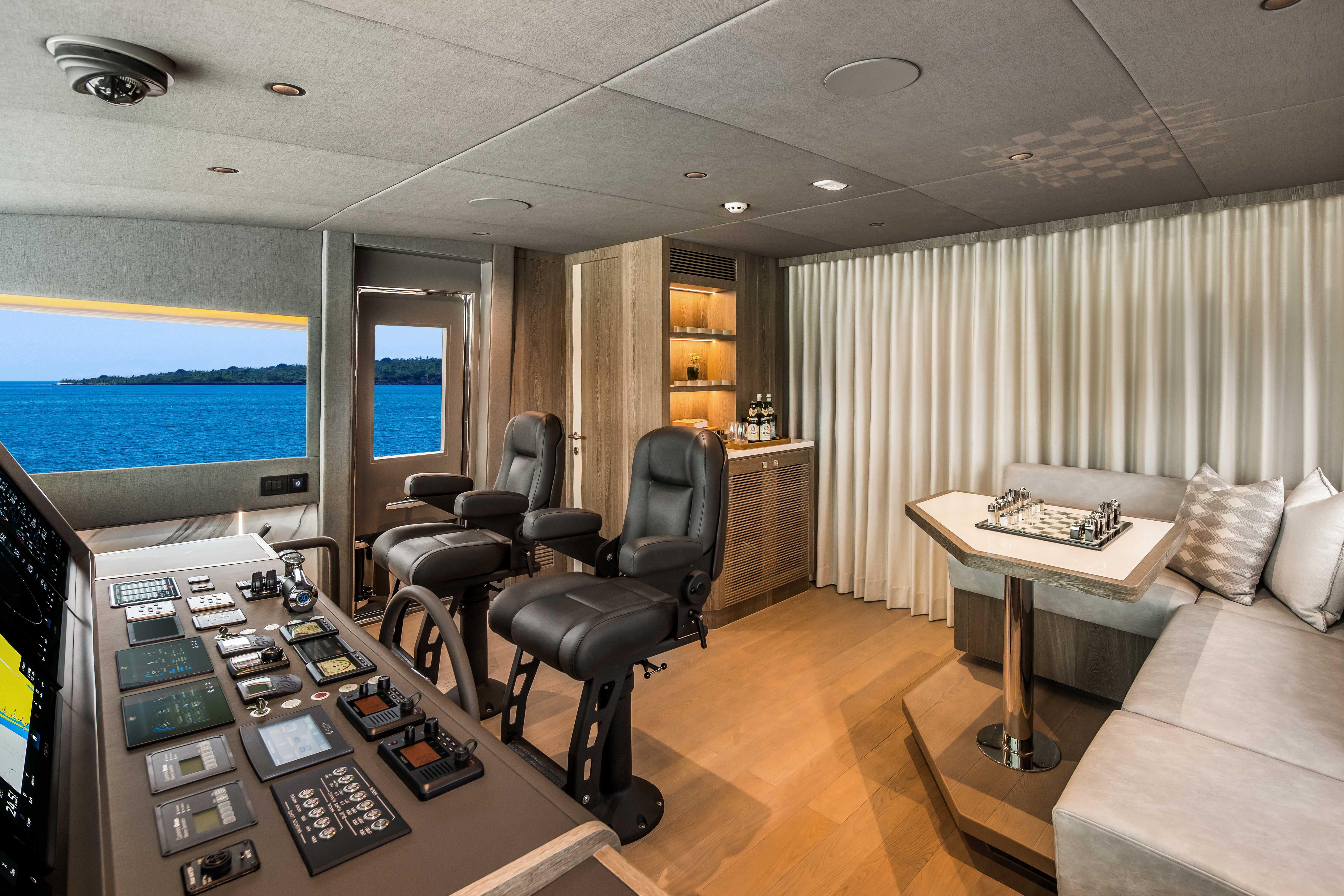 Horizon FD90 Split-Use SkyloungeThe most popular model in the acclaimed FD Series, the FD90 embodies the space, layout, and performance that define the Fast Displacement range. The FD90 features an expansive 23’ 3” beam, spacious on-deck Master with four guest staterooms, a convertible laundry room, all ensuite and two crew cabins below deck, and large windows in the salon. Fitted throughout with ingenious amenities and endless options for customization, the FD90 is quickly becoming one of the world’s most sought-after mid-range motor yachts.