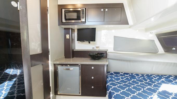 - Large bow storage hatch