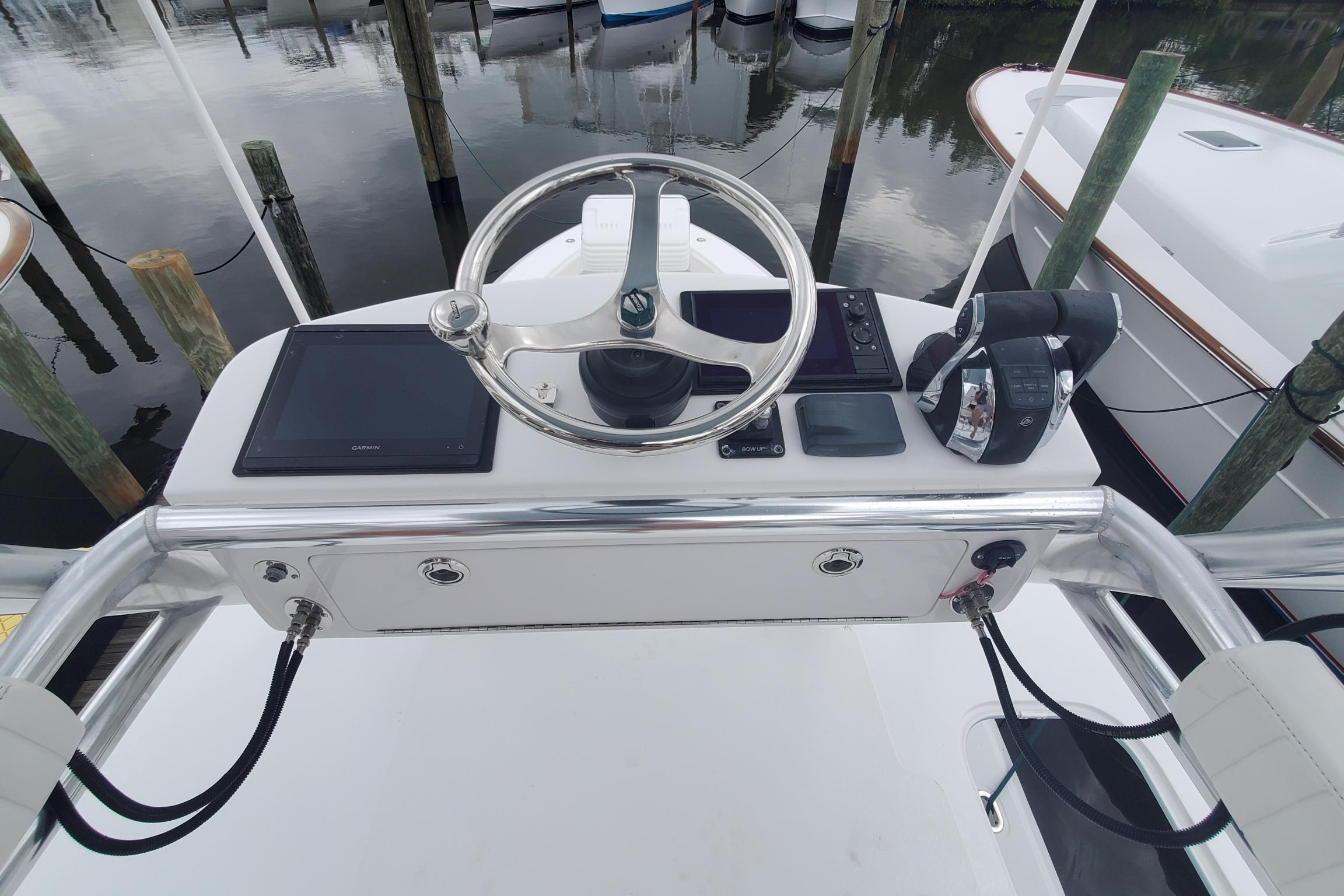 - Helm electronics: (2) Garmin VSC multi-function displays, (1) GARMIN 7610, ICOM M510 VHF radio, fusion stereo head unit, ACR spot light controls, trim tab controls