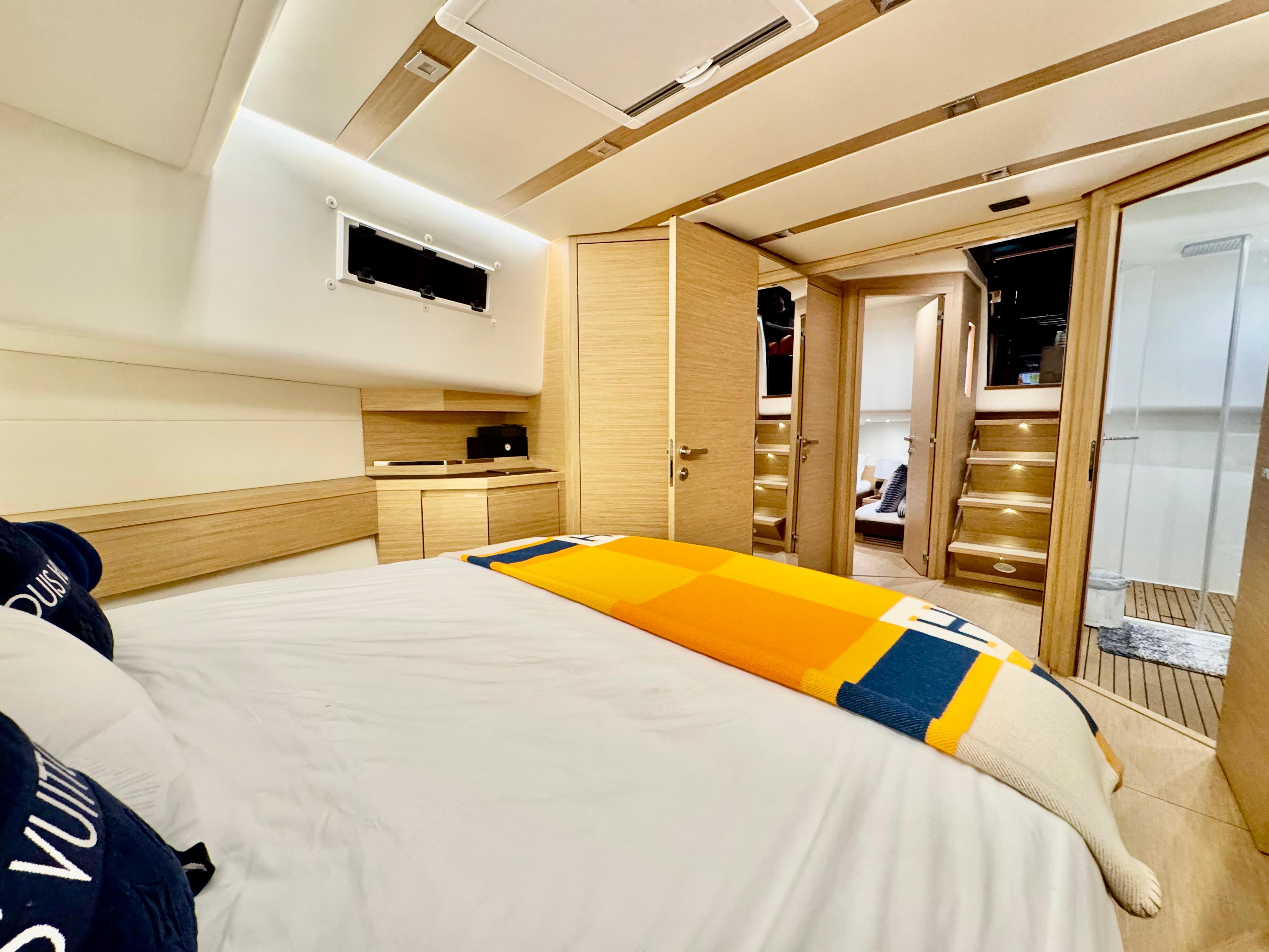 2023 Pardo 50 "La Doña" The ultimate sport yacht with many upgrades which include: Volvo IPS 800 (big engine package) with transferable extended warranty through 2027Kohler 15KW Diesel Generator Upgrade bigger than most other Pardo's. Custom Hermes inspired orange upholstery with diamond stitching plus matching vinyl graphics on the hull which can be easily removed. The hull is painted in Grigio gray.Upgraded JL audio sound system with lighted speakers. (4 JL amps, 6 JL subwoofers 10", and 8 JL 8.8" speakers) Starlink high performance internet with color matched antenna and bracket. Underwater cameras to monitor pod drives plus engine room and anchor cameras. Garmin PS51-TH Panoptix transducer for forward looking depth readings High / low table in cockpit with filler cushion.Flip down TV in cockpit under hardtopQuik Gyro 16K StabilizerSynthetic Teak Decking Underwater lights 5 deck fridges FLIR M332 camera. The Pardo 50 is capable of holding a full size Jetski on the platform plus a Williams tender in the garage which is rare for a vessel of this size to hold both. *Tenders not included but can be negotiated*Pardo impossesses a perfect balance between performance and comfort. Its V-shaped hull has a variable geometry: 16° at stern and more than 50° in the forward section. This guarantees great seakeeping and at the same time good maneuverability, allowing planning in safe and fast conditions. The convex bottoms ensure greater shape stabilityThe interior plan is very unique and one of the key selling points of the Pardo brand. On the Pardo 50 you can find two cabins and two heads plus a separate captain's quarters.