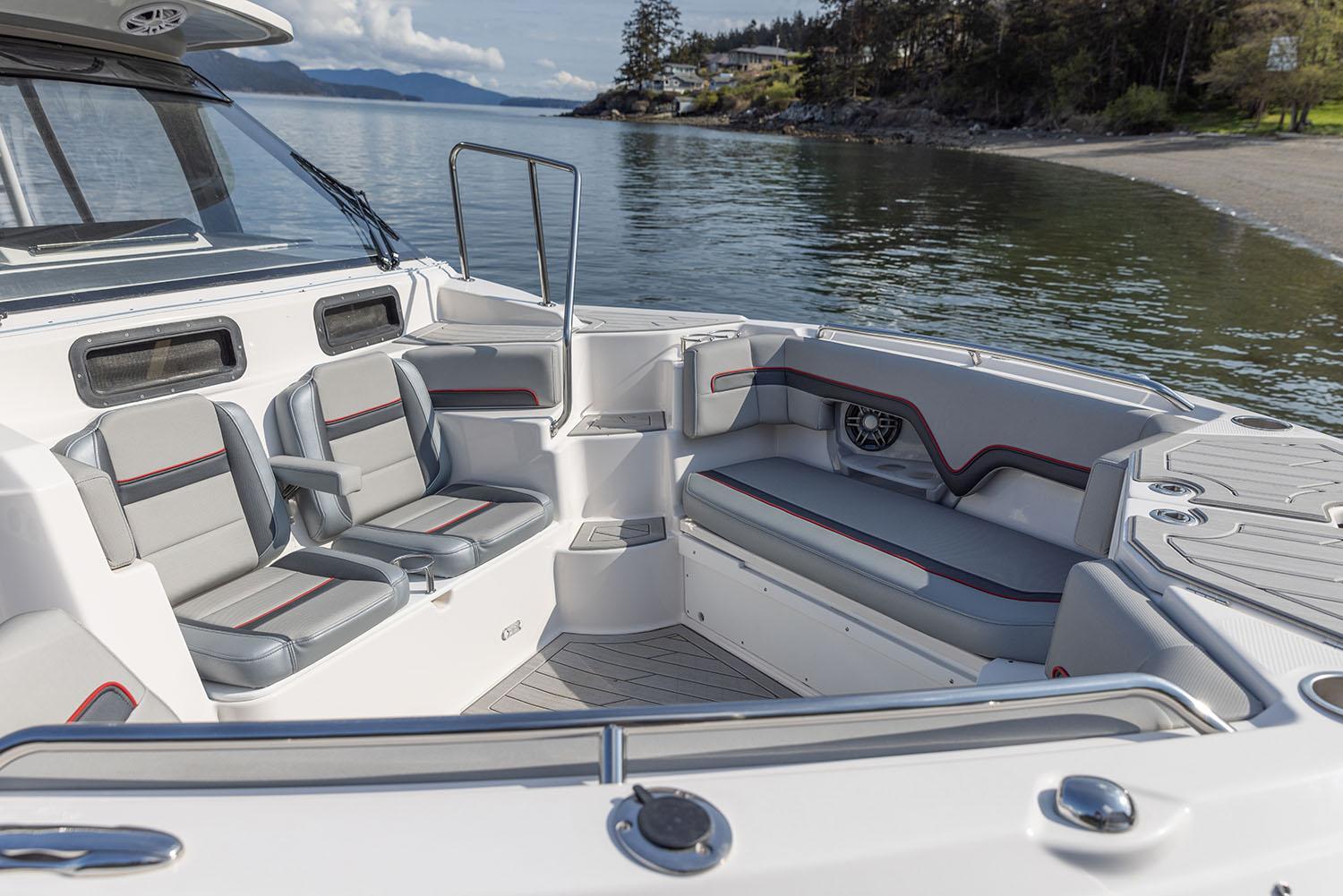 The S-310 Center Walkaround brings unmatched versatility in an agile and sporty platform. Built to excel at fishing, overnighting and entertaining guests in style, you’ll find features to enhance every experience. Powered by twin Yamaha F300 outboards, the S-310 CW delivers exceptional performance and speed. Quick planing ability and high efficiency are afforded by an advanced double stepped hull. Our uniquely designed Laminar Flow Interrupters provide outstanding cornering ability. The deep V forward and tapered bow flare allow the S-310 CW to handle rough water with ease.