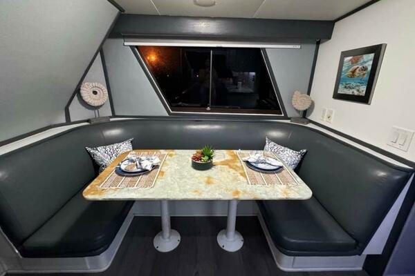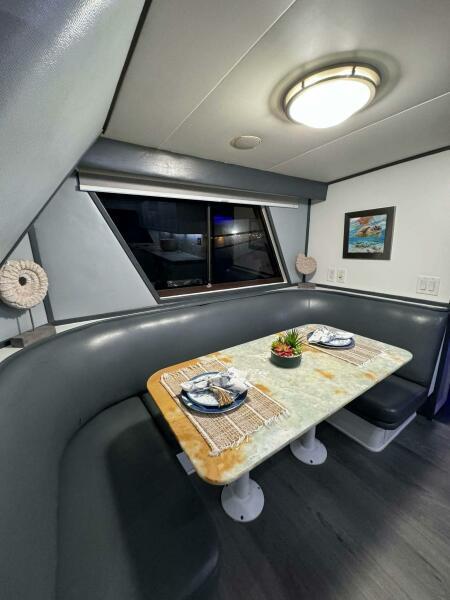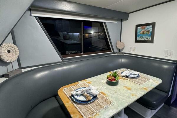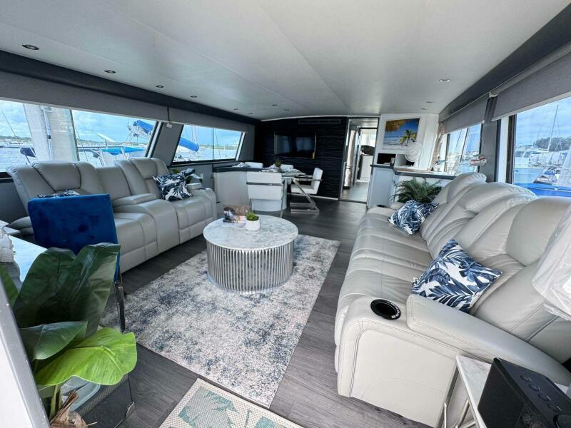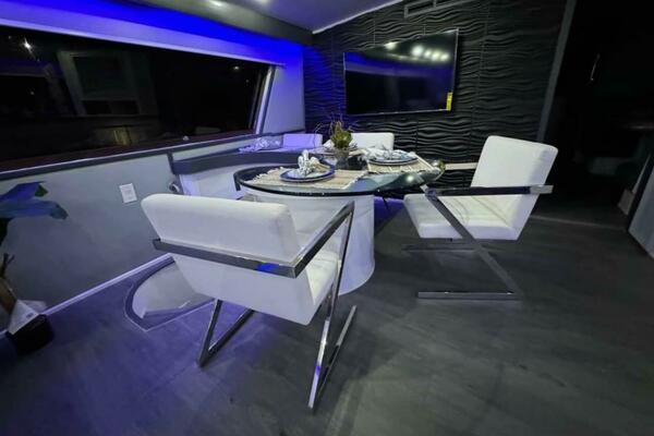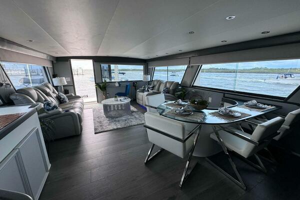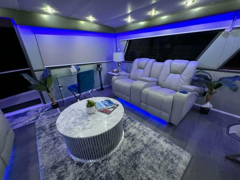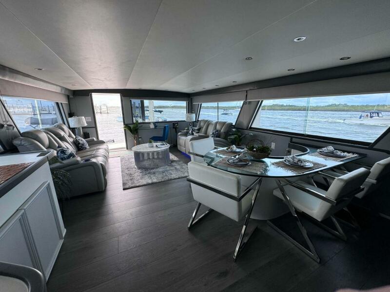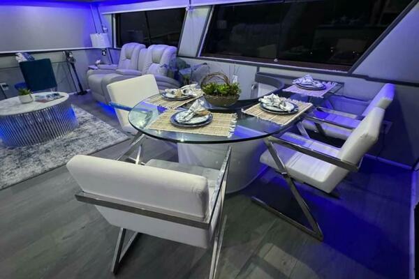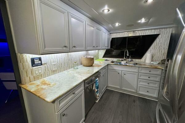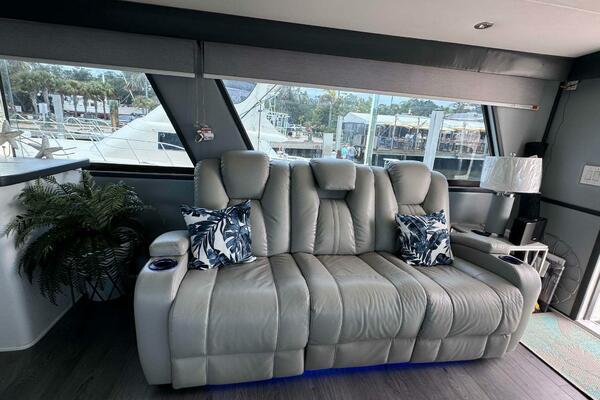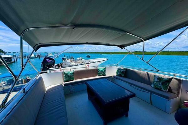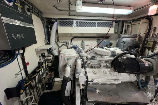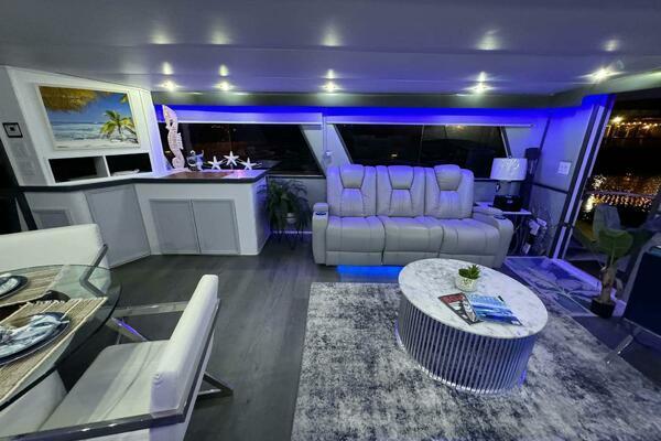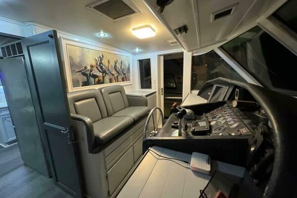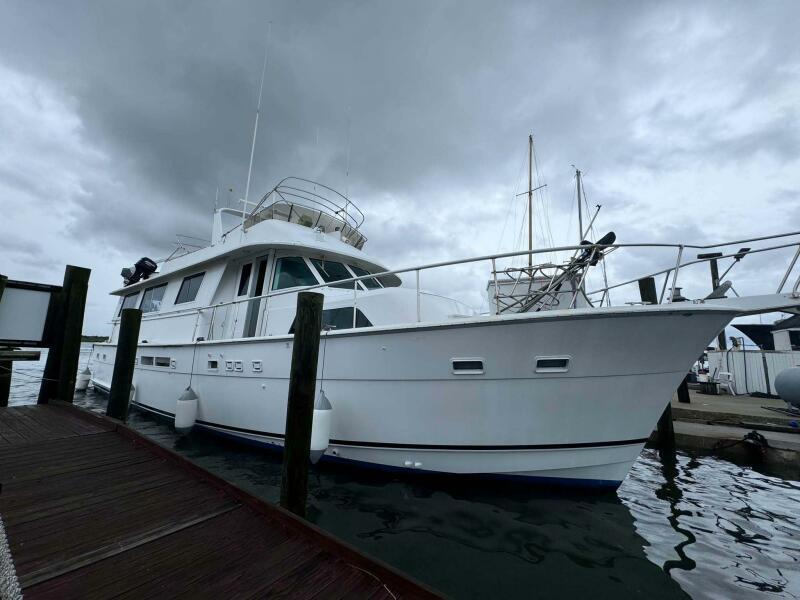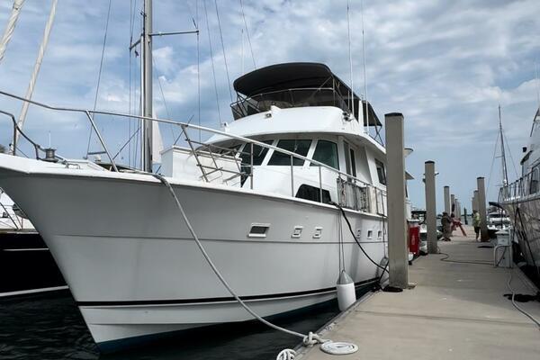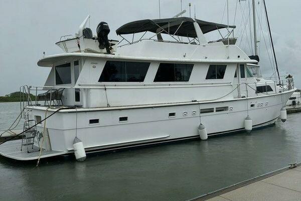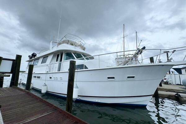 The Hatteras 63 Cockpit Motor Yacht is basically a Hatteras 58 Motor Yacht (1985–87) with a cockpit. Built on a solid fiberglass hull with a wide 18'2" beam, the interior of the Hatteras 63 includes a roomy main salon. When prices of real estate on the water is sky high, this would be your best alternative to live on the water without being attached to the land and be able to set sail to your favorite Islands. It’s ready to go. It doesn’t get any better!2 twin 12/71 Diesel Detroit engines were just rebuilt and have almost no hours on them.Last 2 upgrades: new deck flooring and new AC/Heat system.Brand new Sunbrella canopies on the upper deck, it needs almost nothing else. Located in Ponce Inlet, live aboard runs around $1650 month with water and electric included. Master Stateroom Aft of the Engine rooms is the full-beam master stateroom. The master is separated from the guest stateroom by the engine room, which gives the master some added privacy. It has a full queen bed and lots of storage space via drawers below both sides of the bed. There are nightstands and reading lights on both sides of the bed. Also, two hanging closets, one on the forward wall and one to port forward. To port and aft is a counter with storage drawers beneath. The starboard side also has a counter with storage drawers and a custom-made teak make up table. This can also be used for a desk and office area. There are port holes on both sides of the stateroom and a larger window on the aft wall of the stateroom. The aft window does slide open for ventilation and available for an escape hatch as well, the port holes also open for a nice cross breeze. There are pleated black out shades which can be lowered for complete privacy. Forward to starboard is the ensuite Master bathroom. This bathroom features a full bathtub with shower. It has sliding glass shower doors. The head has been replaced with a Raritan Atlantes freshwater flush head with a Galley Maid waste treatment system. Counter tops are a white mica with a flush mounted decorative stainless-steel sink. There is lots of storage behind the mirrored medicine cabinets and below the sink. Flybridge The flybridge is a very spacious area with a great layout for entertaining or cruising. It has three helm chairs forward so the captain can sit with a Navigator and a guest. Aft of the helm chairs is a bar cabinet and multi-level Corian countertop. Below the counter is space for a refrigerator and icemaker. On the aft side of the bar are two mounted round bar stools. Forward of the grill is a nice sink and faucet with storage area below. All the way to starboard aft is an L shaped seating area which will easily accommodate 7 people. To port and aft is a bench style seat which will accommodate three people. Aft of the seating area is a Marquipt Davit with power rotation, power boom, and power cable. The flybridge currently has a new Bimini top forward of the radar arch. Aft Deck/Cockpit The huge full-beam aft deck area is a great place for entertaining. The aft deck has hard sides with windows which slide open and wing doors leading to the side decks. The isinglass at the stern is new and rolls up making the area completely open with lots of ventilation. There is a wet bar and sink with a Corian countertop which also has storage below. There is also a Brand-new Scotsman clear ice machine. All the aft deck cabinetry has been refinished in white. The flooring has carpet with a water border around it to help keep it dry.A stair to port leads down to the spacious cockpit area. The cockpit is a great feature to have on a motor yacht. It makes docking and handling lines and fenders much easier. It is also a great spot to fish and launch your water toys. There is a transom door that swings fully open, which leads to the swim platform. The swim platform has four recessed cleats to tie your toys to. A large outdoor storage chest holds extra lines, fender, and accessories. Engine Rooms The two large stand-up engine rooms are separated by a hallway and offer easy access to all equipment. The Detroit Diesel 1271 engines have remote mechanical gauge clusters in each engine room to give you accurate readings of all the engine functions. There are dual Racor fuel filter systems with the high-end vacuum gages atop each filtration unit. There is a gear driven pump and manifold oil change system to evacuate and fill oil to all units when doing your oil changes. The control box for the Clearline air conditioning water system is also located in the engine room. There is a 120-volt freshwater pump and a 32-volt freshwater pump. The Charles 32-volt battery charger is in the port engine room. There is a UV water purification module to sanitize the tank coming out of the ships water tanks. Both engines have new silicone hoses. The starboard engine has a belt driven emergency bilge pump which can be activated to remove water if needed. The metal water/exhaust collection tubes below the exhaust risers have been replaced with fiberglass collectors. There is a Pura water filter that filters water supplied from the water tank and dock water system. Both engine rooms have custom overhead storage cabinets over the engines. They utilize dead space for storage of spare filters etc. There are overhead 120-volt fluorescent lights and 32-volt DC lighting. This is one not to miss, call today!