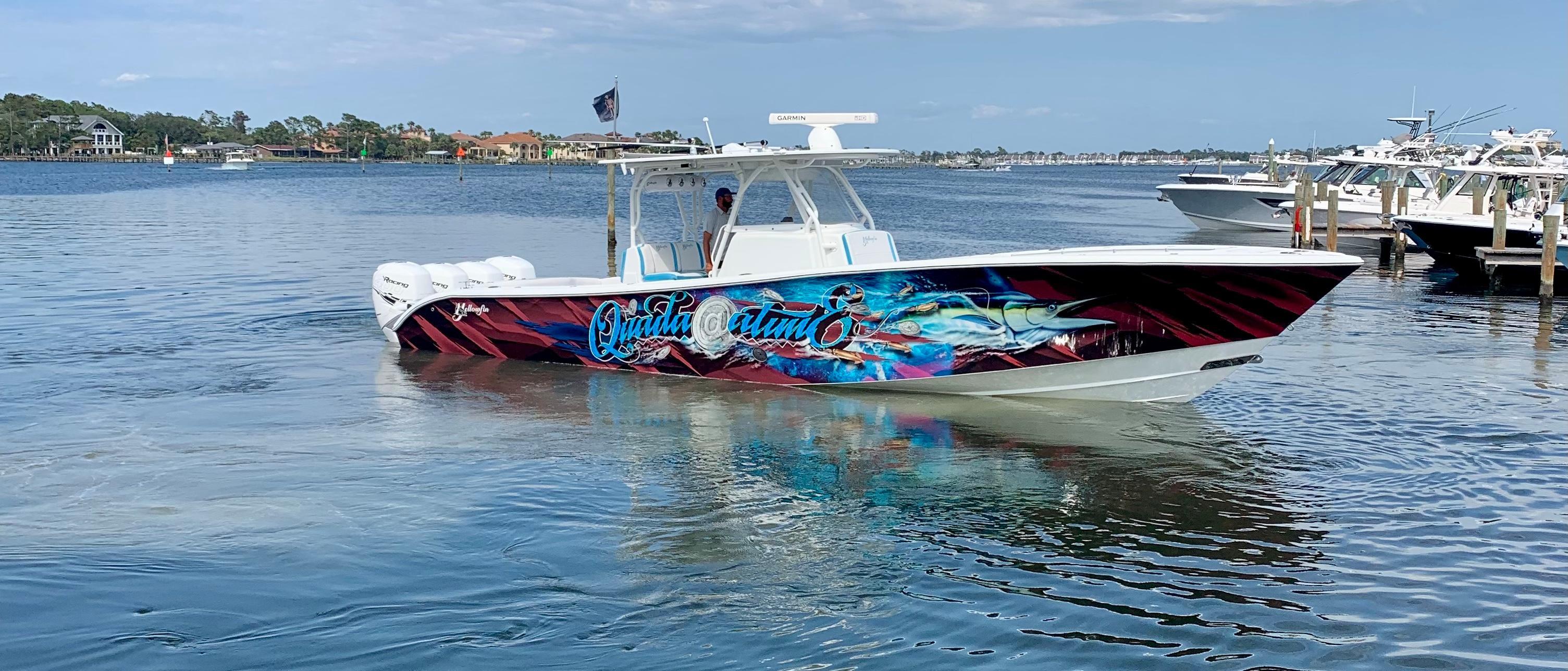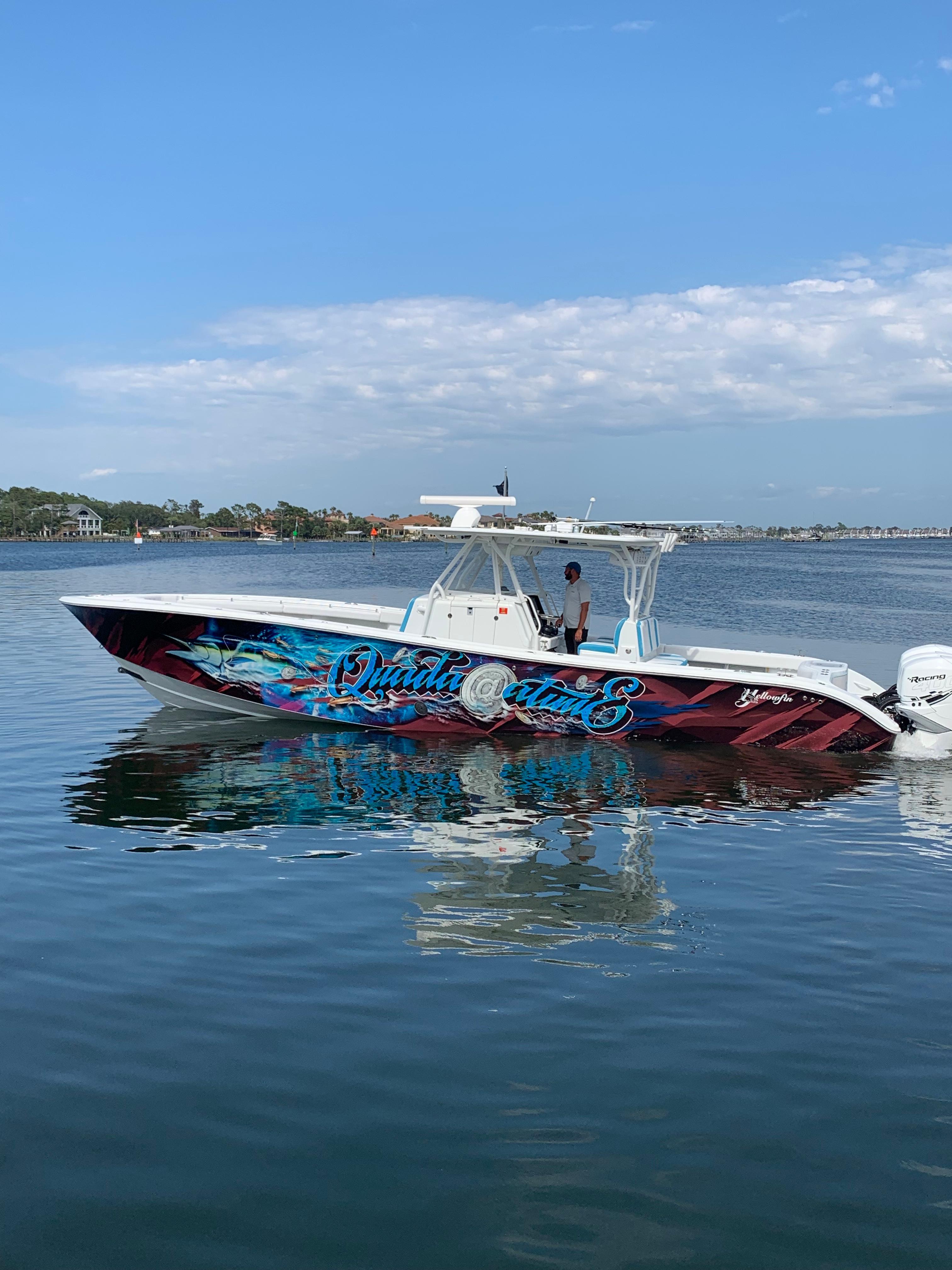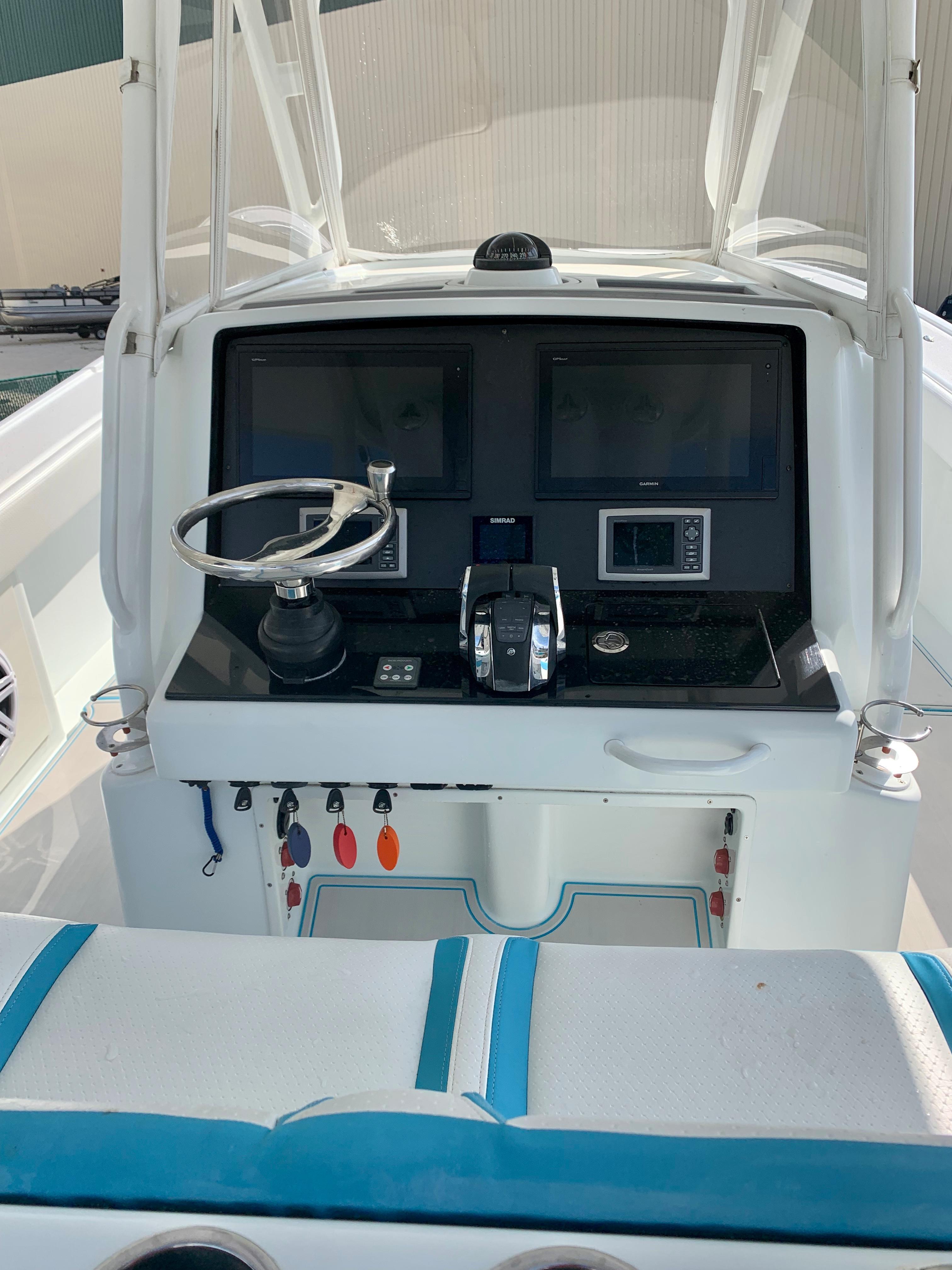 New in 2023 sea deck , New custom wrap, and all new cushions, with massive JL audio stereo, system , Garmin touch screen displays, 2KW transducer with amp. and always kept under cover her entire life.. Super clean , low hours 465 on 2018 Mercury Verrado’s and a meticulous Owner she has it all, she is truly turn key ready to fly with the top speed of 76 mph. She cruises 50 in style and comfort economically…. there’s not a cleaner, nicer 39 on the market today truly a turn key boat. … motivated seller .. Trades considered… Bring all offers
