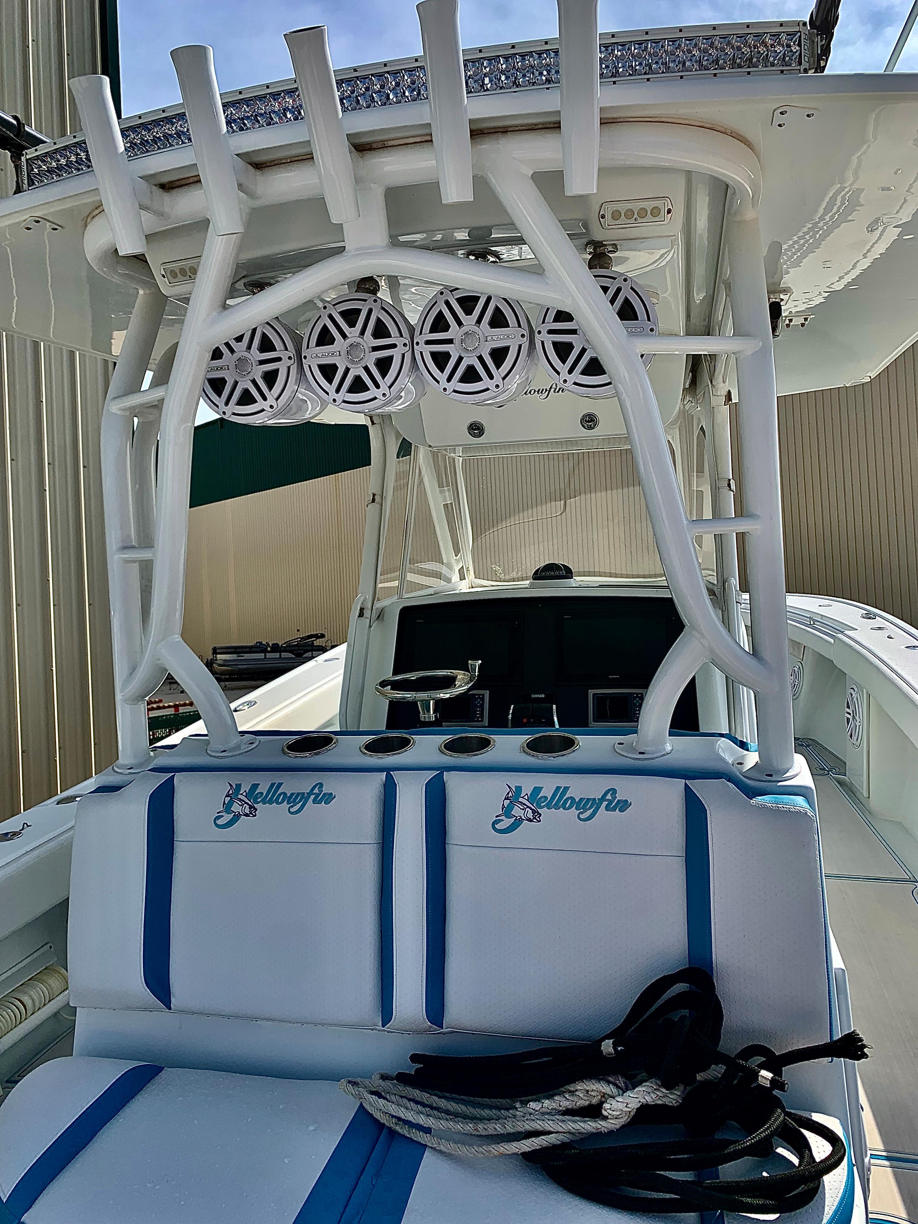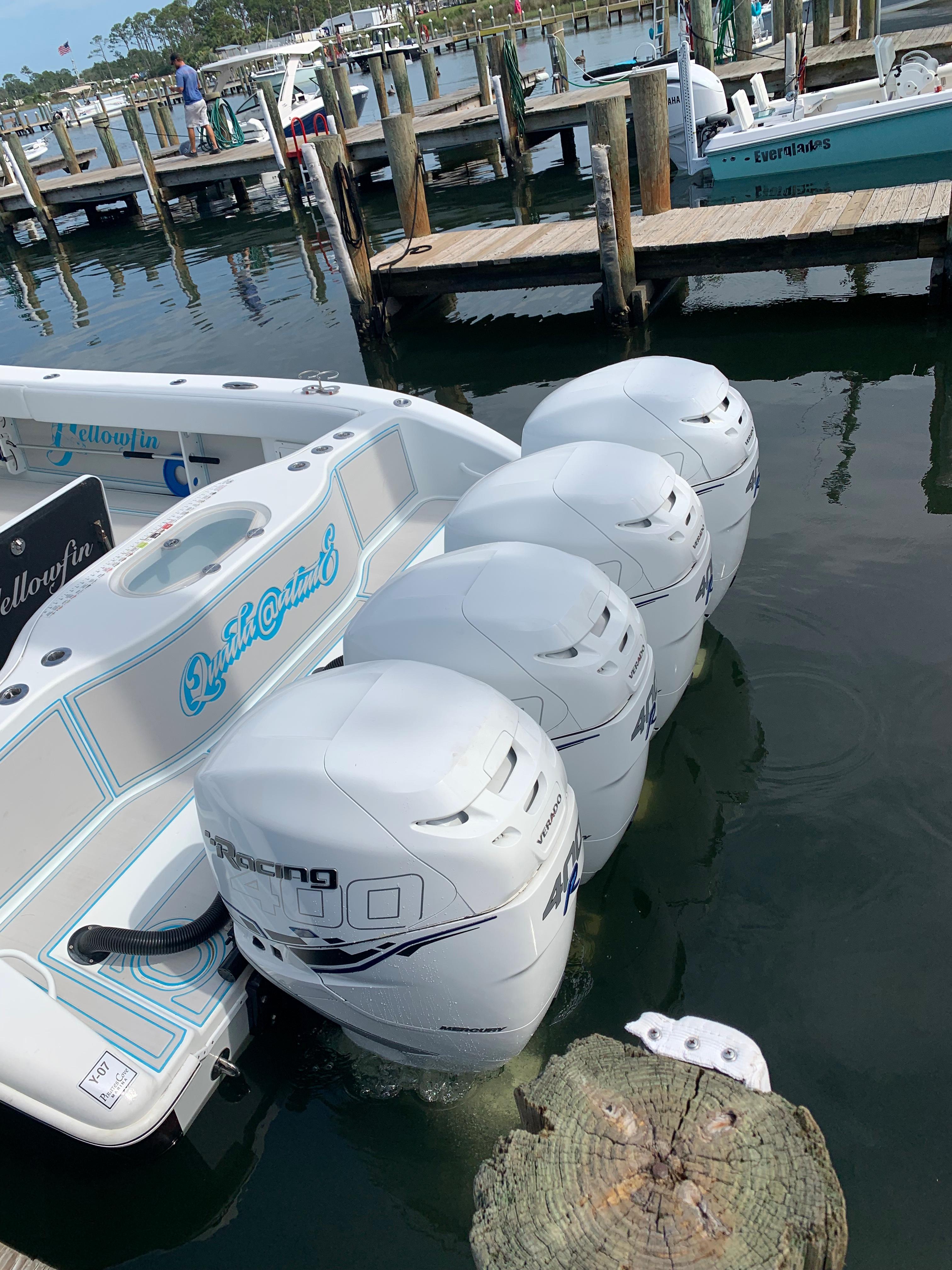 The Yellowfin 39 blends everything you would expect from a hardcore fishing machine, with additional features such as a spacious stand-up head and shower. With an 11'6'' beam the 39 easily accommodates the quad engines, allowing you the best options for fuel economy and speed.New in 2023 sea deck , New custom wrap, and all new cushions, with massive JL audio stereo, system , Garmin touch screen displays, 2KW transducer with amp. and always kept under cover her entire life.. Super clean , low hours 465 on 2018 Mercury Verrado’s and a meticulous Owner she has it all, she is truly turn key ready to fly with the top speed of 76 mph. She cruises 50 in style and comfort economically…. there’s not a cleaner, nicer 39 on the market today truly a turn key boat. … owner is stepping up to larger boat Trades considered… Bring all offers