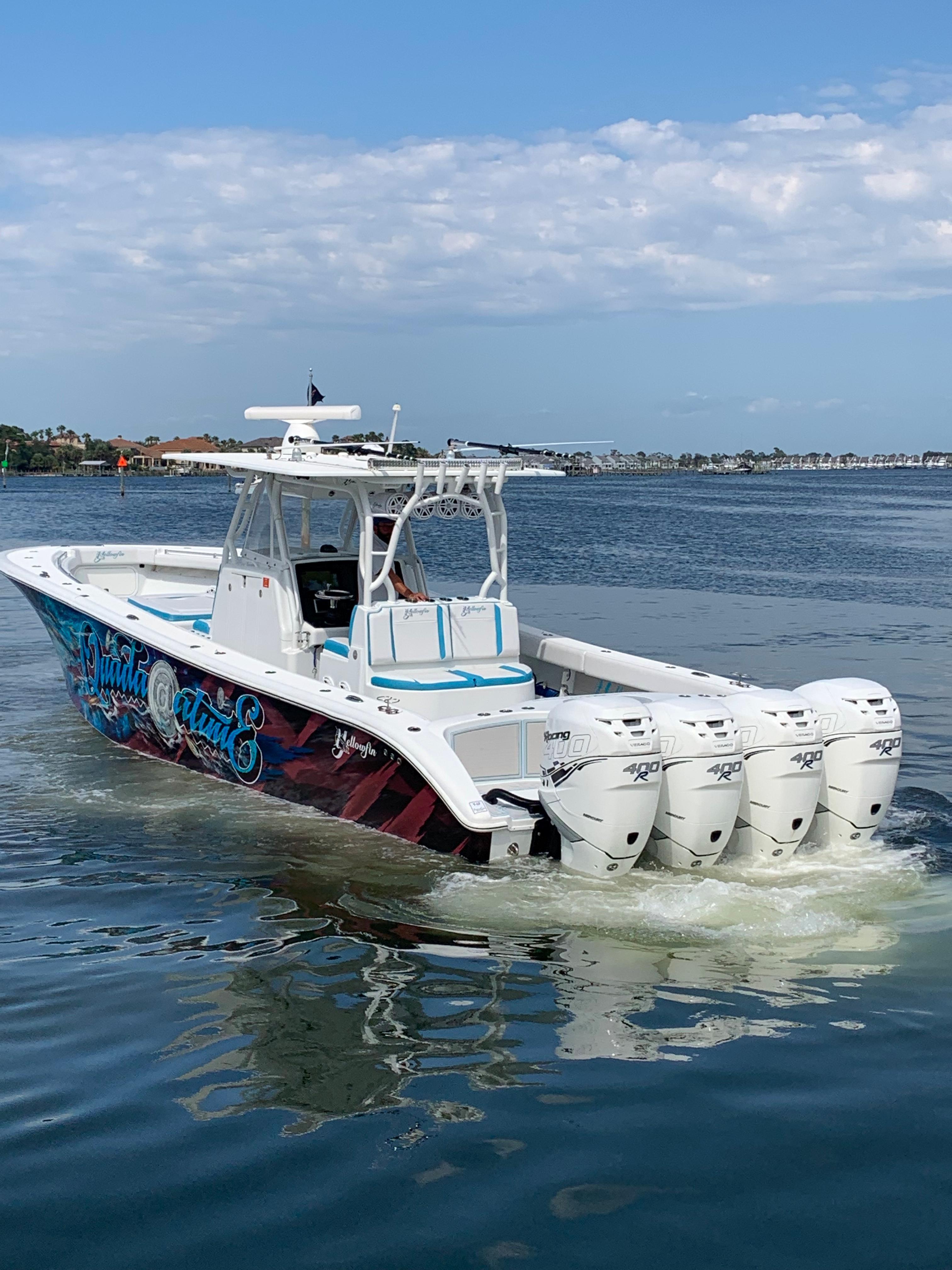 The Yellowfin 39 blends everything you would expect from a hardcore fishing machine, with additional features such as a spacious stand-up head and shower. With an 11'6'' beam the 39 easily accommodates the quad engines, allowing you the best options for fuel economy and speed.