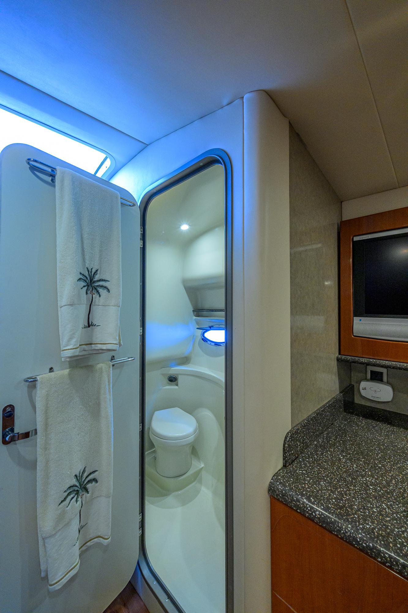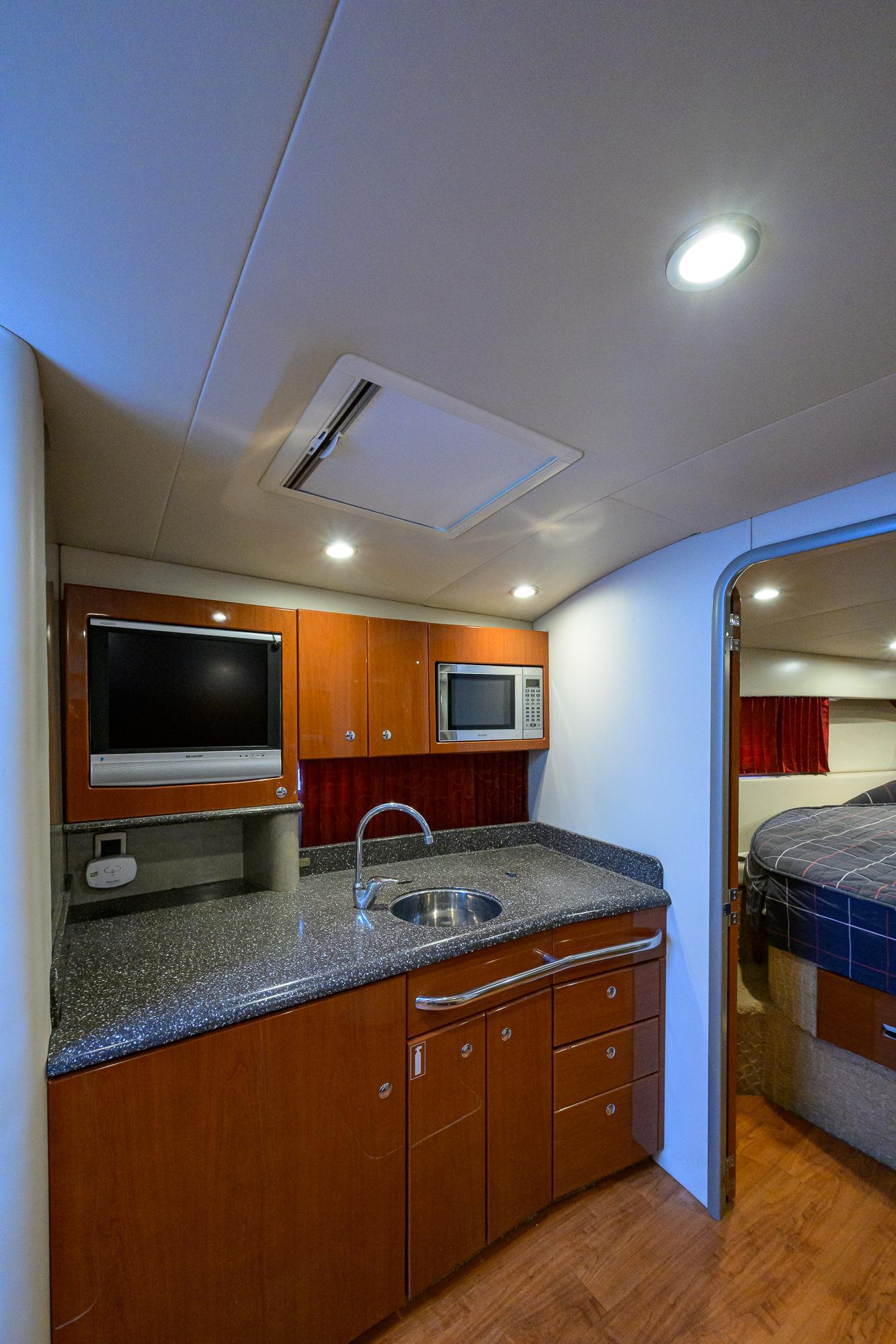 The well-appointed interior of the Formula 37 PC is designed for both comfort and functionality. The spacious salon includes high-quality finishes and a layout that maximizes livability. A convertible dinette offers additional sleeping accommodations, while the forward berth provides a private and comfortable sleeping area.