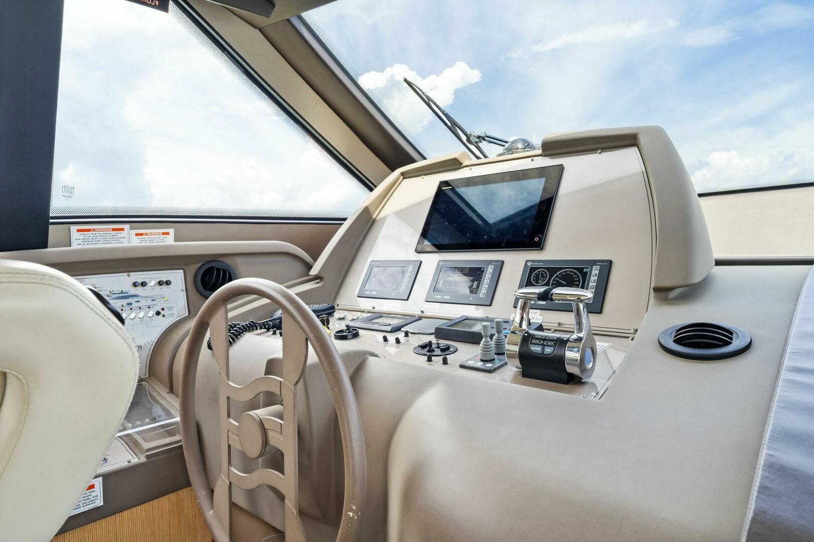This 2013 62 Ferretti offers class leading accommodations, styling, and performance. Big Deck Energy is well updated with upgraded Electronics and (2) Dometic 36,000BTU Chillers in 5/23. Well-equipped with KVH TV, Water maker, Underwater Lights and much more. Big Deck Energy is powered by V10 1100HP MAN Engines w/Vdrive propulsion. NO PODS! Her interior offers a 3 Stateroom layout with a Full Beam Master and separate Crew Quarters as well as top-of-the-line furnishings and Bosch/Miele Appliances. Call today to schedule a Showing!