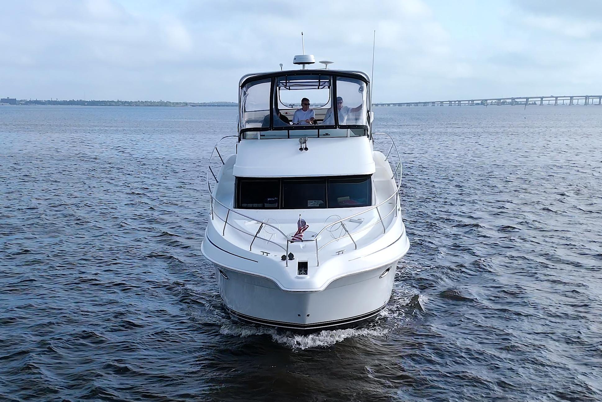 39' Silverton Motoryacht for Sale – A Luxurious Home on the WaterStep aboard this exceptional 39' Silverton Motoryacht, a floating luxury retreat that offers both comfort and style. Designed for maximum interior space, this vessel features a spacious salon, two luxurious staterooms with queen berths, and two heads, each with separate showers for added privacy. The raised exterior walkways from the flybridge provide excellent access to the bow, complemented by ample safety rails for your security.Powered by dependable 8.1 Crusader engines with under 370hrs and equipped with a 10kw Kohler generator, this motoryacht ensures a smooth, reliable performance on the water. Additional features like a bow thruster, Raymarine Axiom touchscreen chart/radar, tri-zone air conditioning, central vacuum system, and more, enhance your cruising experience. This vessel truly offers the best in marine living.Key Features & Updates:Kohler 10kw Generator – Reliable power for long cruisesRaymarine Axiom Plus12RV GPS/chart/radar for seamless navigationRaymarine Quantum Radome Dome Radar for enhanced visibilityBow Thruster with Joystick Control for precise maneuveringAir Conditioning – 3 zones with digital controls for ultimate comfortBose 3.2.1 AV System – Enjoy high-quality sound in the salonAft Deck & Flybridge Enclosures – Stay protected and comfortable in all weatherCentral Vacuum System – For easy cleaningGlendinning Cablemaster – For smooth cable managementIcemaker in Cockpit – Keep your drinks cold as you cruiseOil X-Change-R System – Simplifies maintenance Why Choose This 39’ Silverton Motoryacht?This motoryacht prioritizes interior volume and comfort over styling elegance, making it the perfect choice for extended stays on the water. The expansive salon and full-beam deckhouse provide generous headroom and ample space for relaxation and entertainment. The raised walkways make it easy to access the bow from the flybridge, ensuring safe and convenient movement throughout the vessel.Whether you are enjoying a quiet weekend getaway or entertaining guests, this motoryacht combines luxury, functionality, and performance. Don’t miss the opportunity to own this stunning Silverton 39' Motoryacht – your perfect home on the water.Schedule a Viewing Today!