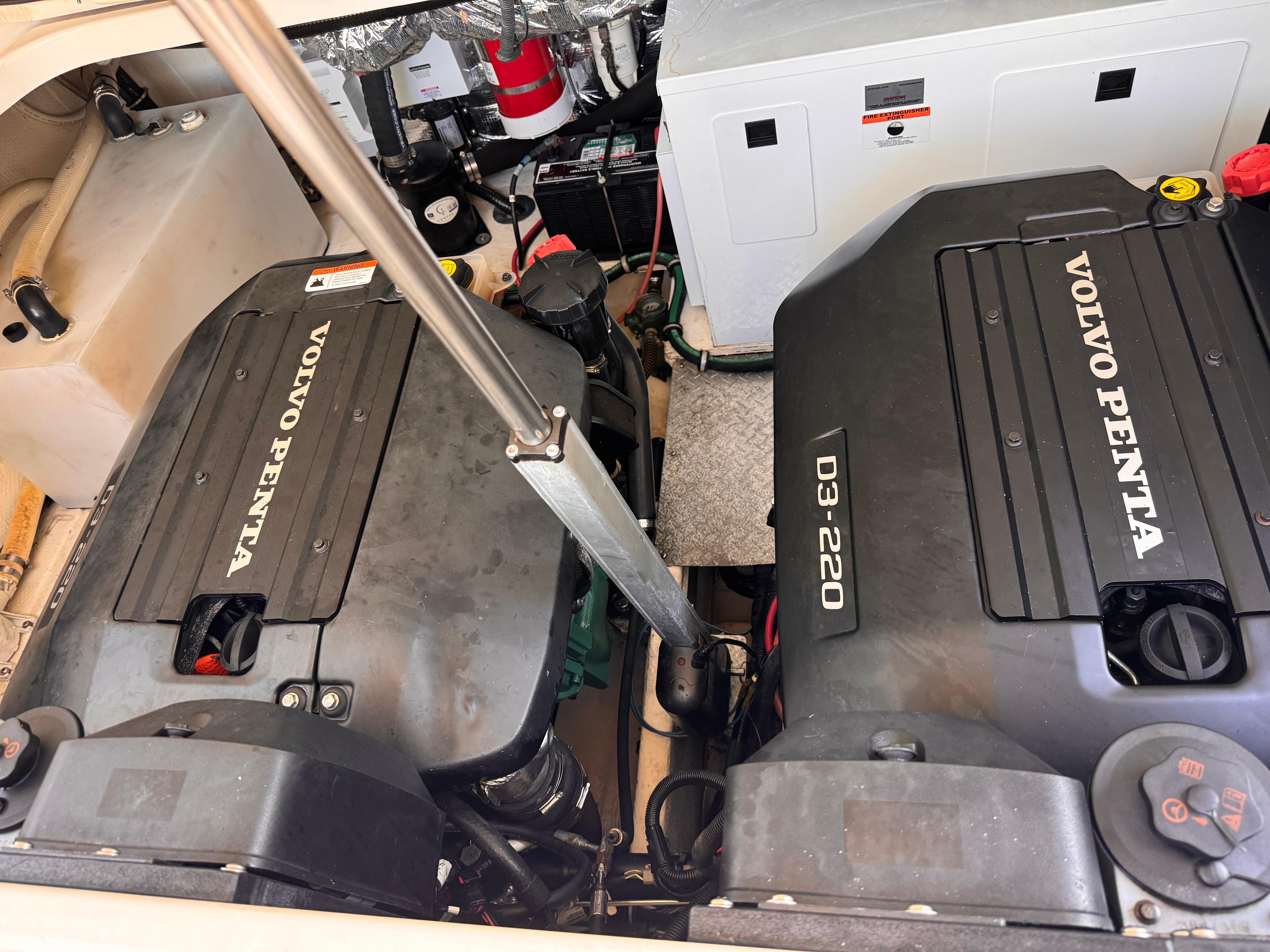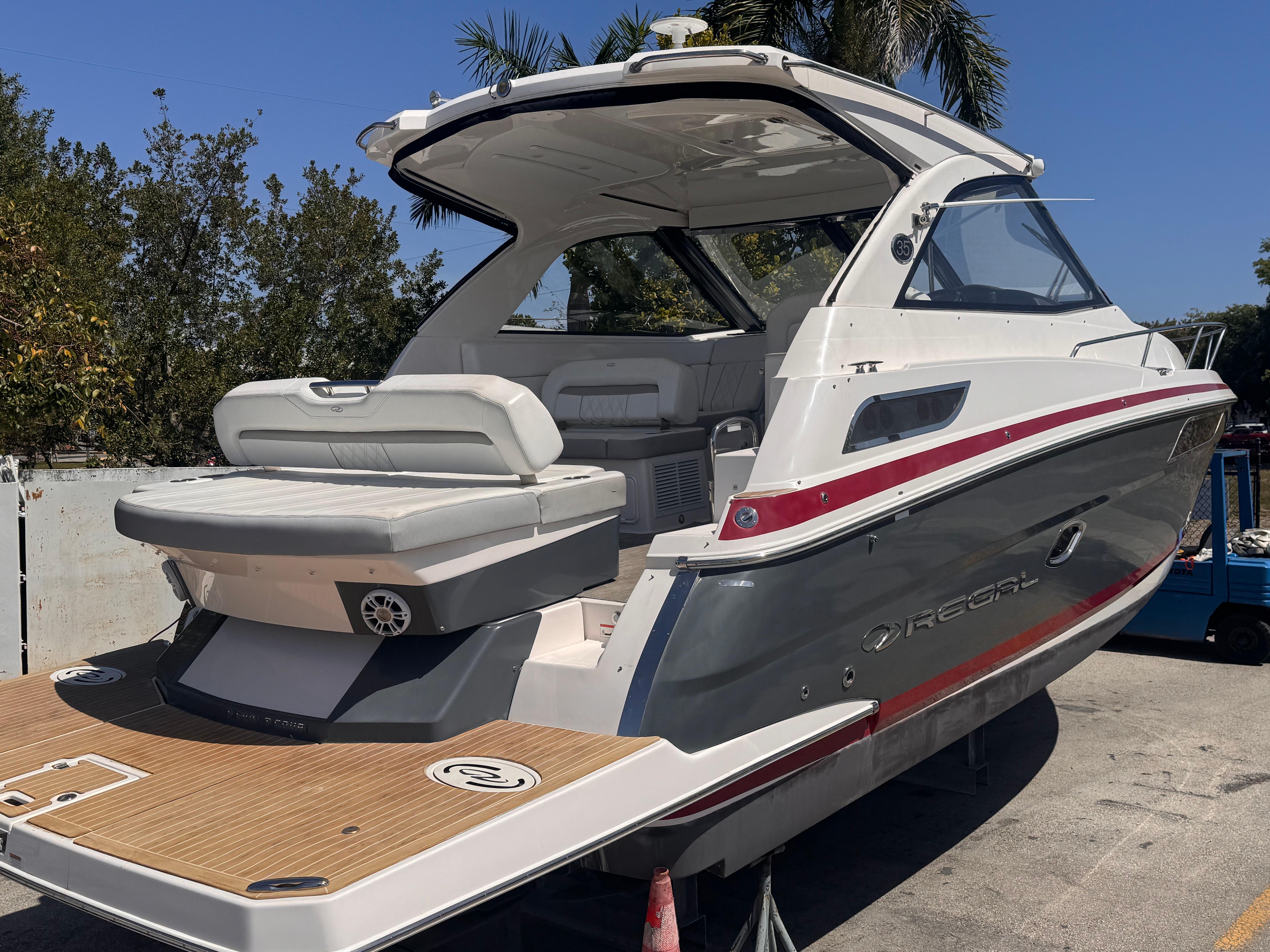 The Regal 35 Sport Coupe is exceptional in performance, comfort and style. With the most progressive and enhanced amenities in its class, passengers will feel like royalty whether they’re lounging on the foredeck SunPad, enjoying the view from the cockpit or relaxing down below in the cabin space built for a king.This 2019 Regal 35 Sport Coupe delivers luxury, performance, and comfort, powered by Twin Diesel Volvo D3 220 engines with just 140 hours. Packed with premium features, this vessel is designed for exceptional adventures:AC system for both the cockpit and cabin.Entertainment amenities, including TVs and a premium stereo system.A fully equipped kitchen with refrigerators, a stove, and a grill for effortless onboard dining.Spacious swim platform, perfect for relaxing and easy water access.Effortless handling with trim tabs, a windlass, and a joystick for smooth navigation and docking.The layout also includes a marine head, making it ideal for extended trips.