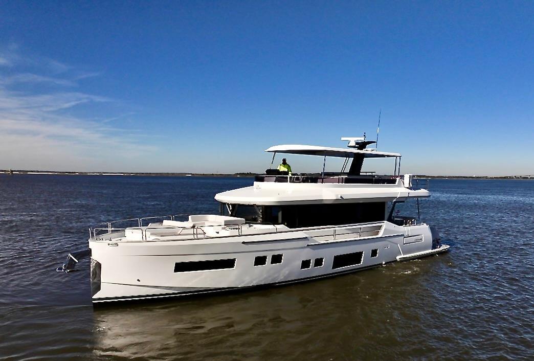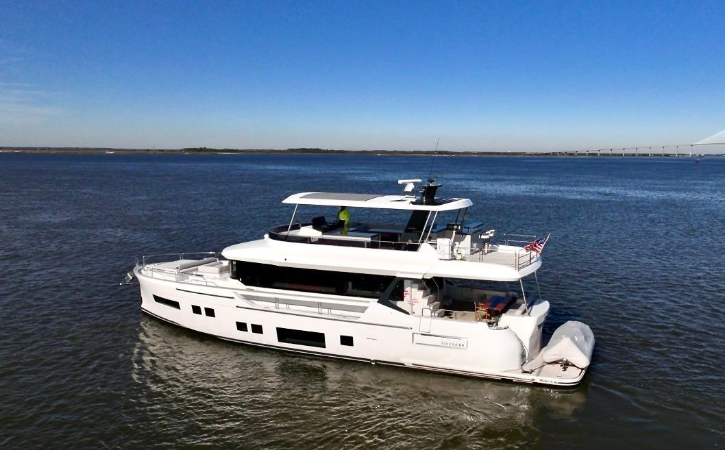 The goal of the Sirena 68 hull design was to offer efficiency at speeds ranging from long-range cruising to planing. A slippery hull with minimal appendage drag gave the range numbers we were looking for, while optional power choices increase the top end.The shape of the hull also creates interior volume that changes the onboard experience for the owners and their guests. Anyone who sets foot on this yacht will find space to allow gatherings of large groups together, as on the flying bridge, the aft deck area, or the saloon, or even the foredeck, where the light and shadow, breezes and views combine to elevate the experience offer a real change of perspective.Add to that a clean design for the accommodations, with lines that do exactly what is necessary and provide a framework where owner and guests can create moments of living well. The design proves itself from every angle, inside and out.Carbon TechOur in-house engineering department pays close attention to ensure our yachts run properly, with weight and center of gravity given careful consideration. Using carbon fiber in the superstructure provides numerous benefits:Strong, rigid structural elements.Support pillars and beams hold up the hardtop and large flybridge.Less weight above the main deck means a lower center of gravity, better stability, and a more comfortable ride.Reduced weight results in lower fuel consumption, longer range, higher speed