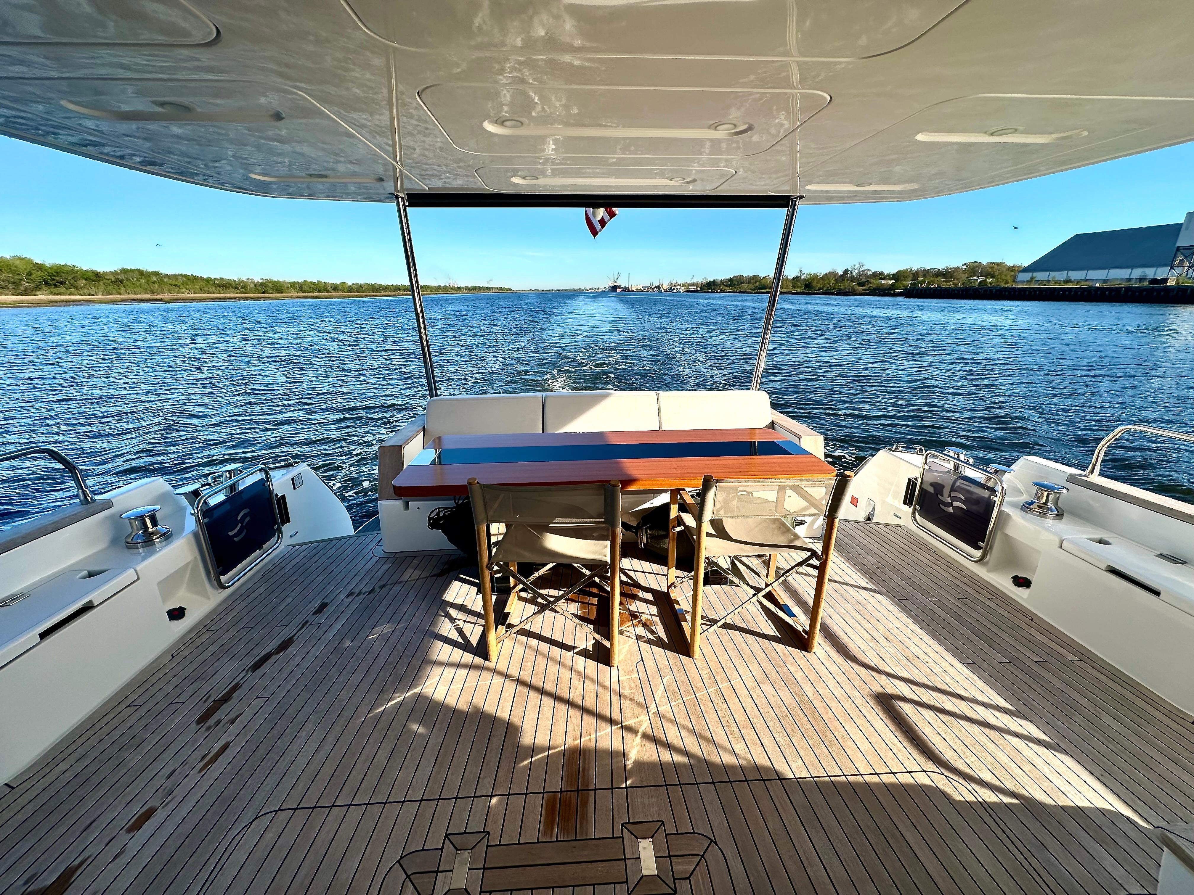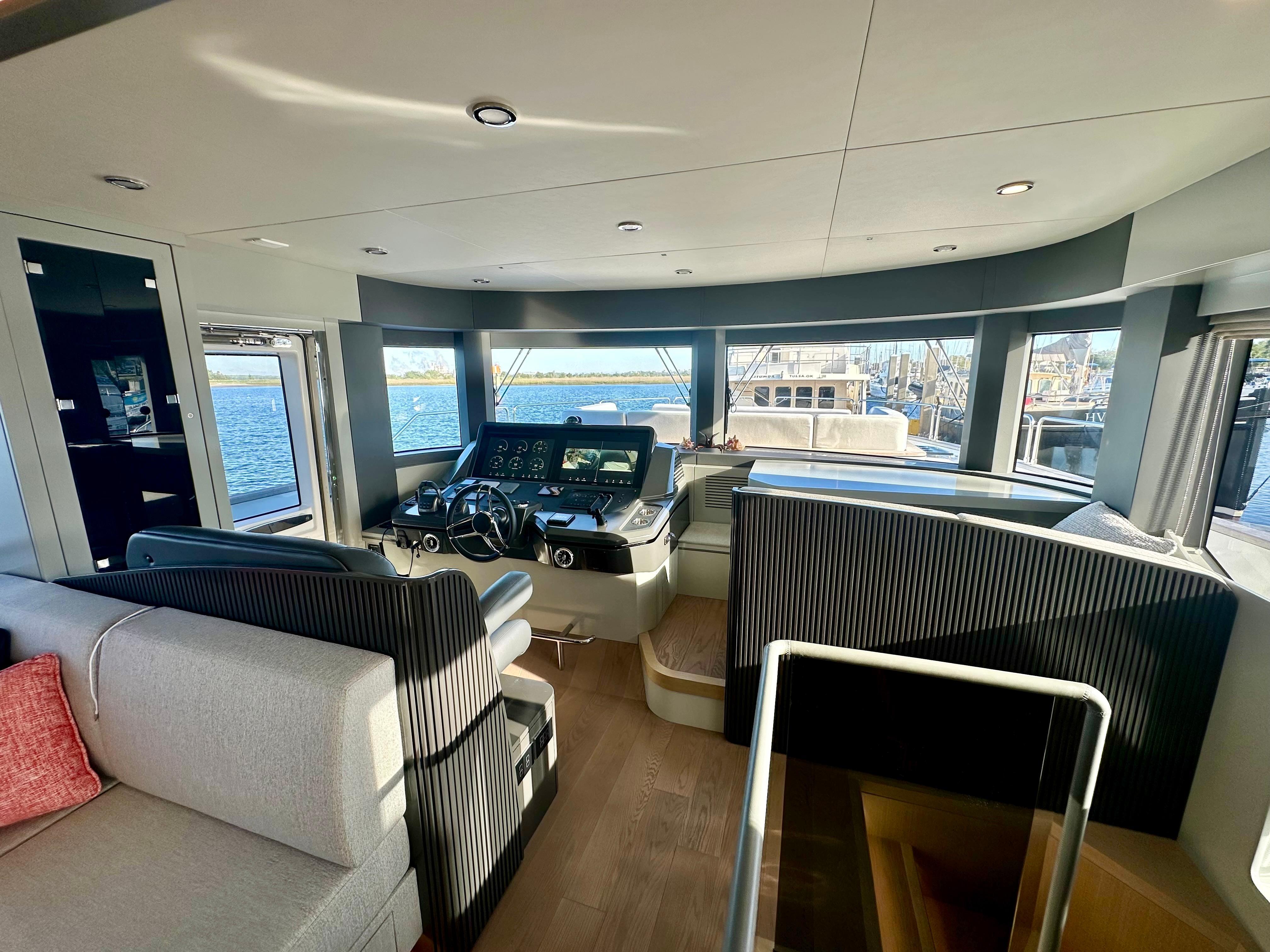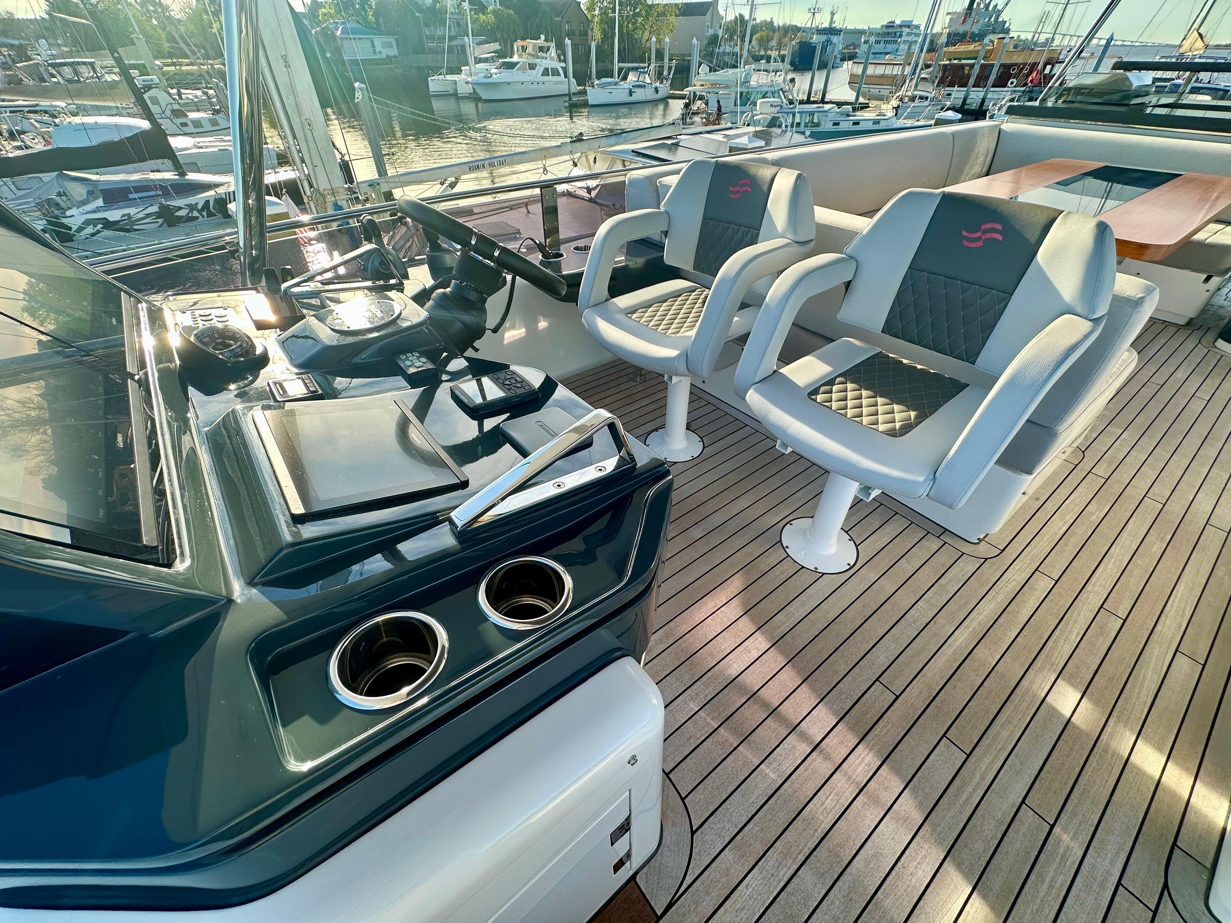 - Joystick control for engines and thrusters (main helm and flybridge)