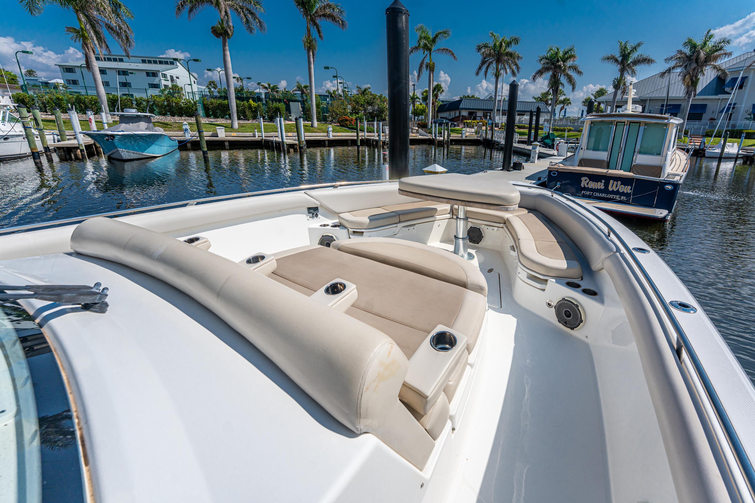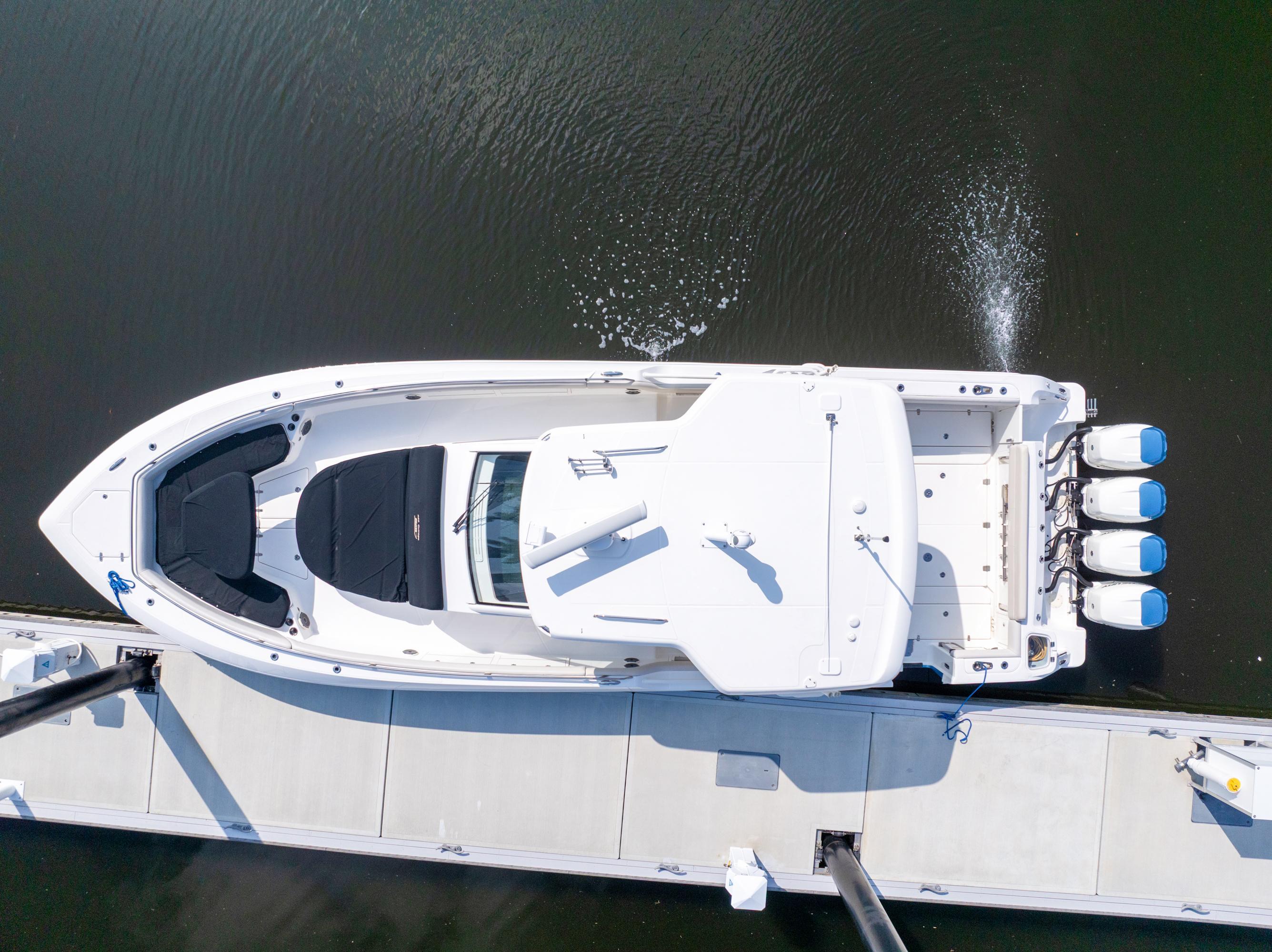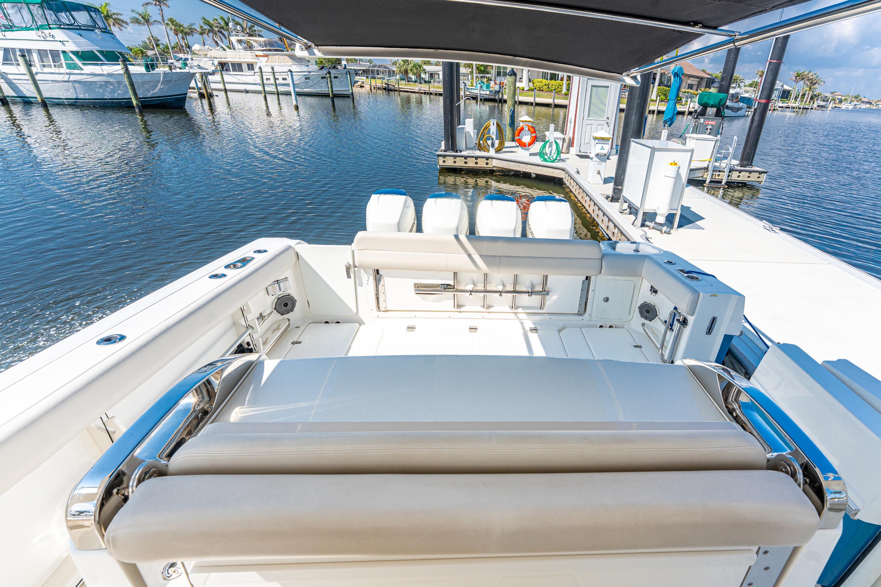 220 HOURS, PRISTINE, LOADED, SEAKEEPER An opportunity to own the cleanest lowest time 420 on the market at a fraction of the cost of a new one. Contact Jeff Ariens 941 916 2111 direct Air conditioned helm enclosure will keep you cool in the summer.Huge comfort, legendary capability and unmatched state-of-the-art features make the flagship 420 Outrage® a boat like no other. From the expansive bow with innovative seating galore, to the beautifully designed convertible helm and cockpit areas, to the gracious, well-equipped cabin with enclosed head, the 420 is a champion at onboard entertaining and pleasure cruising, whether close to home or way offshore. With so many inviting spaces to settle in for the day, this is the yacht you’ll want to enjoy with family and friends. Step aboard and into the future of boating.Helm seating accommodates 6 people and converts easily to face forward or aft.Cockpit sunshade deploys electronically and features black Sunbrella® canvas.Enclosed head includes electric VacuFlush™ toilet and an enclosed shower with rain shower head.Spacious cabin with V-berth offers 7 feet of headroom and two available color schemes.Convertible aft bench tucks away to expand the cockpit with even more fish-fighting room.Quad Mercury® Verado® 350s with Joystick Piloting offer incredible power and precision.Mercury’s integrated SmartCraft® VesselView display, power steering and digital throttle and shift combine for sophisticated, seamless command.Dynamic Running Surface hull technology, featuring automatically adjusting trim tabs, lifts ride quality to new levels.