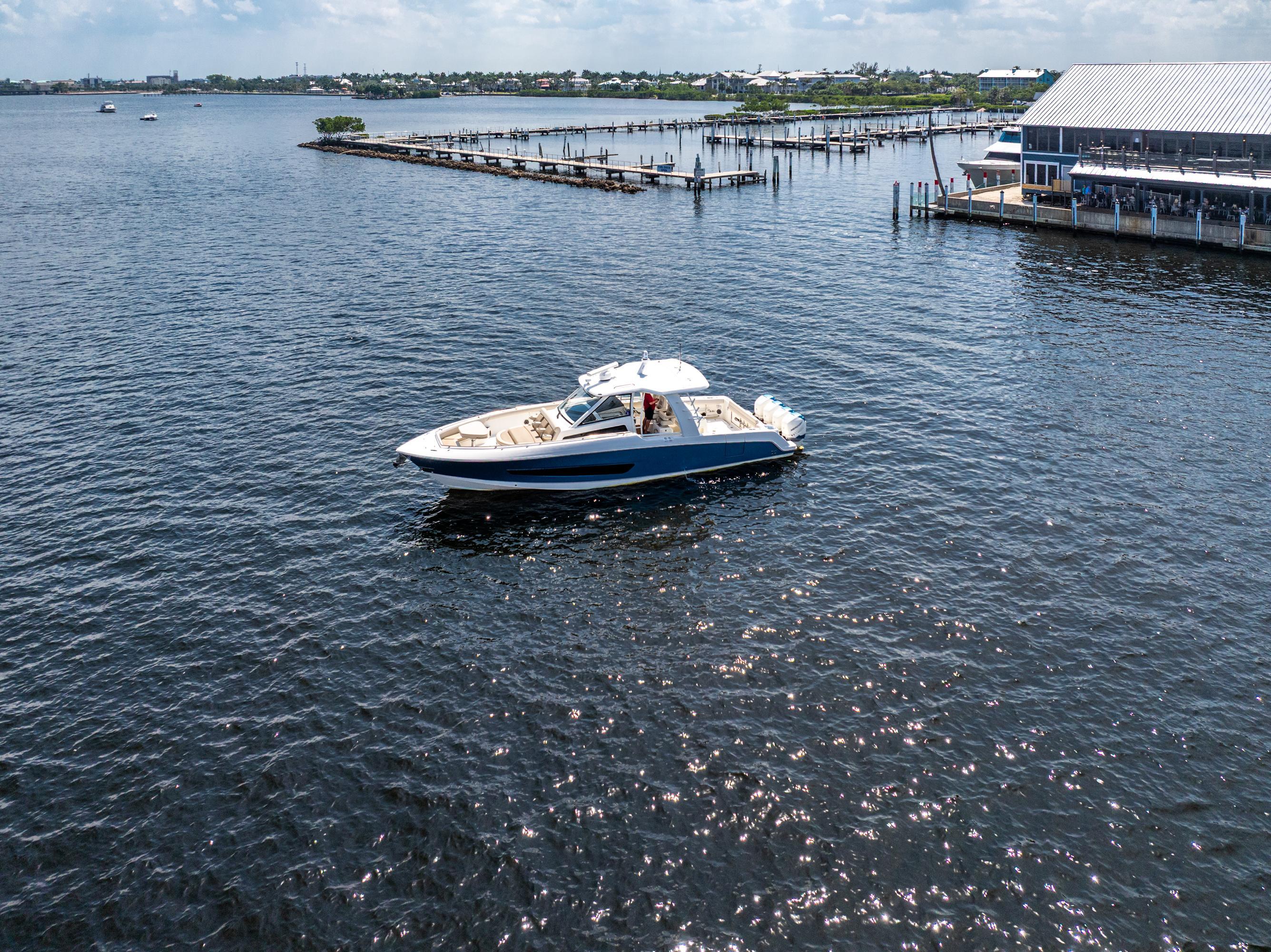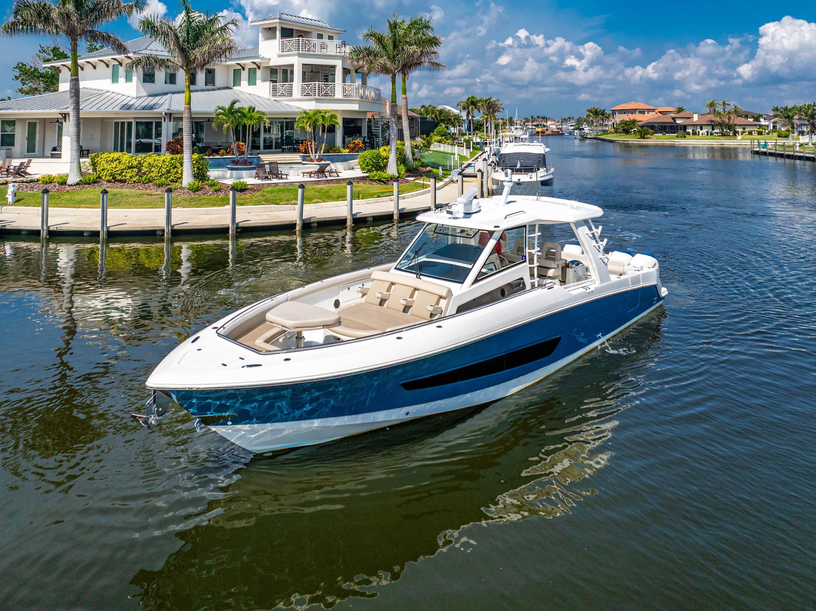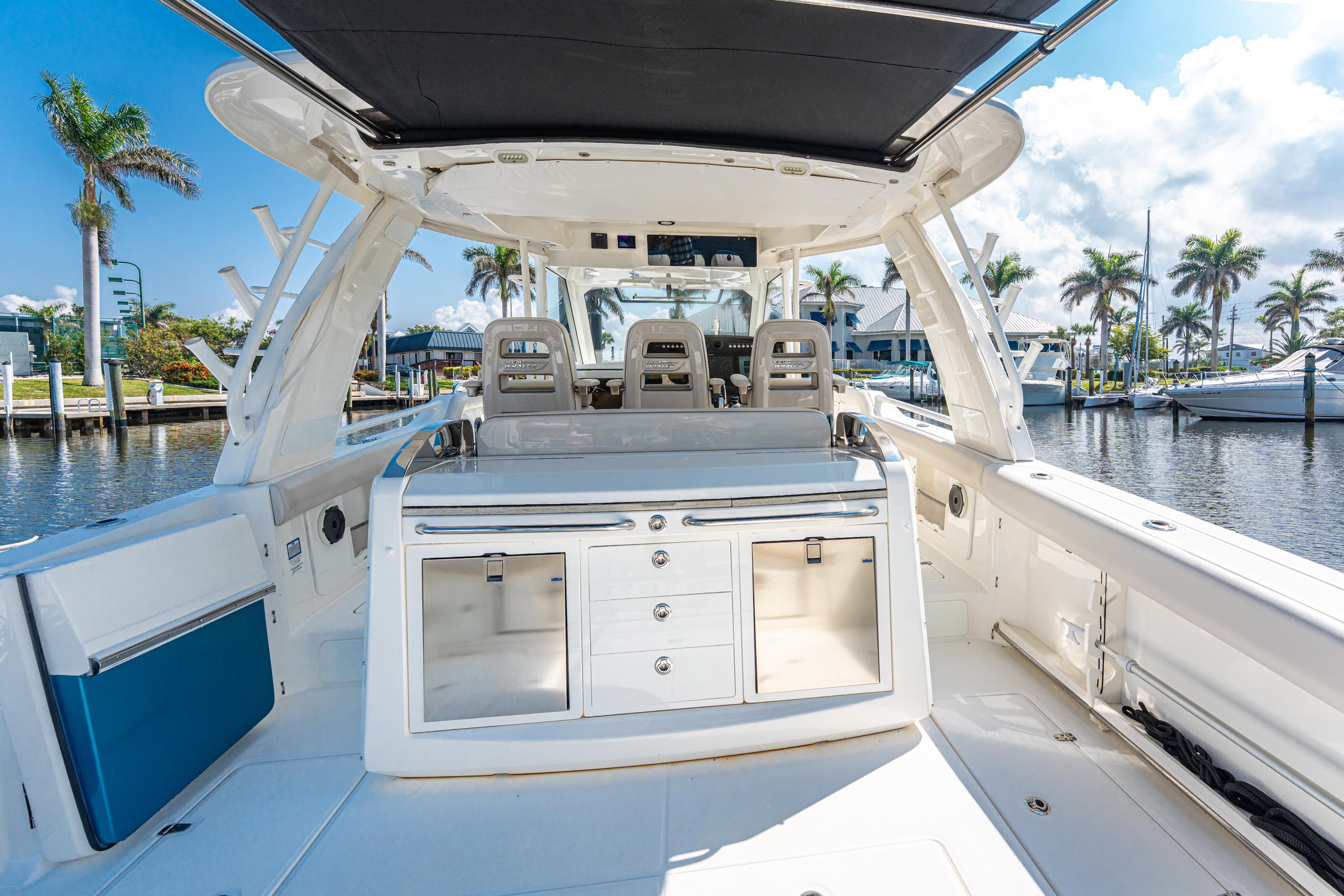 220 HOURS, PRISTINE, LOADED, SEAKEEPER An opportunity to own the cleanest lowest time 420 on the market at a fraction of the cost of a new one. Contact Jeff Ariens 941 916 2111 direct Air conditioned helm enclosure will keep you cool in the summer.Huge comfort, legendary capability and unmatched state-of-the-art features make the flagship 420 Outrage® a boat like no other. From the expansive bow with innovative seating galore, to the beautifully designed convertible helm and cockpit areas, to the gracious, well-equipped cabin with enclosed head, the 420 is a champion at onboard entertaining and pleasure cruising, whether close to home or way offshore. With so many inviting spaces to settle in for the day, this is the yacht you’ll want to enjoy with family and friends. Step aboard and into the future of boating.Helm seating accommodates 6 people and converts easily to face forward or aft.Cockpit sunshade deploys electronically and features black Sunbrella® canvas.Enclosed head includes electric VacuFlush™ toilet and an enclosed shower with rain shower head.Spacious cabin with V-berth offers 7 feet of headroom and two available color schemes.Convertible aft bench tucks away to expand the cockpit with even more fish-fighting room.Quad Mercury® Verado® 350s with Joystick Piloting offer incredible power and precision.Mercury’s integrated SmartCraft® VesselView display, power steering and digital throttle and shift combine for sophisticated, seamless command.Dynamic Running Surface hull technology, featuring automatically adjusting trim tabs, lifts ride quality to new levels.