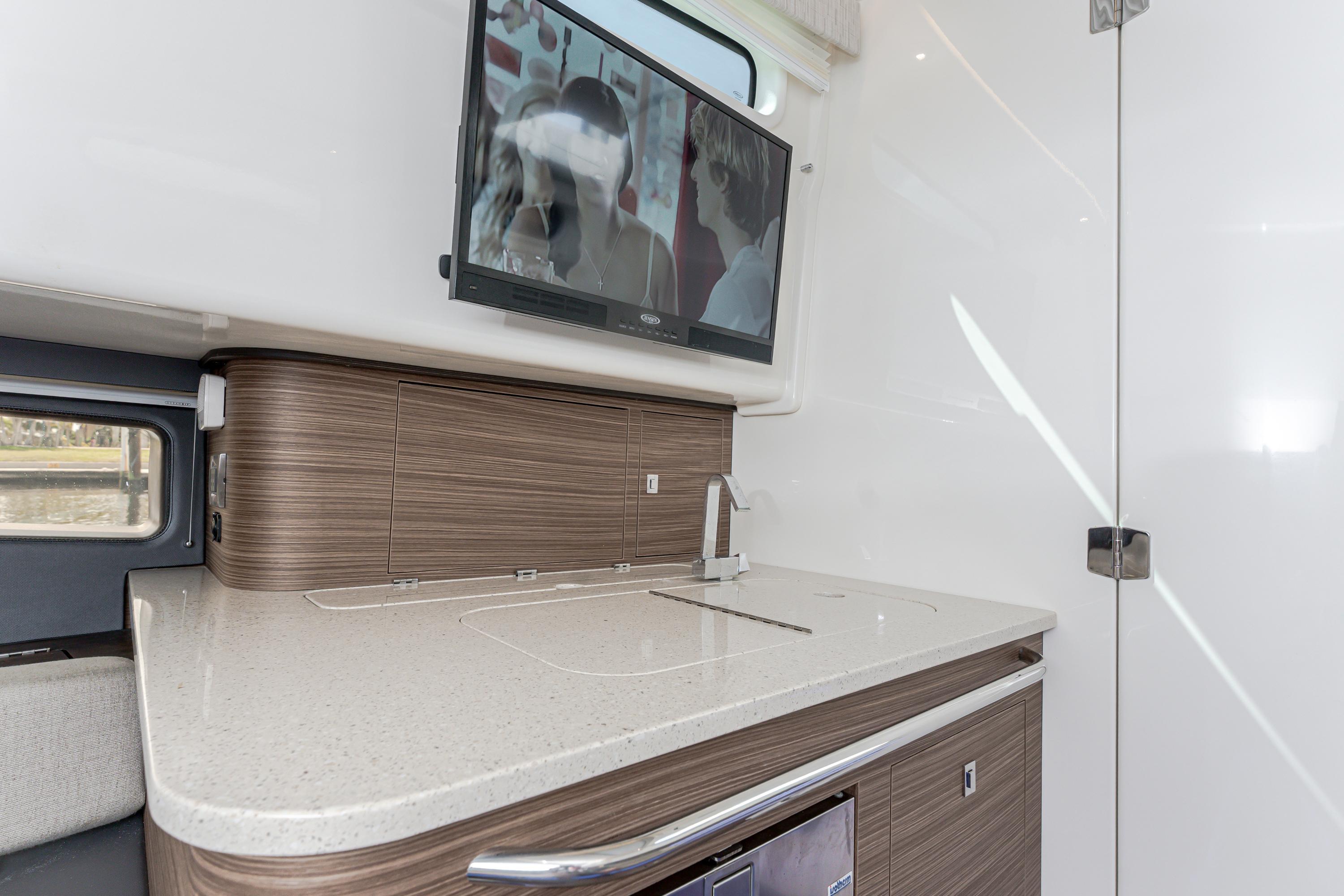 - Galley – hinged lid integrated into countertop providing access to storage compartment