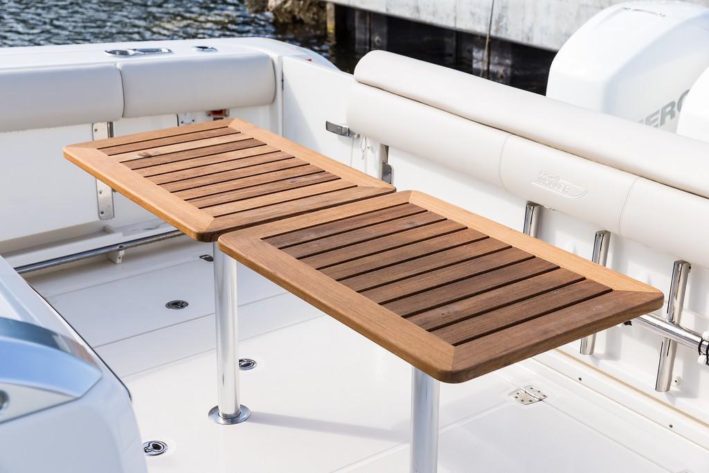 - Leaning post cushion on forward side of the prep station that also converts to 3 person bench seat providing a second row of seating behind the helm