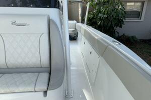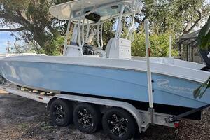 As Renegade Powerboats’ most popular model, the Renegade 32 Cuddy Cabin offers both high performance and luxury. The cuddy cabin (32′ LOA, 8′ beam) has a draft of just 22 inches, which allows the captain and his crew access to shallow water throughout beautiful destinations such as the Florida Keys, Bahamas or wherever the owner runs his Renegade. With twin Mercury Verado 350-horsepower outboard engines, the Renegade 32 reaches speeds of more than 60 mph in seconds. The boat also features an expansive dash panel with room for all the latest electronics, while in the forward cuddy there’s room for a head and berth. The Renegade 32 features plenty of storage, including draining compartments under seats, under the deck, and in the transom bulkhead, and these spaces can function as either as fish boxes or huge coolers. Whether your passion is fishing or cruising, Renegade makes it happen in style. Renegade was founded in 1997 in Hialeah, Florida and is still building vessels. FeaturesTwin Mercury Engines Verado 350 with 460 hours.Fiberglass HardtopGPS ScreenMercury GaugesFull Sound SystemItalian Steering WheelFiberglass Helm SeatStainless Steel Rub RailBattery ChargerShore PowerGarmin TransducerMercury ControlsPerformance Trim TabsVHF RadioRod BoxesSearchlightsIlluminating SwitchesFull LED LightingWindlass System w/ AnchorStainless Steel Anchor GuardResting AreaBuilt-in CoolersWindshieldFloor HatchesMercury Verados recently serviced and 100 hour service completed.