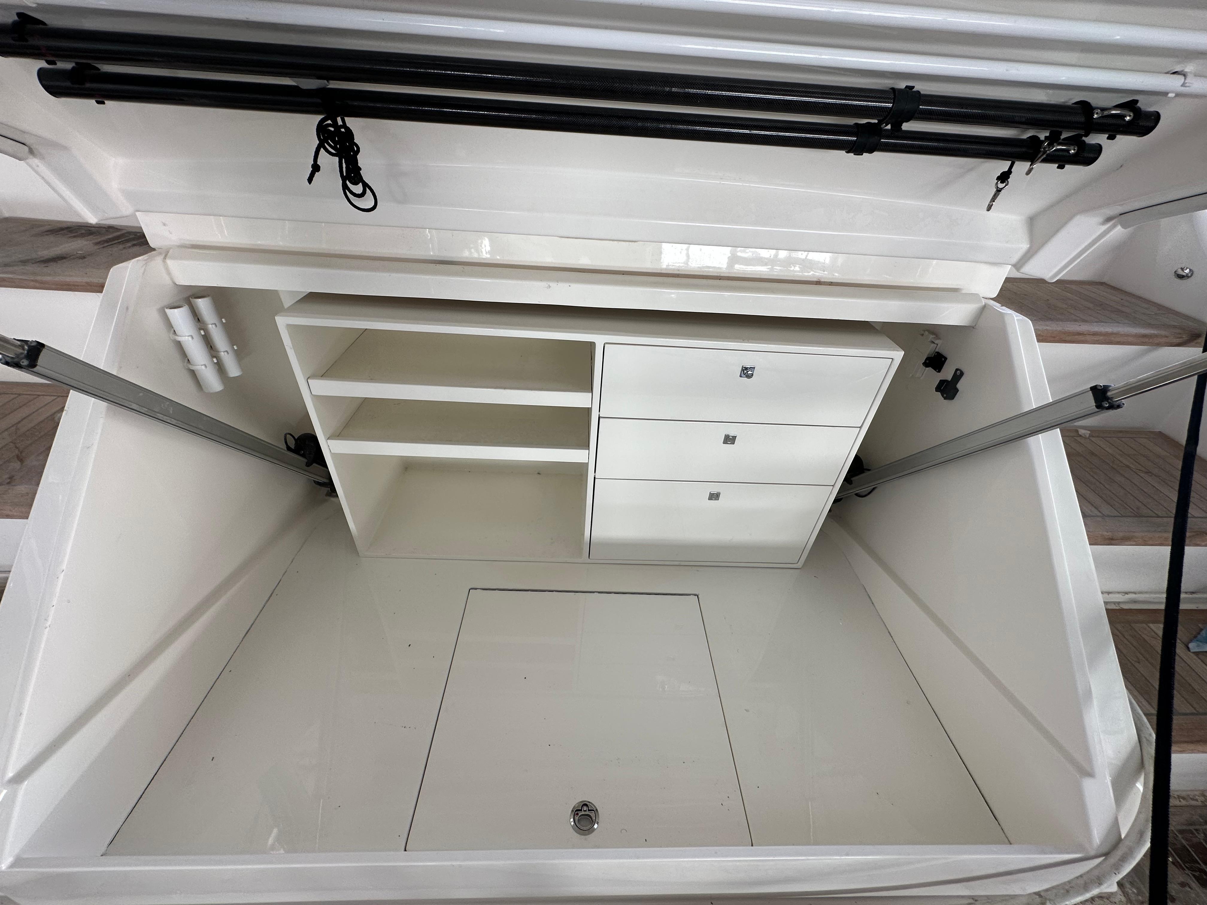 This Riviera 6000 is a smartly designed yacht for the owner operator. Great spaces inside and out. Fun performance. Easy handling. This experienced owner built this yacht for extended cruising. New plans make this 2024 available today. Always kept at the ready, she's freshly serviced and has constant full time attention with the full time captain. Additionally, the yacht is covered under Brunswick's Platinum Extended Warranty as well as the Seakeeper Gyro has Platinum Warranty, too. Having owned many yachts and spending months at a time aboard, this yachtsman knows what works best for keeping a trip easy and enjoyable. Delivered in August 2023, Bald Eagle was skillfully modified by the Riviera dealer. The first improvement eliminates the garage making way for a very spacious, fully walk around engine room with almost 7' headroom and easy access to all components and engineering spaces.. The hydraulic swim platform carries the jetski (or RIB), so no need for the garage. The garage space in the transom was transformed into a very nicely thought out lazarette with tons of storage and easy access. Fully accessorized, there is little to add to this yacht. Bluewater watermaker with full water treatment and purification for clean potable water. Reverso Fuel Polisher. DockMaster Wireless Docking Remote. Extra cameras for towing and anchor watch. ElectroSea sea strainer system for additional growth protection for raw water systems. FLIR camera. There's not much left to add to this yacht. The fully covered aft cockpit is designed with a table for six and is a welcoming space. In addition the DockMaster Remote, there is a docking station both port and starboard. The teak deck extends from the swim platform and into cockpit. The all glass aft bulkhead opens up nicely to bring an al fresco atmosphere into the saloon. The galley is aft at the opening window with tons of fridge and freezer space and storage. The saloon is leads to the settee. the helm is to starboard. Windows all around, the two skylights bring all the outside in keeping an open feel and connection to the water. Down below, the size of this yacht continues with three staterooms. The spacious full beam master, ensuite head and walk in closet is amidships. The VIP is forward with ensuite. The third stateroom has twin beds with ensuite access to the day head. Additionally, the lower deck has a very nice lounge to escape below for some private quiet time. The TV has an XBox for the kids (in all of us). Separate washer and dryer units are nicely tucked away in this area. Fully aft is a crew quarter outfitted with air conditioning and access into the (now) fully accessible, stand up engine room. The owner's plans have changed making Bald Eagle available to the market. Fully outfitted, low hours, highest attention and maintenance makes her a ready ship to cruise immediately. Having spent well over $200,000 in modifications and accessories, she's the best equipped, ready to sail Riviera 6000 available. Easy to see in South Miami. call today for time aboard or to arrange a WhatsApp or FaceTime video walkthrough. Note: Jetski is not included in sale Features:Brunswick Platinum Extended WarrantyTwin Volvo Penta IPS950s with DPS station keeping (250 hours)Two Joystick docking stations on aft deckDockMate wireless remote docking controllerSiren Remote MonitoringSea Stair entry from port or starboardHydraulic swim platformSeakeeper 9 gyroscopic stabilizer with Extended Platinum WarrantyVolvo Penta glass dashPremium Garmin Electronics pkgElectroSea raw water treatmentBluewater Clearmate watermaker with fresh water purifierEntire yacht is ceramic coatedReverso Fuel PolisherCockpit wet bar with grill, ice maker and refrigeratorTeak decking on aft deck, steps and swim platformTender garage deleted. Custom lazarrette storage in transom. Full standup engine roomUnderwater lights (4) LumitecConverted Capt. Cabin with air conditioning