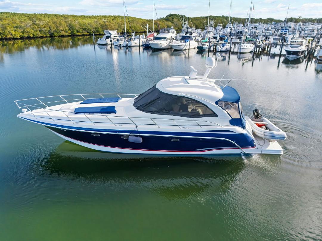 Volvo penta D9 575hp each (1150 combined) 700 hrs. Straight shaft , bronze 4 blades propellers , LOA 48,1ft , beam 13,11ft, dry weight 30500 lbs, bridge clearance 12ft, dead rise 18, cruising speed 26kt, max 32, one fuel tank 350 gal, fresh water 100 gal , holding 75. Sleep 6 , 2 heads , 2 cabins