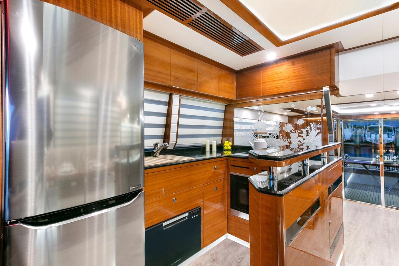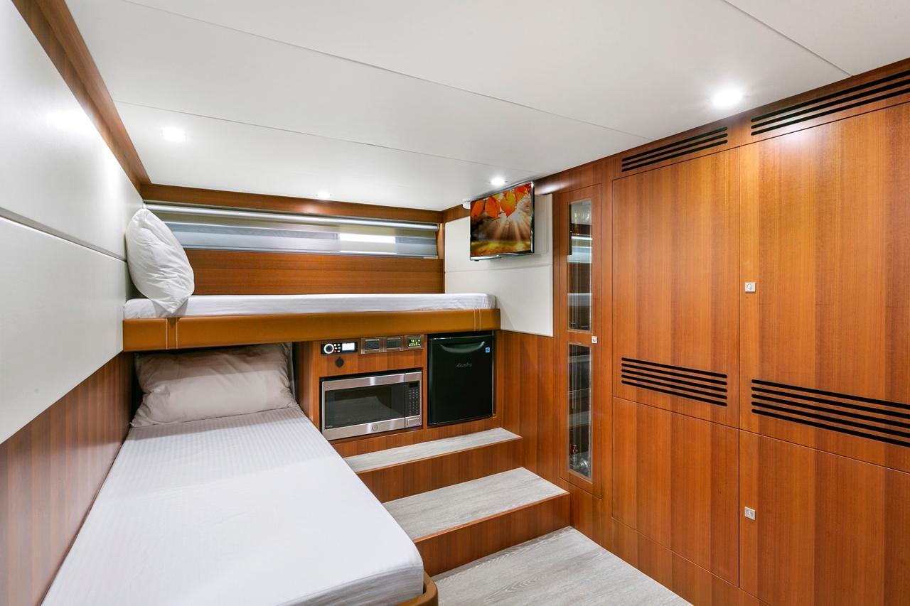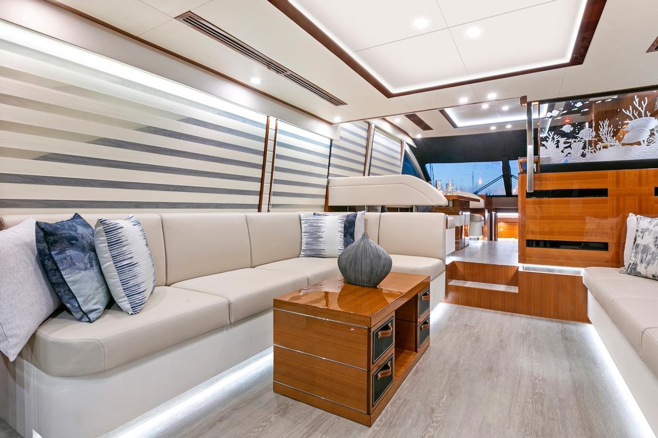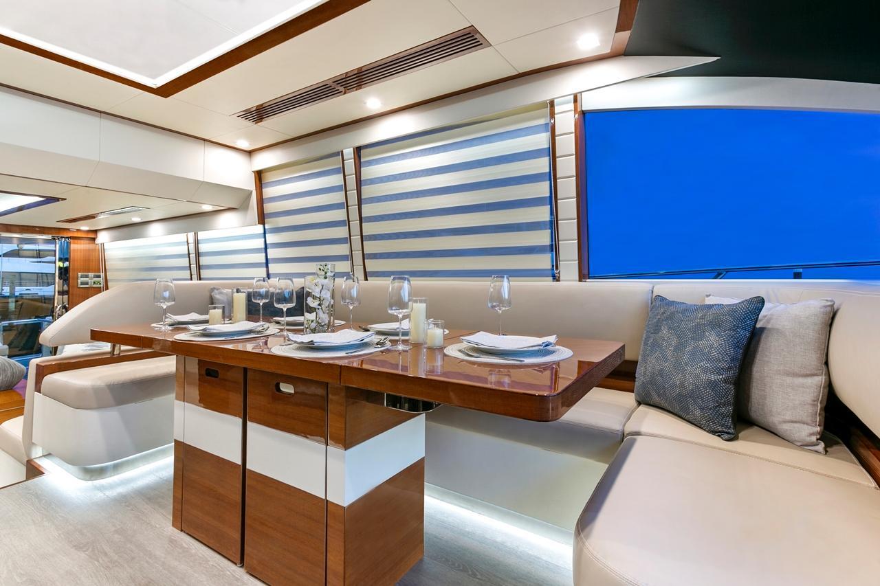 GREAT OPPORTUNITY TO OWN AN AMAZING YACHT! AVAILABLE NOW FOR IMMEDIATE DELIVERYOVERVIEWThe Dyna 63 offers a surprising amount of space. Outside areas for relaxing or social activities include copious seating on both the flybridge deck and aft deck. Between the spacious salon and deck areas, up to 30 guests may be entertained at one time. The extension of the flybridge deck all the way to the transom provides shade for the aft deck without the need of extra covers. FEATURESOwners may choose between two layouts for the main deck. The “galley aft” layout puts the galley and bar close to the salon entrance. This allows the owners to entertain and talk to the guests on the aft deck and in the salon while preparing food or drinks in the galley.The “galley amidship” layout puts the galley in the middle of the main deck. This layout provides a huge indoor seating area for owners and guests to relax comfortably. Both layouts feature large windows that provide natural light and beautiful views. INTERIORThe four-stateroom layout of the lower level includes a crew cabin at the stern. The full beam master stateroom comes with en suite bathroom with enclosed shower, king size bed, a teak table with two single sofas, and large windows for natural light and views of the sea. The VIP stateroom forward maybe configured as either a Queen or King size berth. The other guest stateroom has two twin beds. The VIP and guest staterooms share a bathroom with a separate enclosed shower. The crew cabin aft is accessible from the swim platform or the aft deck hatch. The crew cabin is spacious with full headroom, a private head and lounge area with table, seating and galley. In fact, the crew cabin is so comfortable that it may be used as an additional guest stateroom if needed. ENGINESTo ensure smooth running of all systems, the engine room with its seven feet of headroom is well laid out for operation and routine maintenance. The arrangement of pipes and wiring is clear and neat for convenient inspection. OPTIONSAs with all models of Dyna Yachts, you can select the materials, equipment, and parts to build a personalized yacht that reflects your taste in yachting.