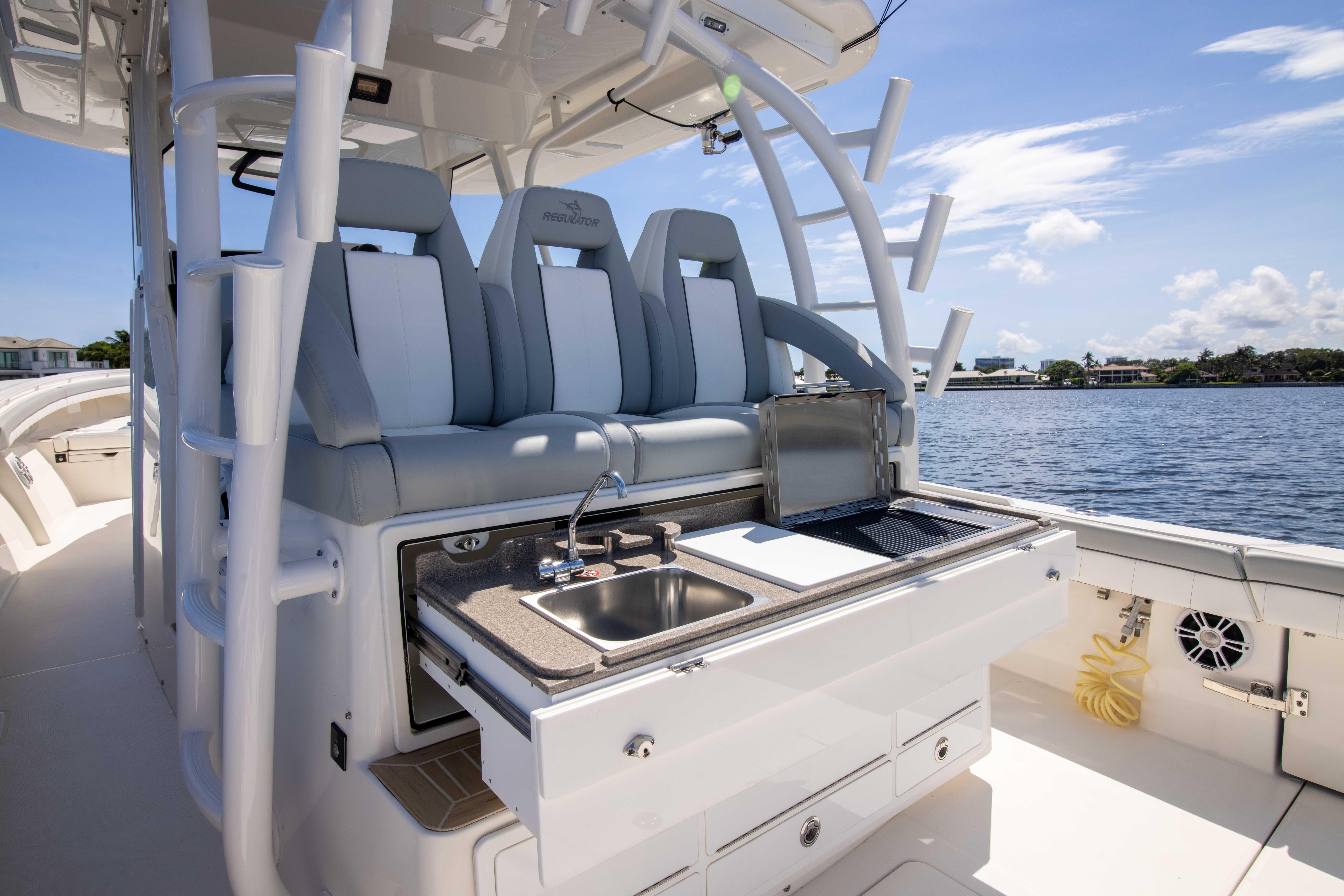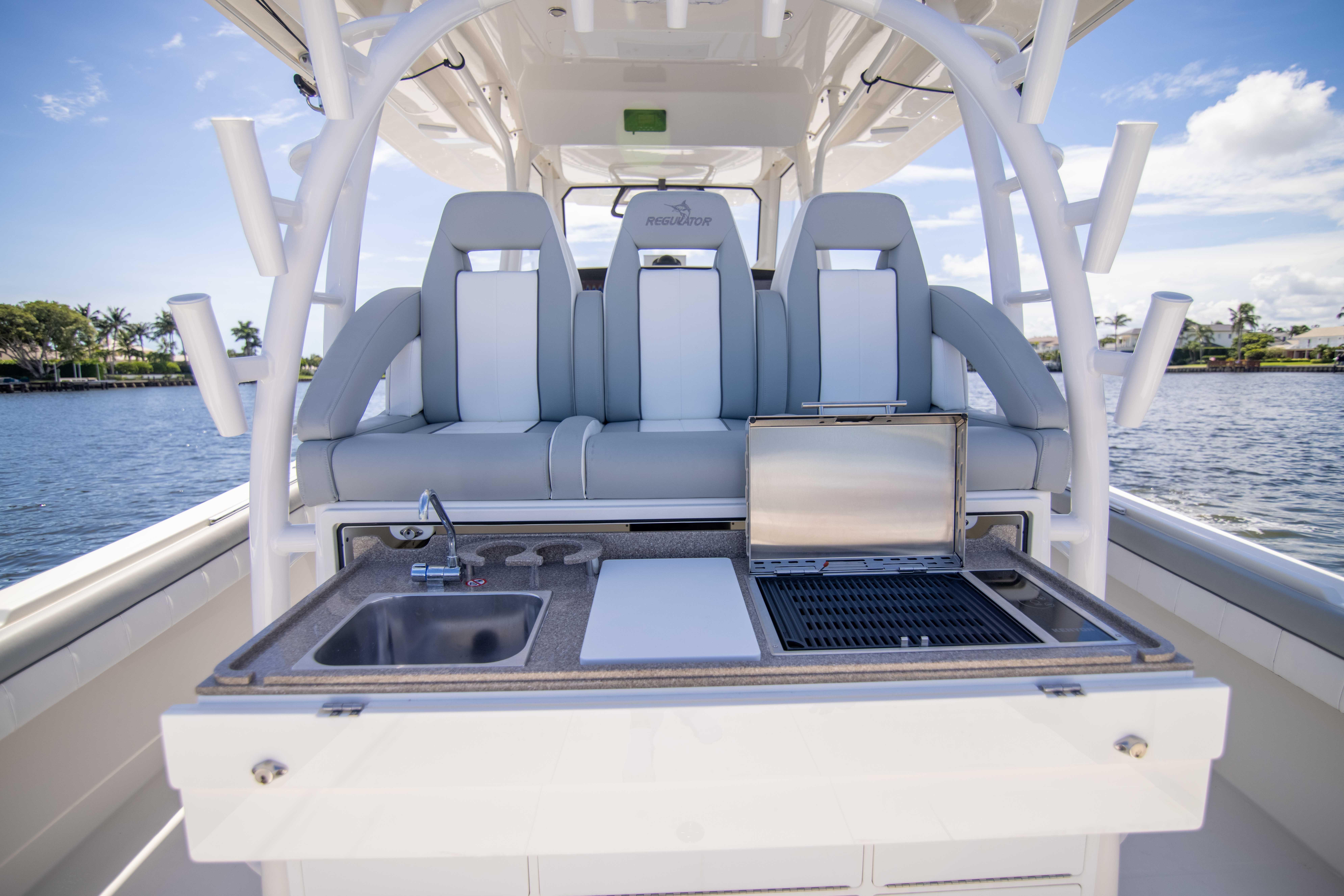 ~ Pristine Condition ~ This 2021 41 Regulator “CHILLIN” is an extremely low hour Regulator with all the right options and ready to go for season! Spec’d with an elaborate helm, cabin including a private head, Seakeeper 5, KVH for SAT TV and powered by reliable Yamaha 425s with only 35 hours, “CHILLIN” will meet your every offshore need. Yamaha factory warranty is in place until July 5th 2026 and eligible to be extended an additional two years. Call today to set up your personal inspection on this lightly used 41 Regulator! This boat is professional maintained and service items have been addressed off calendar time to keep it in pristine condition!