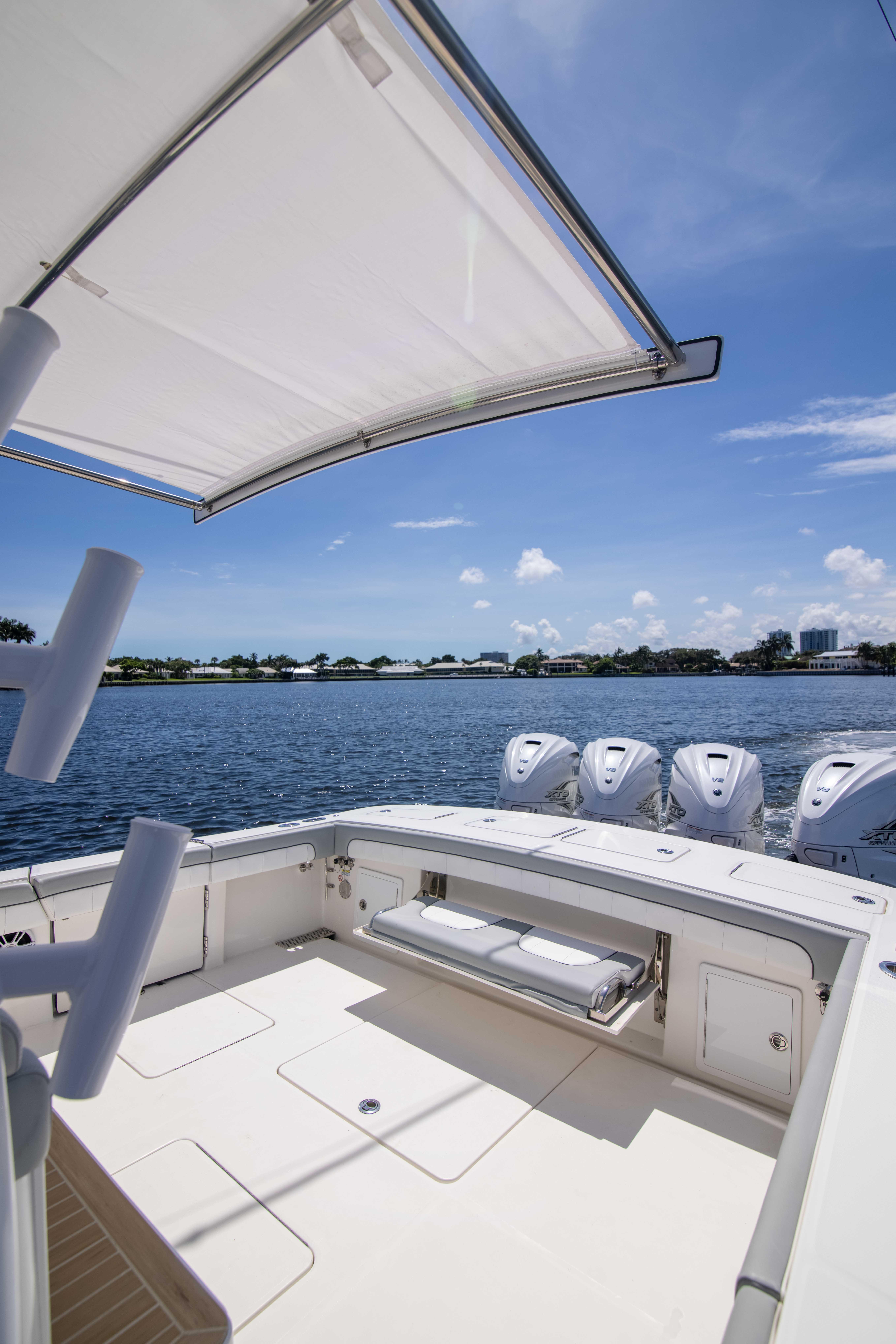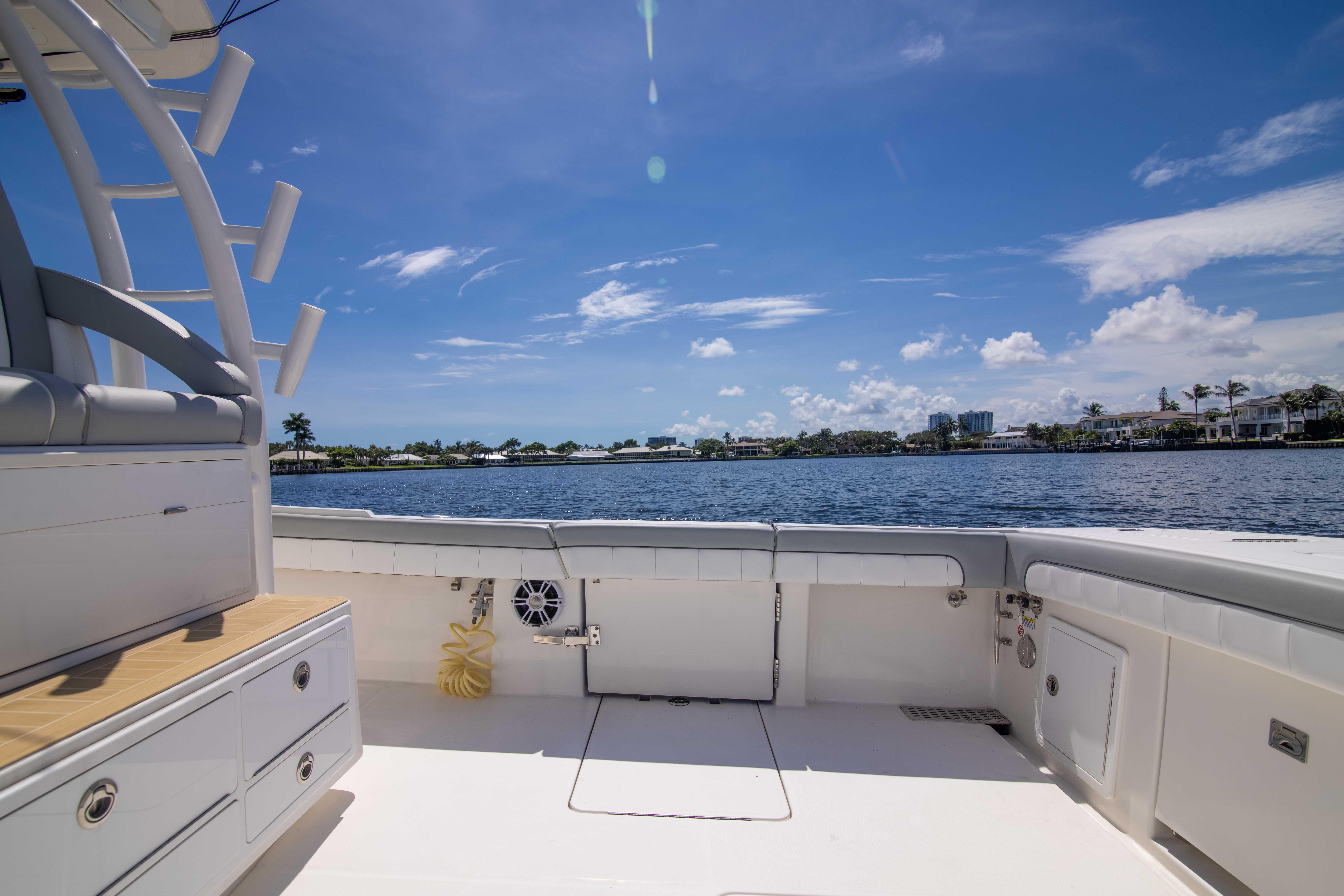 - Forward console lounge seat with built in insulated cooler