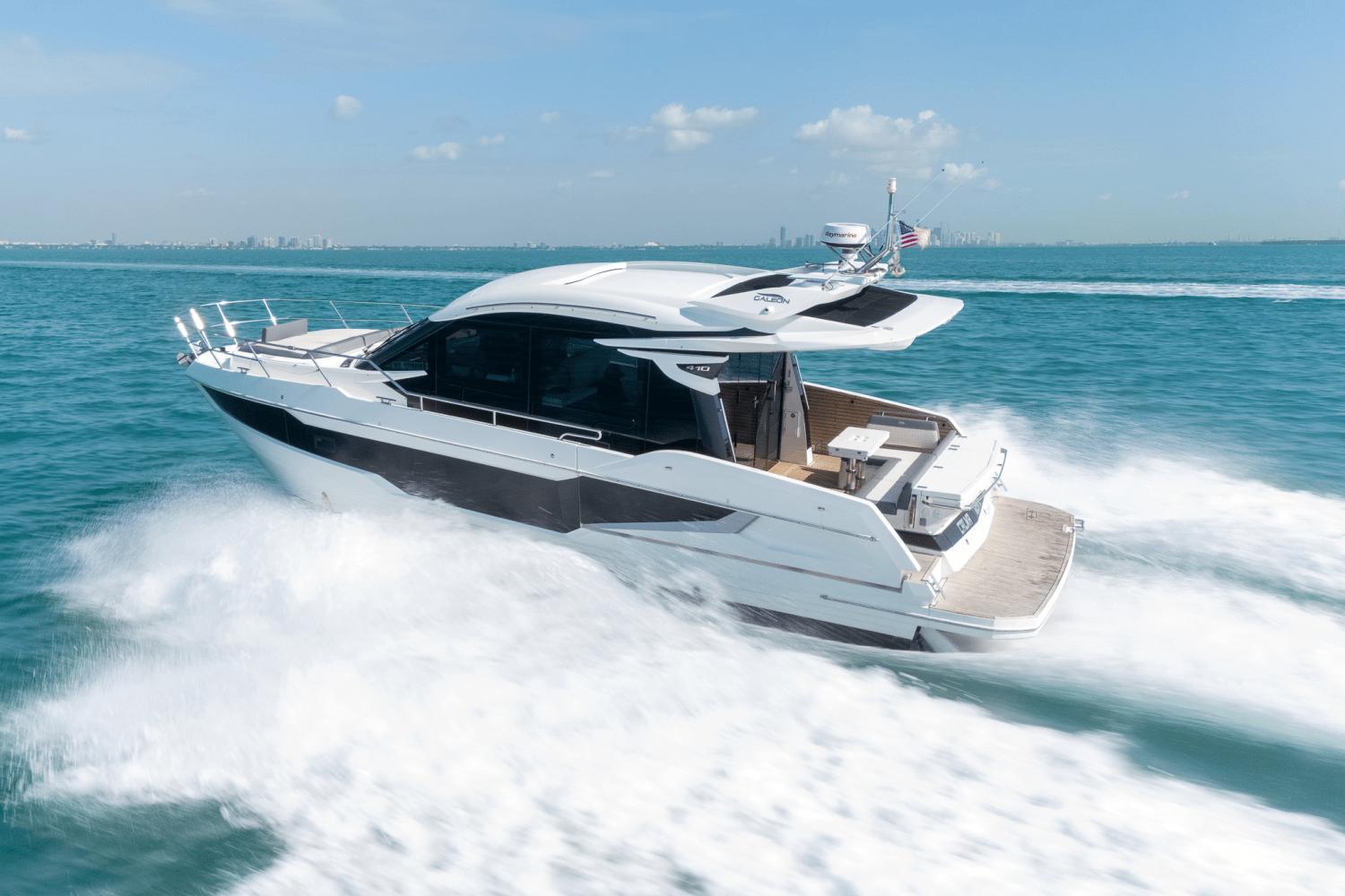 2021 Galeon 410 HTC – Sleek, Smart & Loaded with ExtrasThis beautifully maintained 2021 Galeon 410 HTC is an exceptional opportunity for buyers seeking modern design, performance, and thoughtful upgrades. With impressive volume for its size and a smart layout featuring 2 staterooms and 2 full bathrooms, this yacht punches far above its class.She includes a full Volvo engine warranty through September 14, 2026, offering extended peace of mind, and is equipped with a Starlink antenna for high-speed connectivity wherever you cruise. A brand new WaterMaker installed in July 2025.Her standout features include fold-out balconies that expand the cockpit, an expansive salon filled with natural light, and a refined interior that perfectly blends luxury and function.Located at Cocoplum Yacht Club in South Florida, this vessel is easy to show — and a slip at Cocoplum Marina may potentially transferable (rental) for added convenience.Options List:• BEACH WOOD GREY – MATTE• MARBLE OAK WOOD FLOOR• WOODEN SHUTTERS• WHITE INTERIOR COLOR SCHEME• SILVER & WHITE EXTERIOR COLOR SCHEME• COMFORT PACK• FLIR - NIGHT VISION• FULL CONTROL PACKAGE• WATERMAKER (40 GALLONS HOUR)• BOWTHRUSTER• CABLEMASTER• COVERS FRONT & SIDE WINDOWS• RAYMARINE CHARTPLOTTER• ADDITIONAL RAYMARINE CHARTPLOTTER• RAYMARINE VHF RAY91 AIS• RAYMARINE AUTOPILOT• FLIR - NIGHTVISION• ELEC SLIDING TV LED 32” IN SALON – SAMSUNG• DVD/BLURAY – SAMSUNG – SALON• PORTSIDE LARGE ELECTRIC WINDOW• UPGRADED FUSION SOUND SYSTEM• LUXURY PACK• CARPETS ON WOODEN FLOOR IN SALON• SUNDECK ON BOW DECK• TV LED 24” IN BOW CABIN• TV LED 32” IN MASTER CABIN• WET BAR PACKAGE – GRILL ON BATHPLATFORM WITH CHOPPING PLATE, TRASH BIN, STORAGE LOCKER• AFT LOUNGE PACKAGE – OPENABLE BALCONIES• FRONT CABIN WITH CONVERTIBLE SCISSORS SINGLE• AMBIENT LED LIGHTS (GALLEY, SALOON, CABINS)• SOFT PLISSE IN SALOON (BLACK COLOUR)• SPECIAL DESIGN BLUE LED LIGHT HIGHLIGHTS OVE• FILLER CUSSHION FOR SUNDECK ON BOW DECK